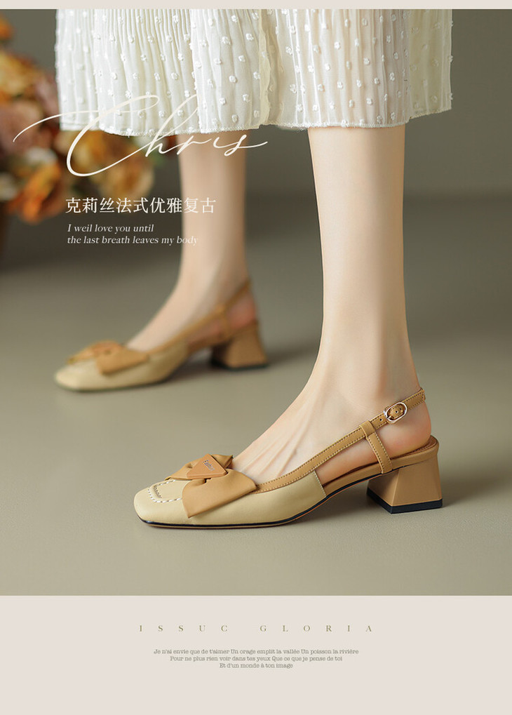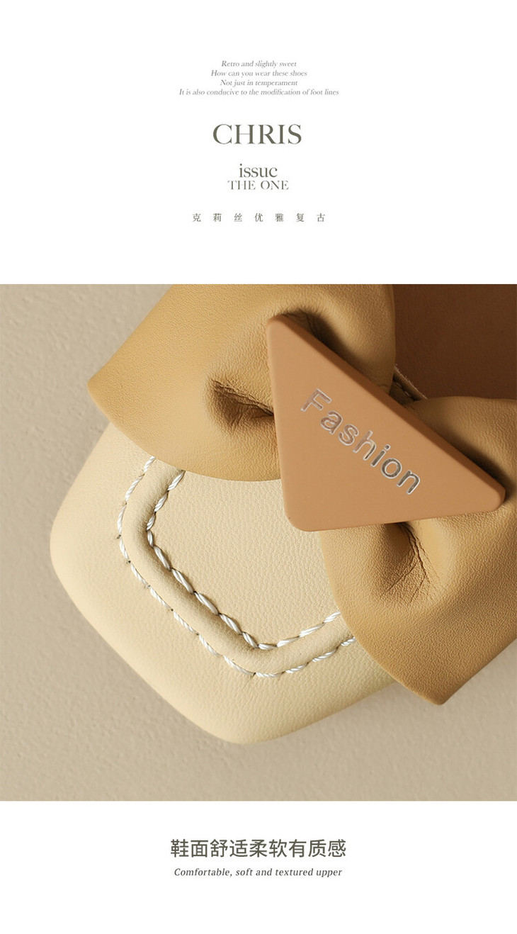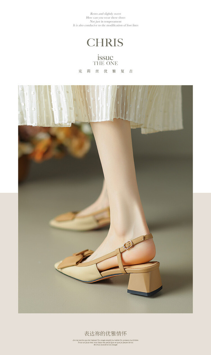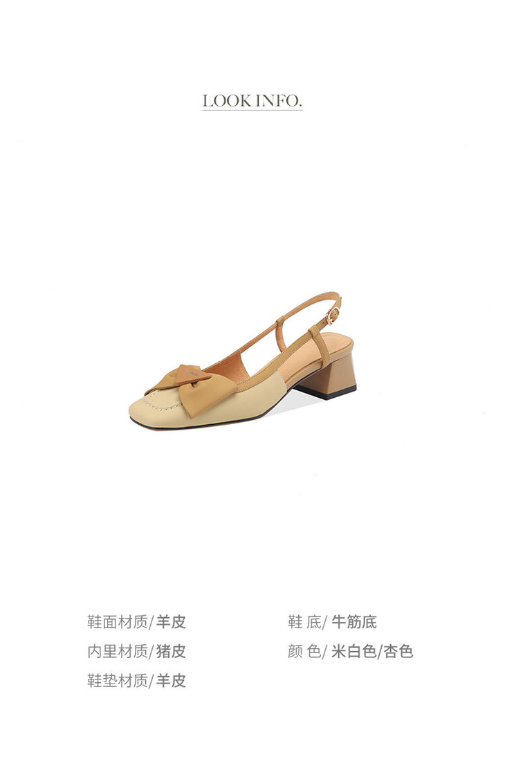 【预售5天】舒适~复古蝴蝶结羊皮包头凉鞋女粗跟夏真皮中跟大码TX&TX390-1