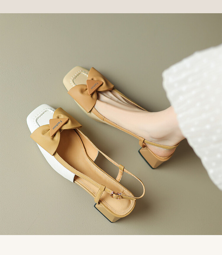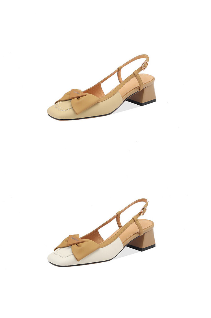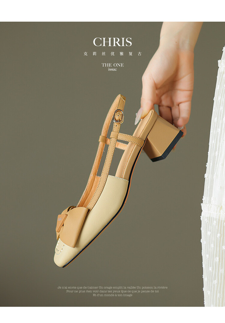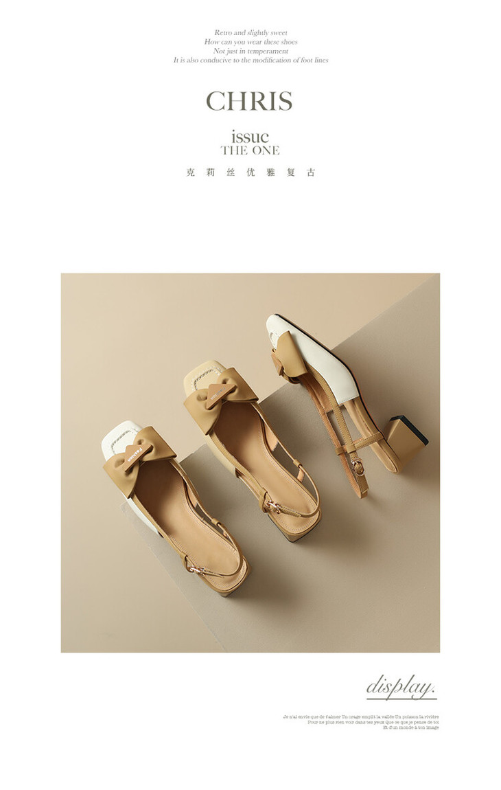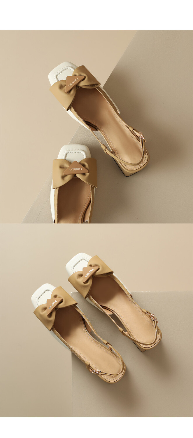 【预售5天】舒适~复古蝴蝶结羊皮包头凉鞋女粗跟夏真皮中跟大码TX&TX390-1