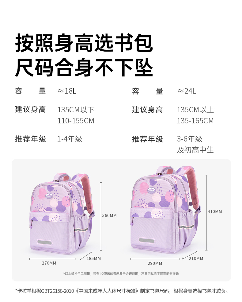卡拉羊3维减负防下坠超轻游学晨练包抑菌大容量双肩包奇妙树系列CX2848+5544