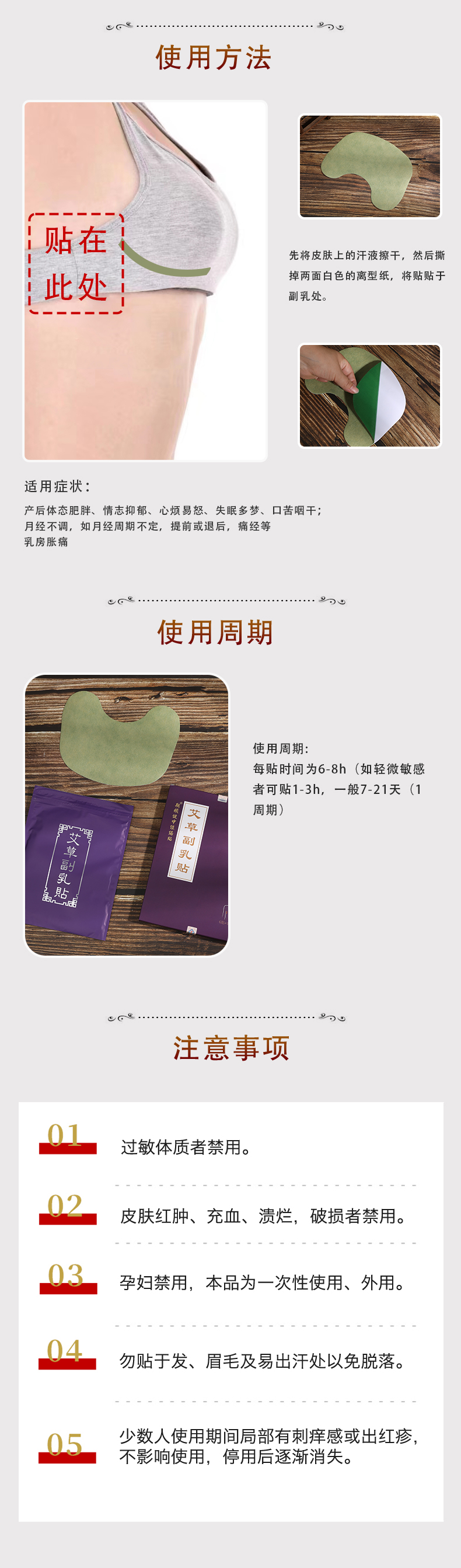 艾草副乳贴 精选5味天然本草精华 6贴/包*1盒 期颐出品