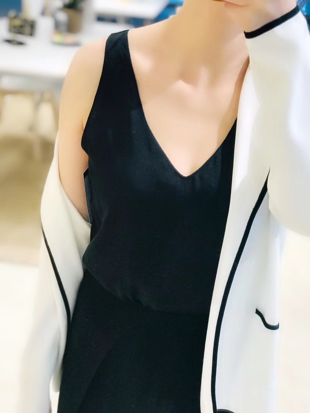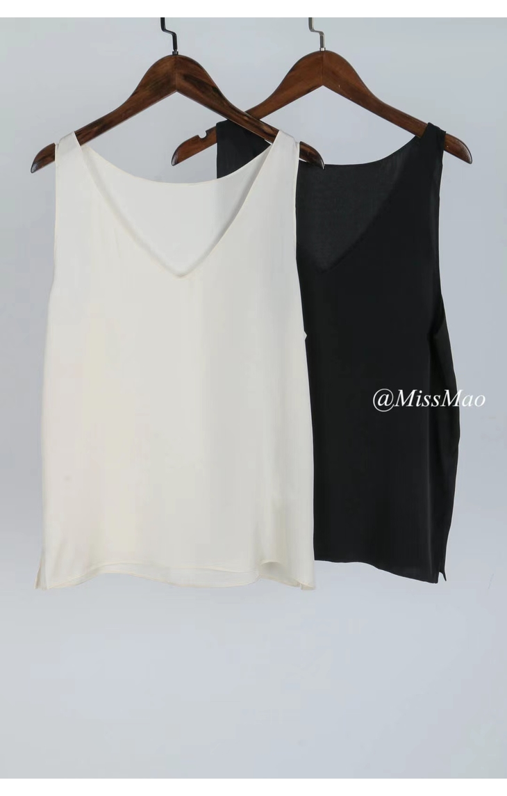 【à perles】纯真丝上衣,V领背心式,春夏必备,黑白两色【清仓,不退不换】