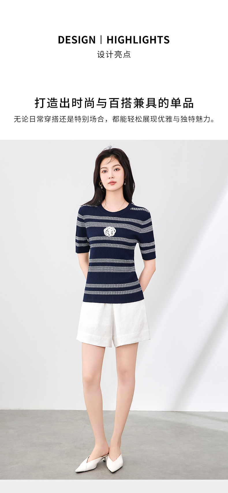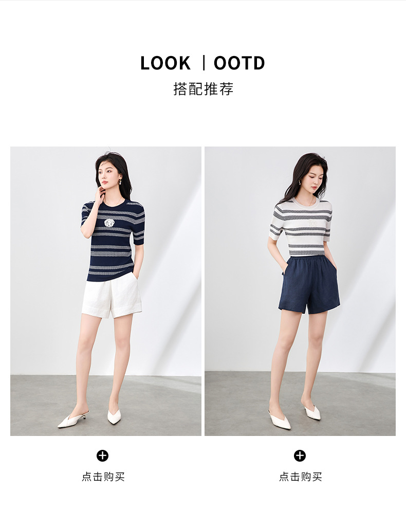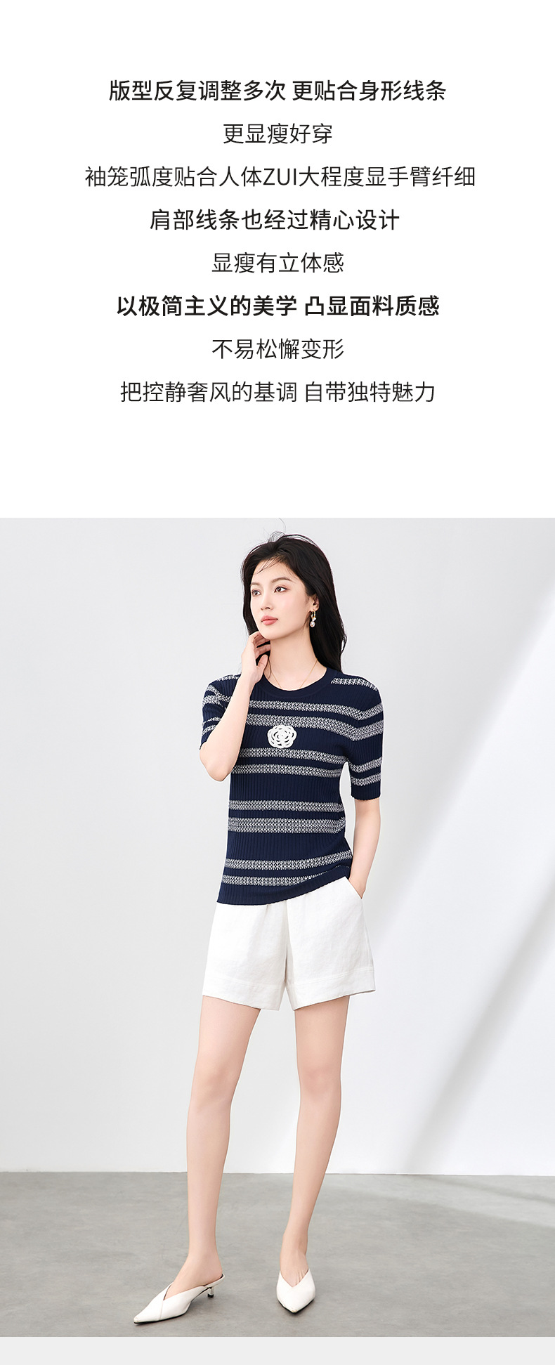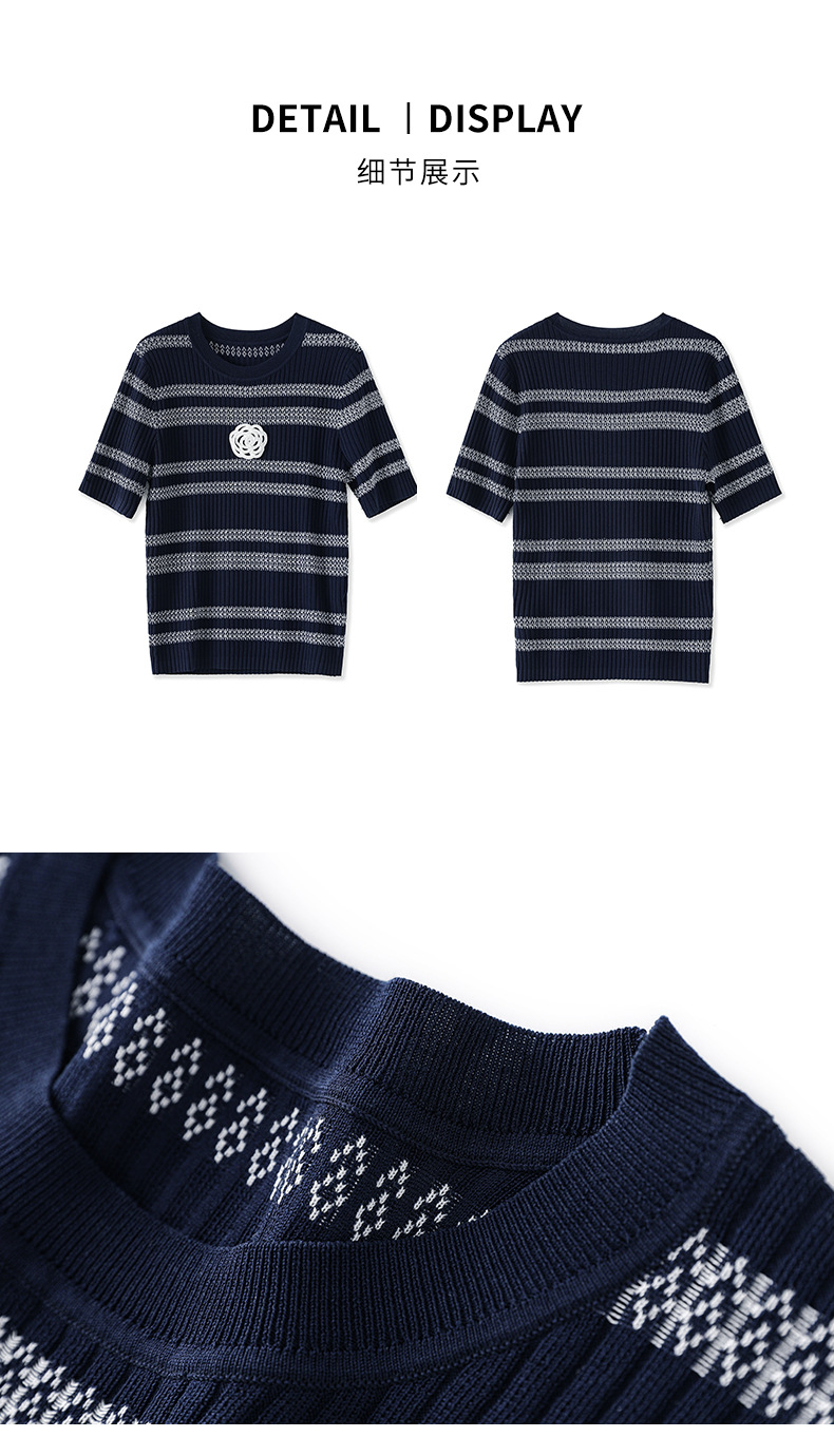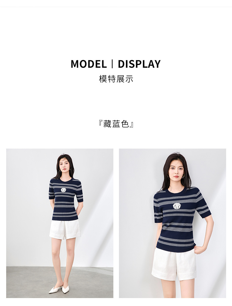 「高货wl」全新升级【铂金会员220/天猫299/差价79】(41109)洛诗琳兰精天丝冰感针织衫2025夏季小香风钉珠条纹T恤上衣
