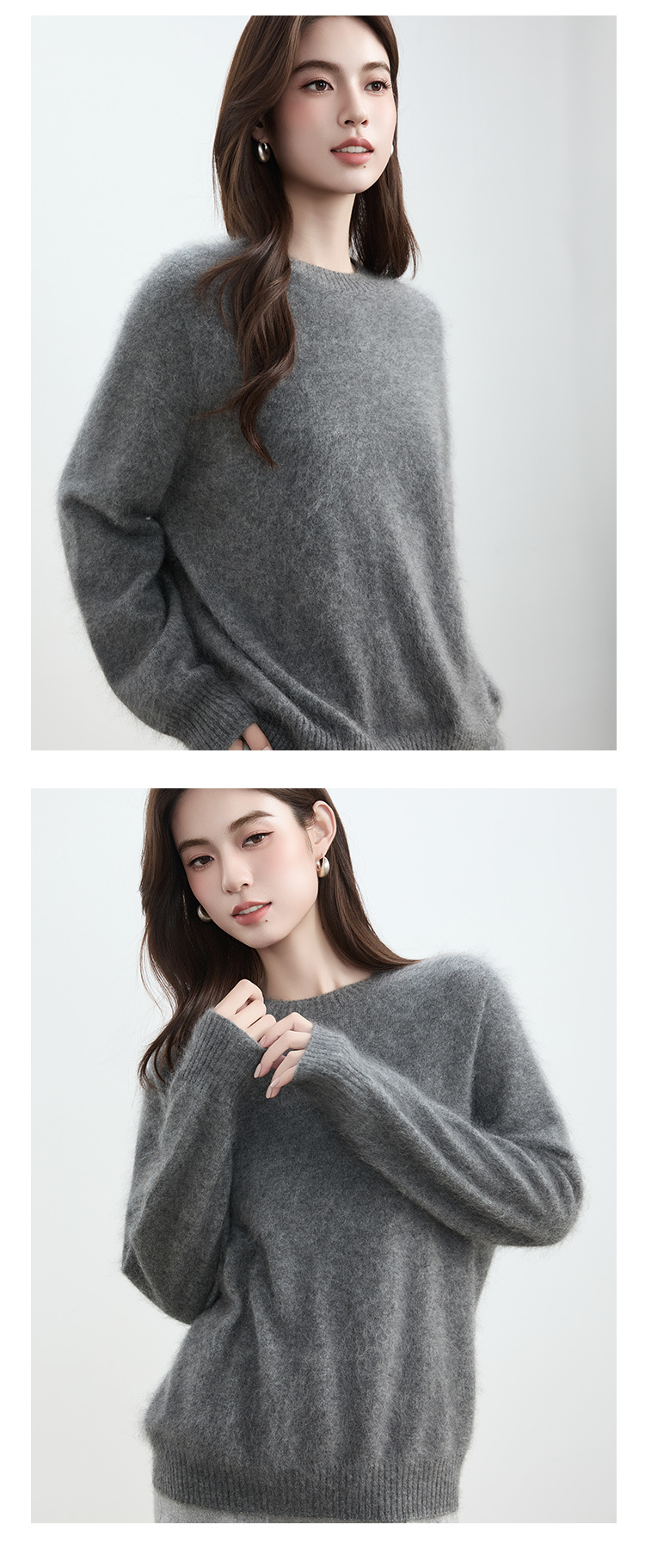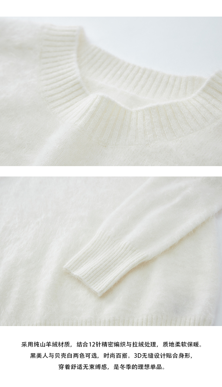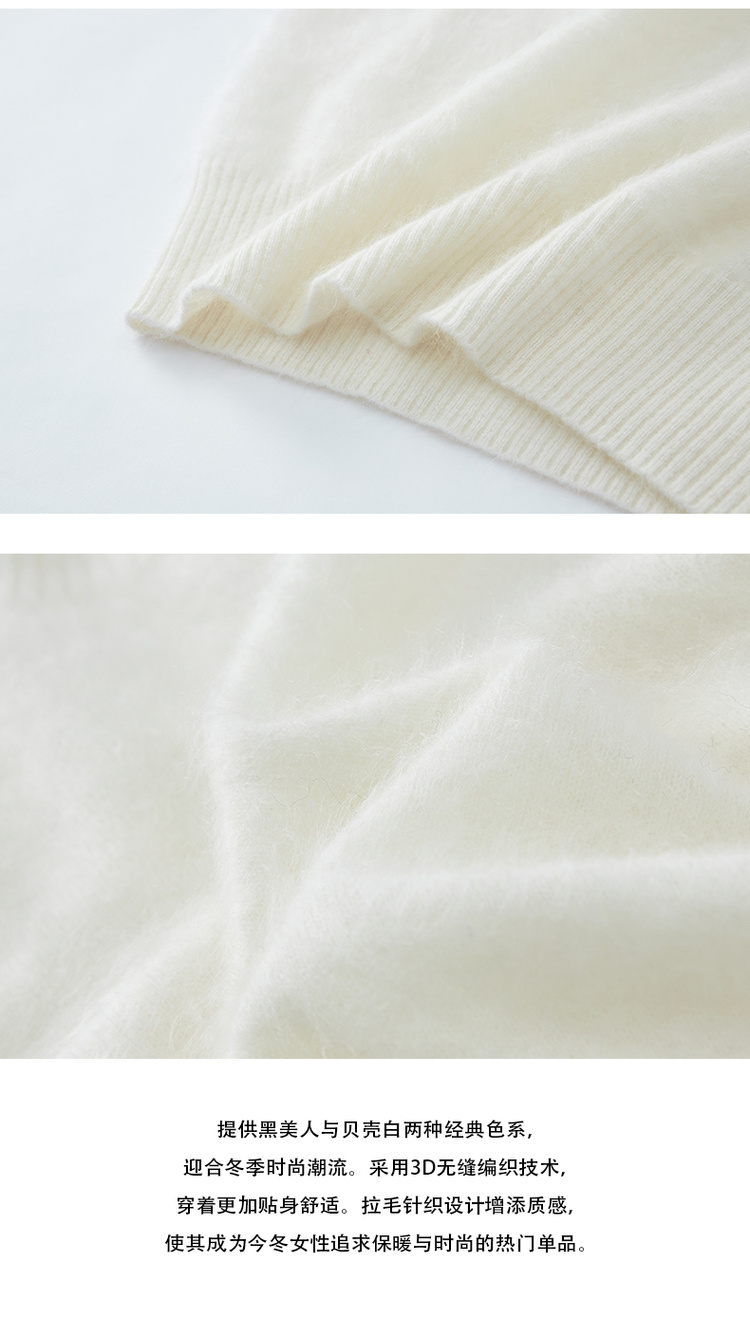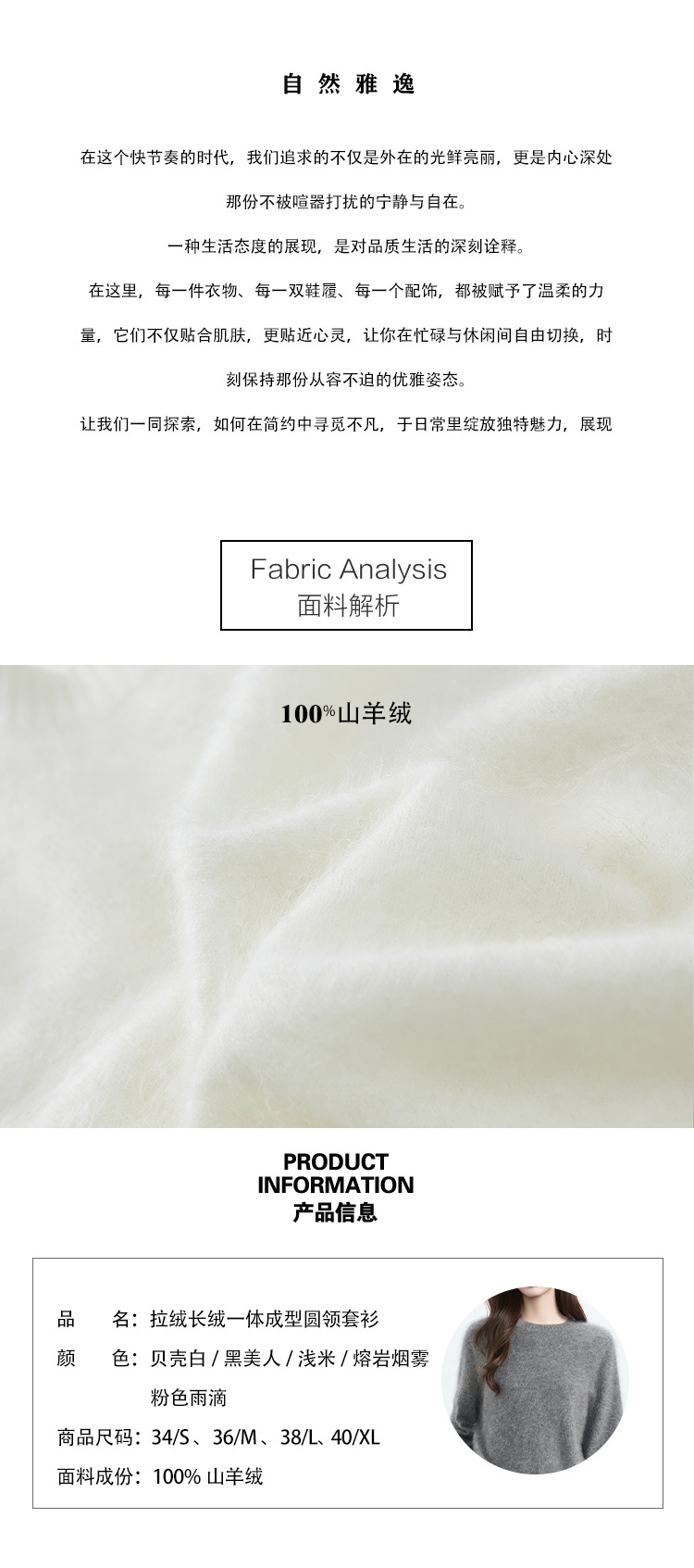 VogoPetite 拉绒长绒一体成型圆领100%山羊绒衫 BP141E1208