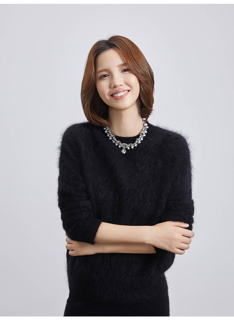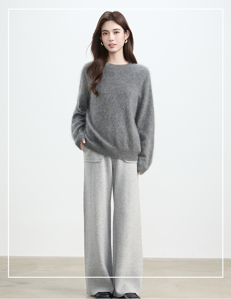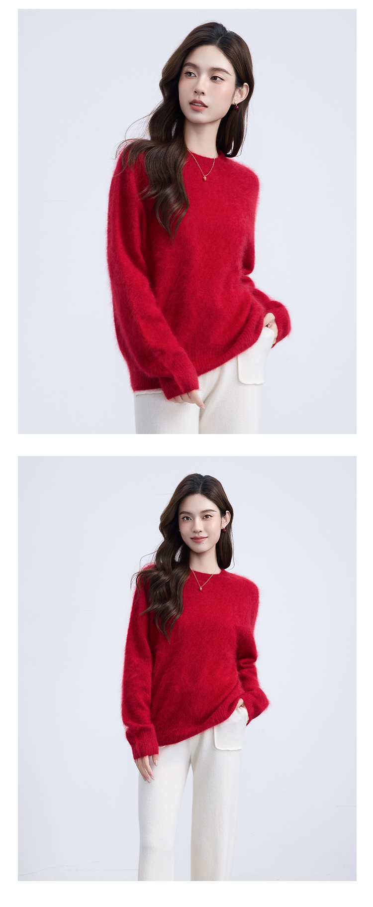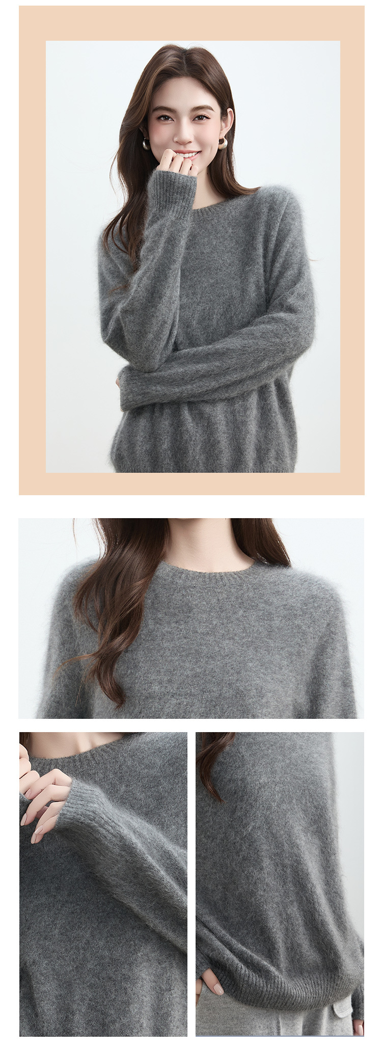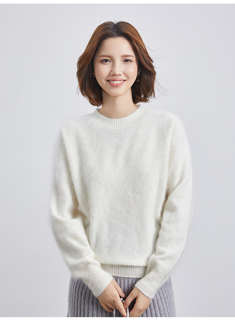 VogoPetite 拉绒长绒一体成型圆领100%山羊绒衫 BP141E1208