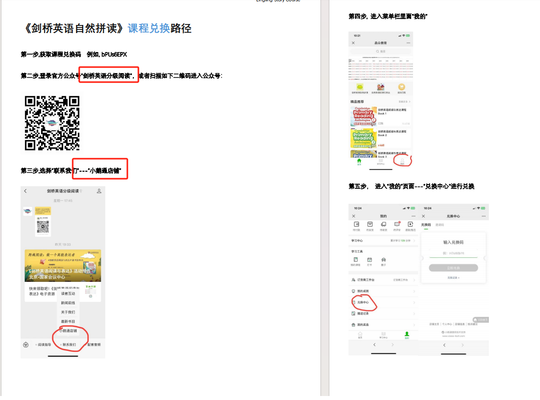 剑桥英语课程需要下载小鹅通APP,您收到后联系客服领取兑换码即可