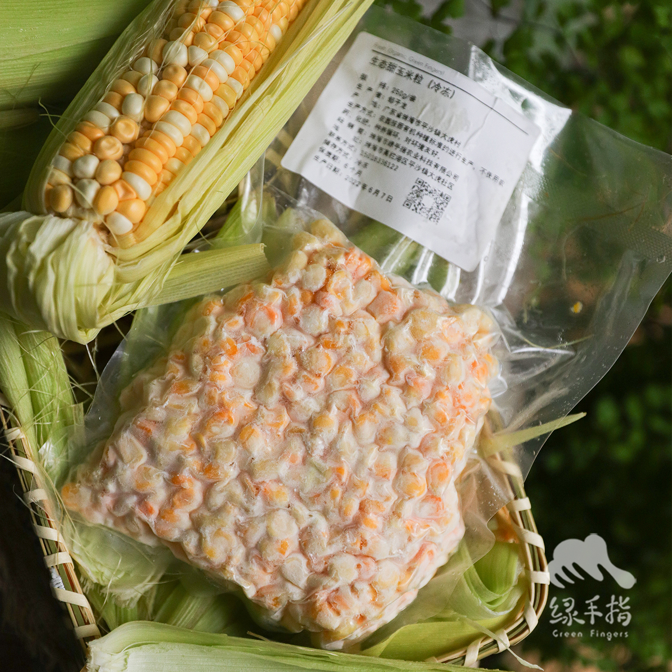 绿家的甜玉米是粒色黄白相间的,兼具甜、鲜、脆、嫩等多个特点,皮薄渣少、汁水饱满,可生吃、可熟食。可鲜玉米又极难存放,带玉米棒子放两天风味就流失了一大半,保不住甜度,整个冻在冰箱又很占地方。