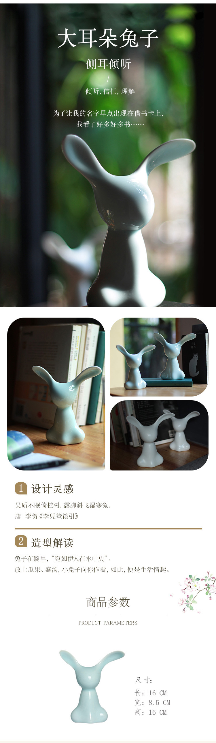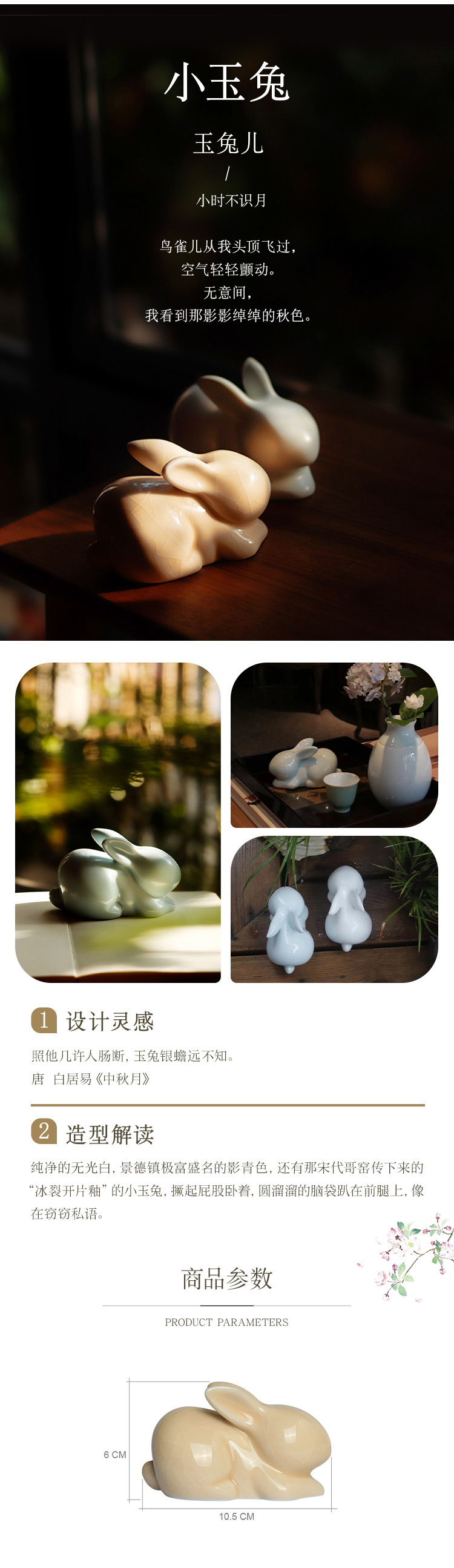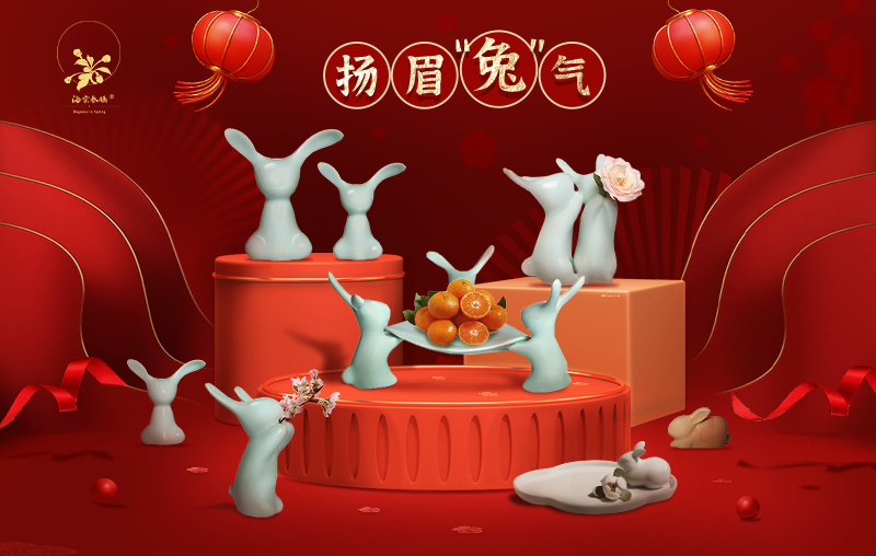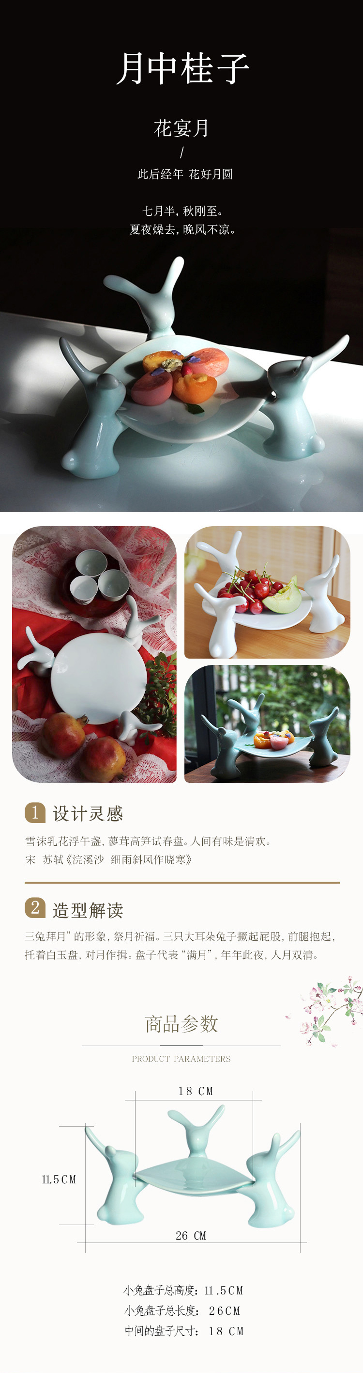 扬眉“兔”气 海棠春睡·兔子陶瓷系列!荣获多项国际大奖,清华美院陶瓷系艺术家作品 托盘/果盘/点心盘 景德镇湖田窑影青釉 高白泥硬质瓷碟
