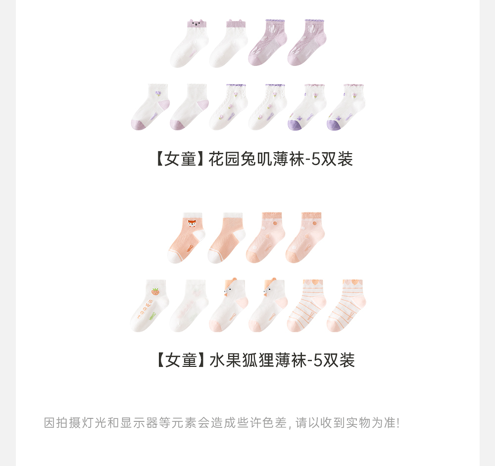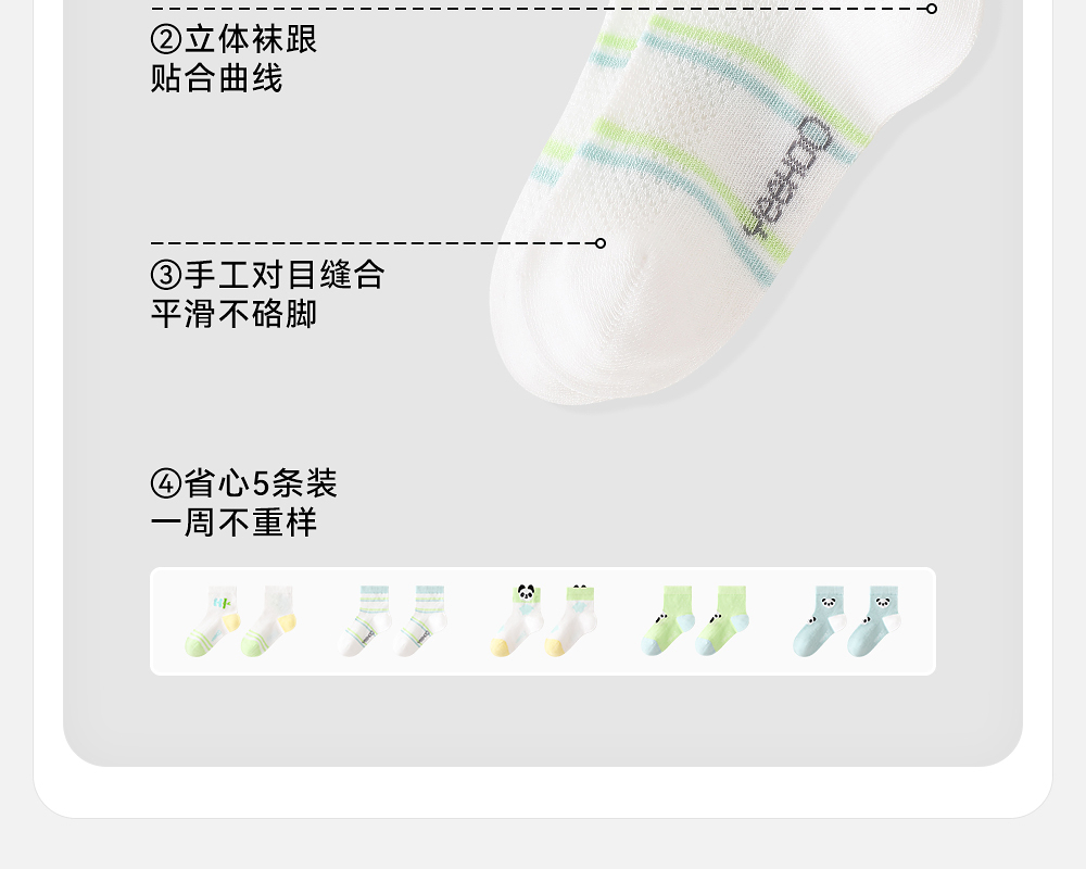 【5双礼盒装】英氏婴儿袜子夏季婴儿薄袜透气赛柔丝7A抗菌儿童短袜地板袜5双装