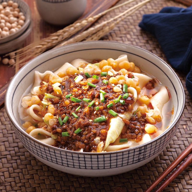 优选筒子骨熬制的高汤打碗底,大朵包包菜肆意地霸占着碗底,然后将手工搓拉成形状的面块两块撕拉成条面汤煮3—5分钟即可,然后加上爆炒好的泡椒鸡杂,炒香的白芝麻混入面中,以葱姜蒜为辅料制作而成,面块口感润滑,糯口弹牙,令人回味无穷
