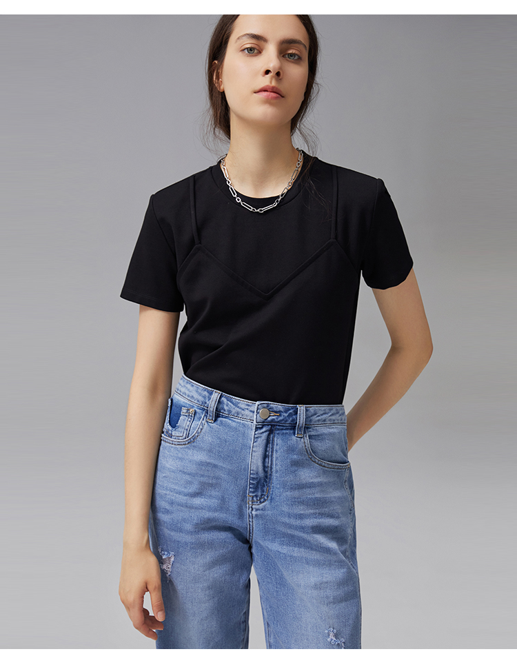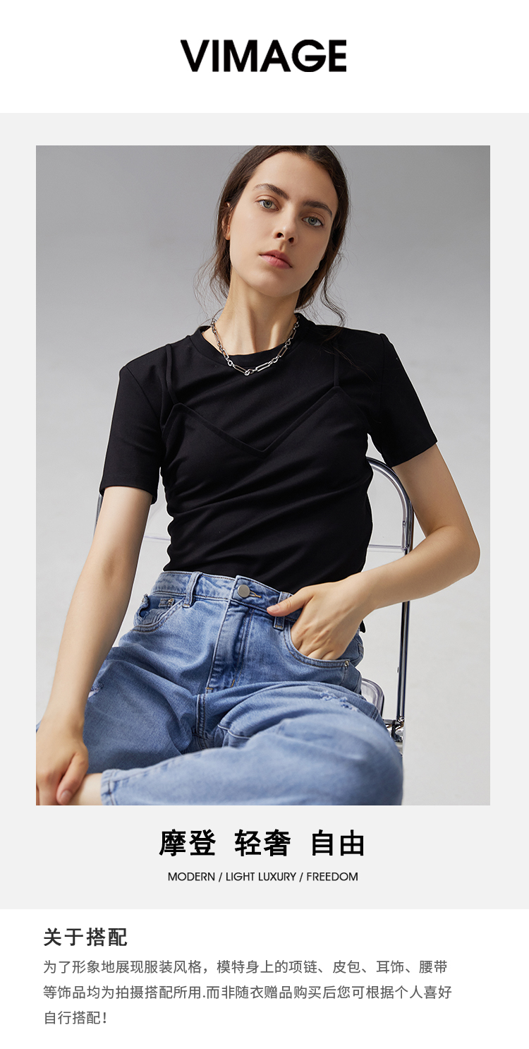 VIMAGE纬漫纪夏季新款时尚休闲百搭舒适简约T恤上衣女V1502118