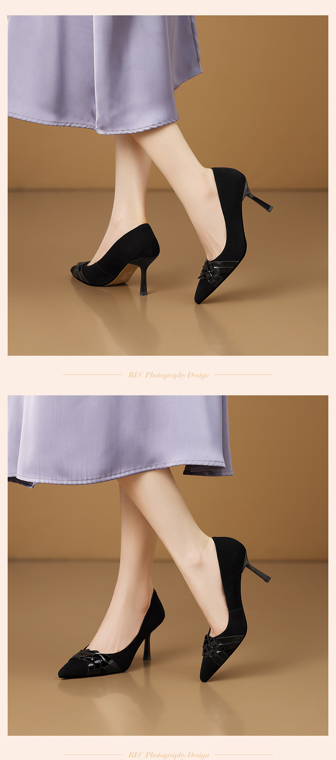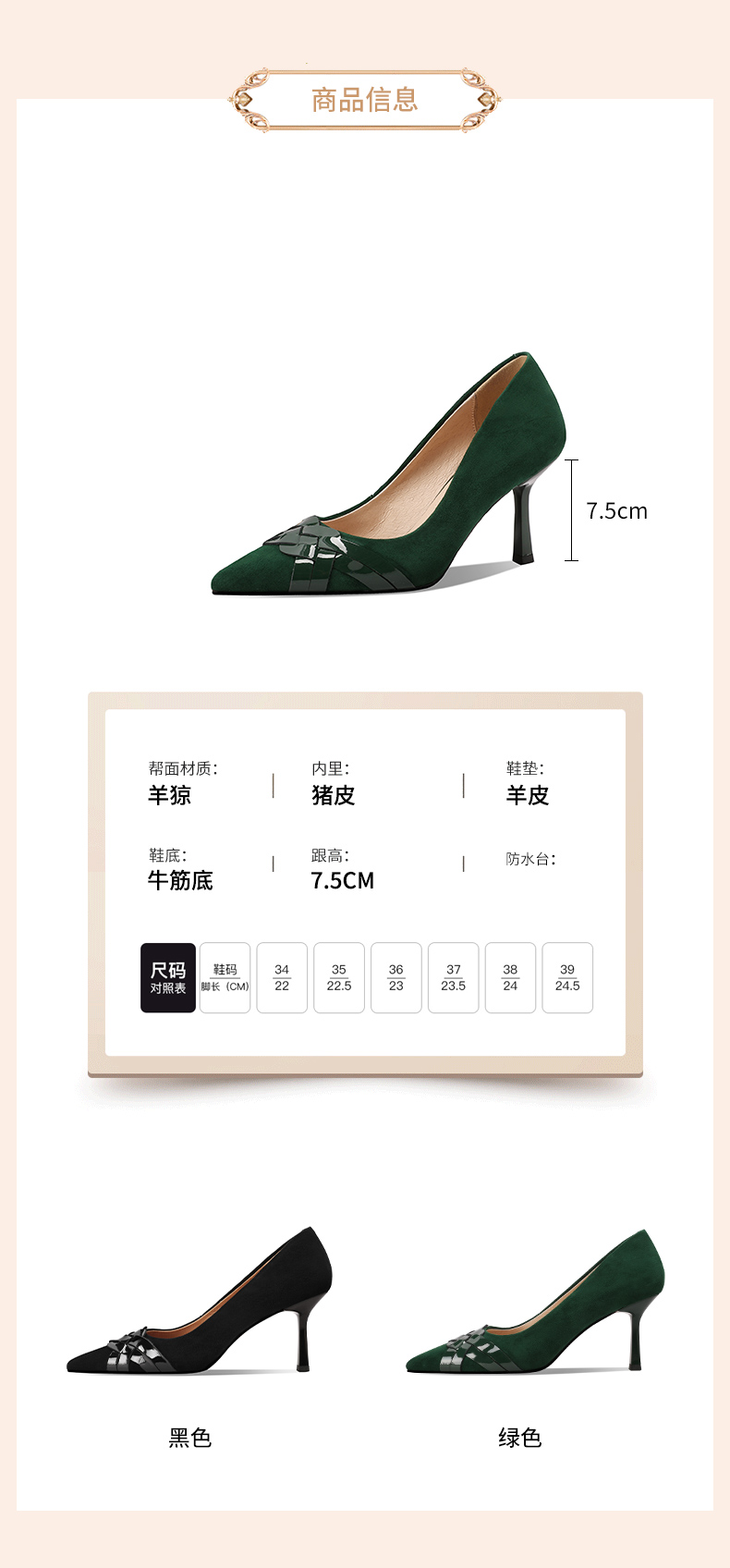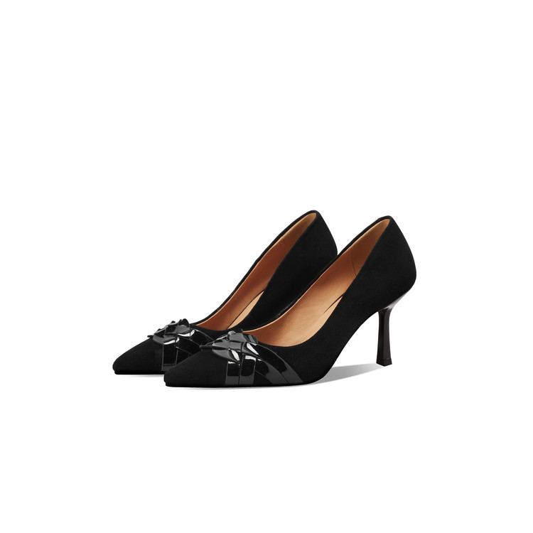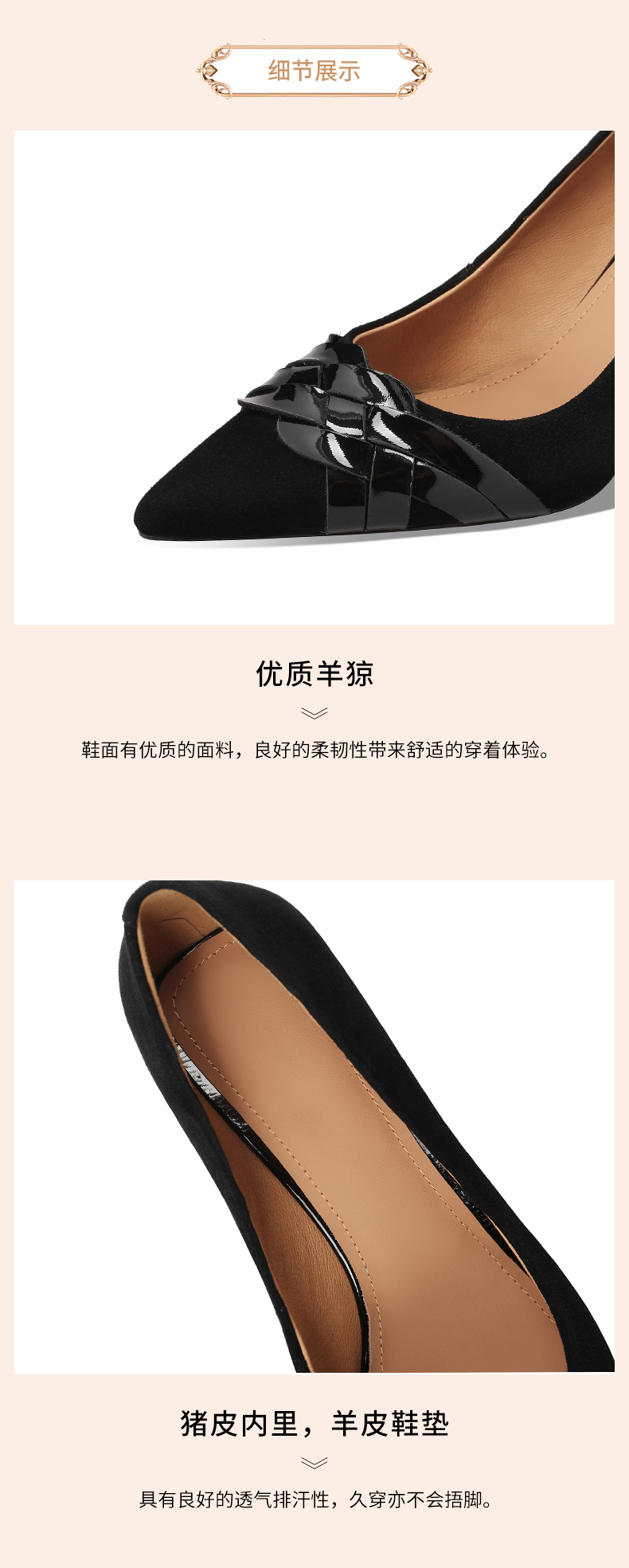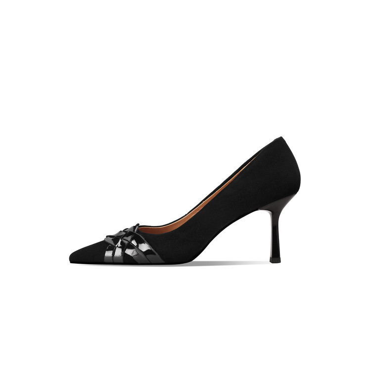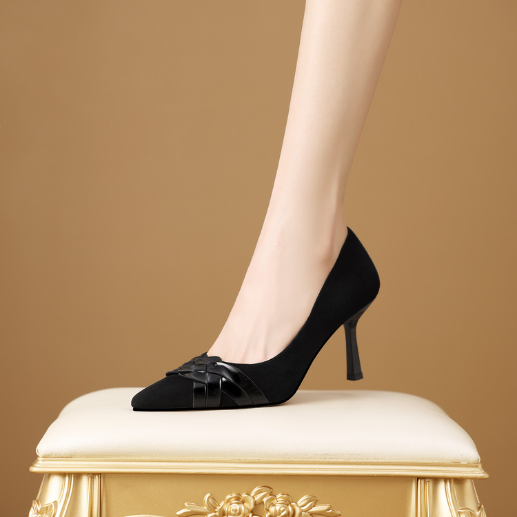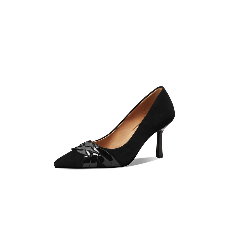 【预售5天】黑色编织尖头职业高跟鞋女秋季新款细跟单鞋浅口女鞋HY&H3700