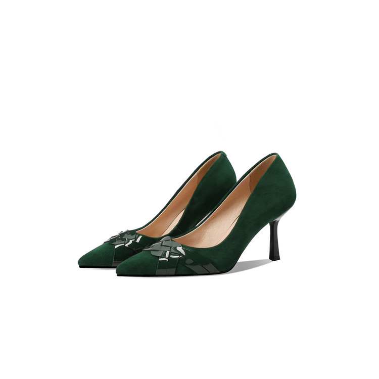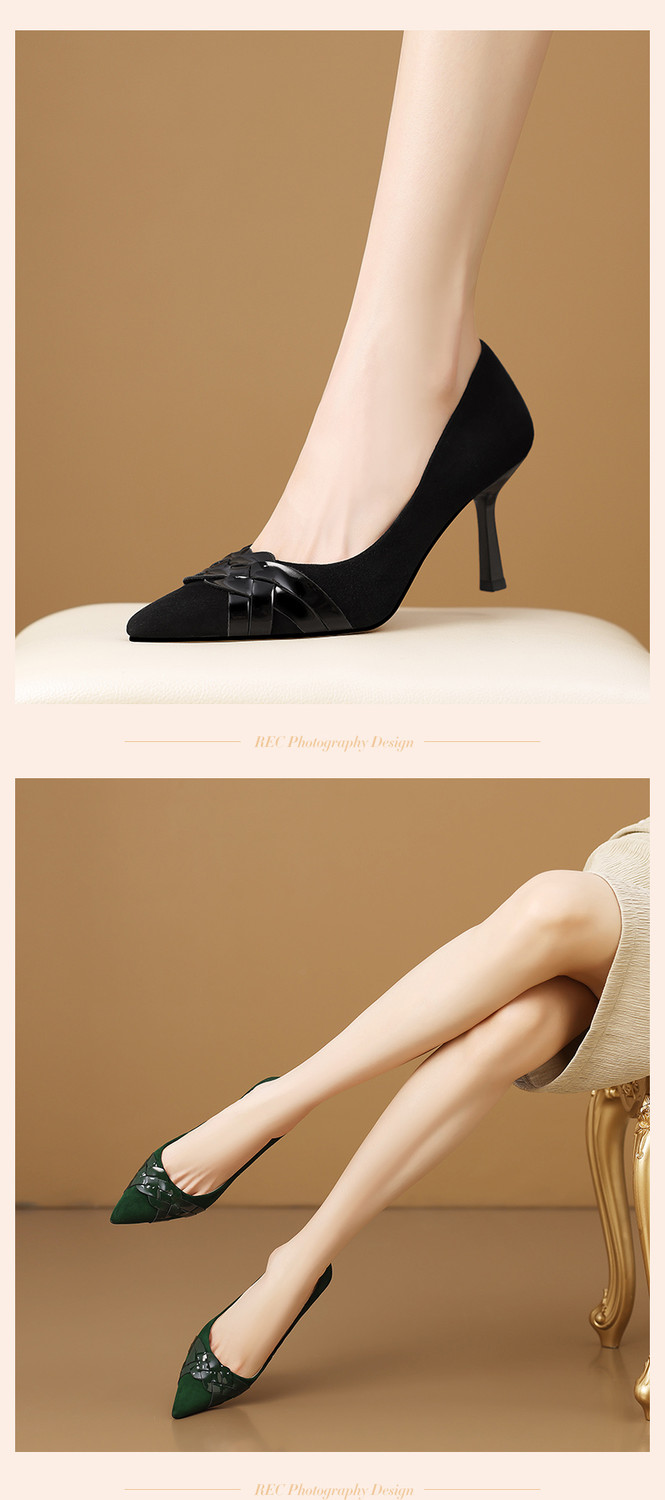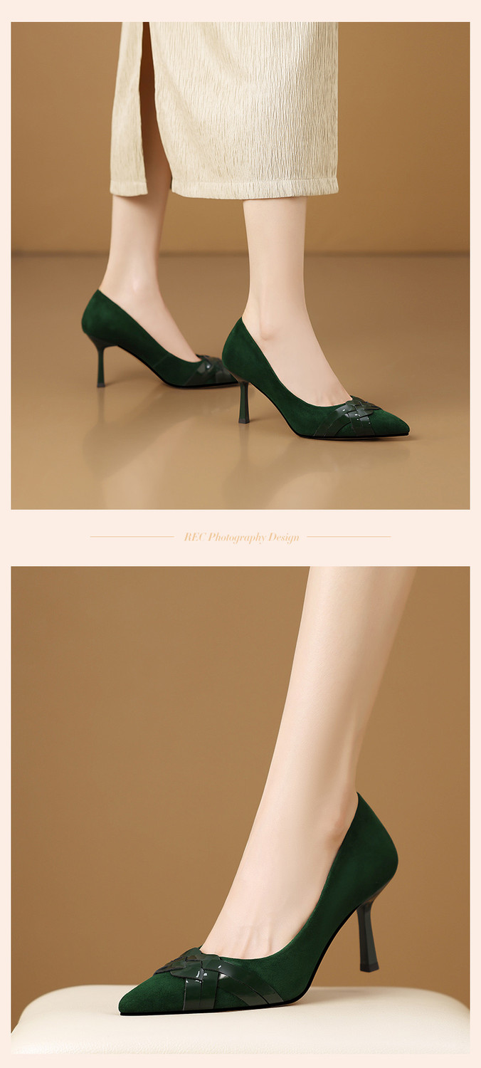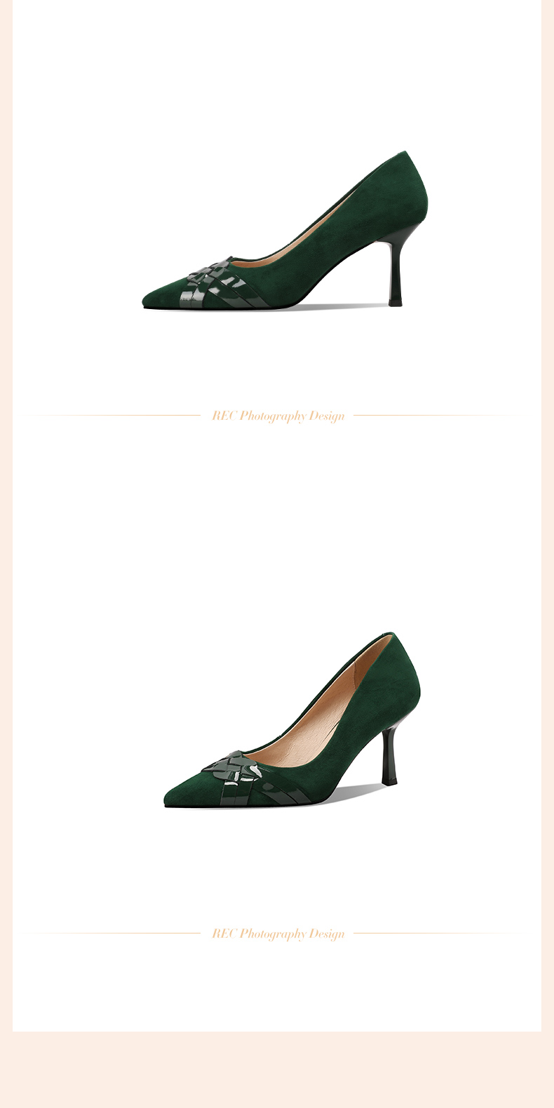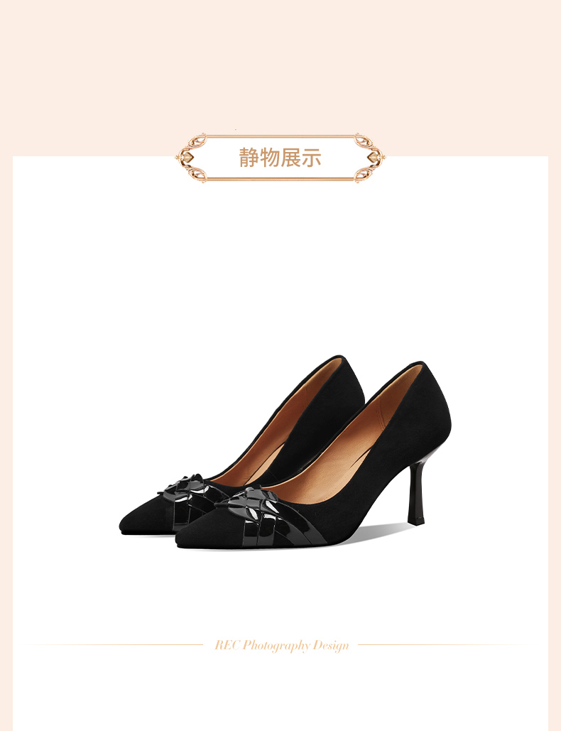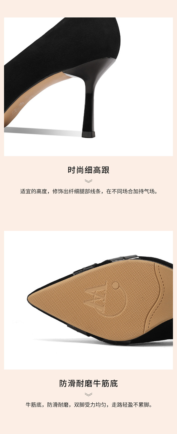 【预售5天】黑色编织尖头职业高跟鞋女秋季新款细跟单鞋浅口女鞋HY&H3700