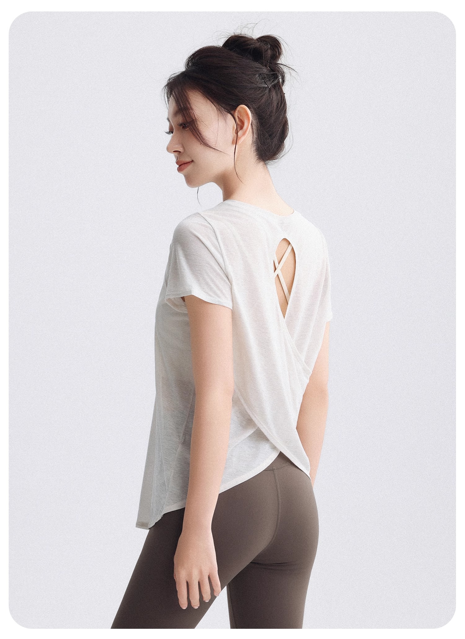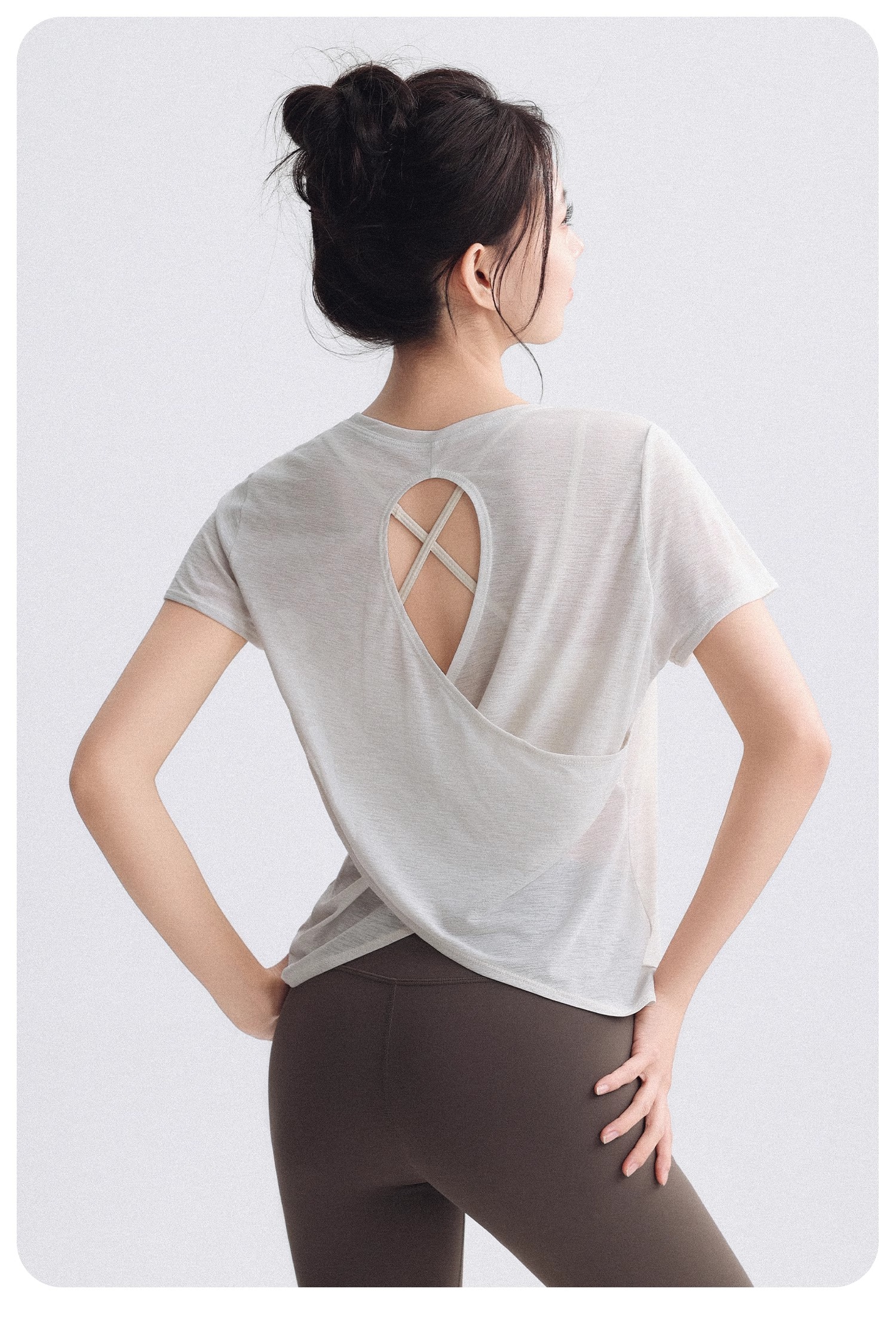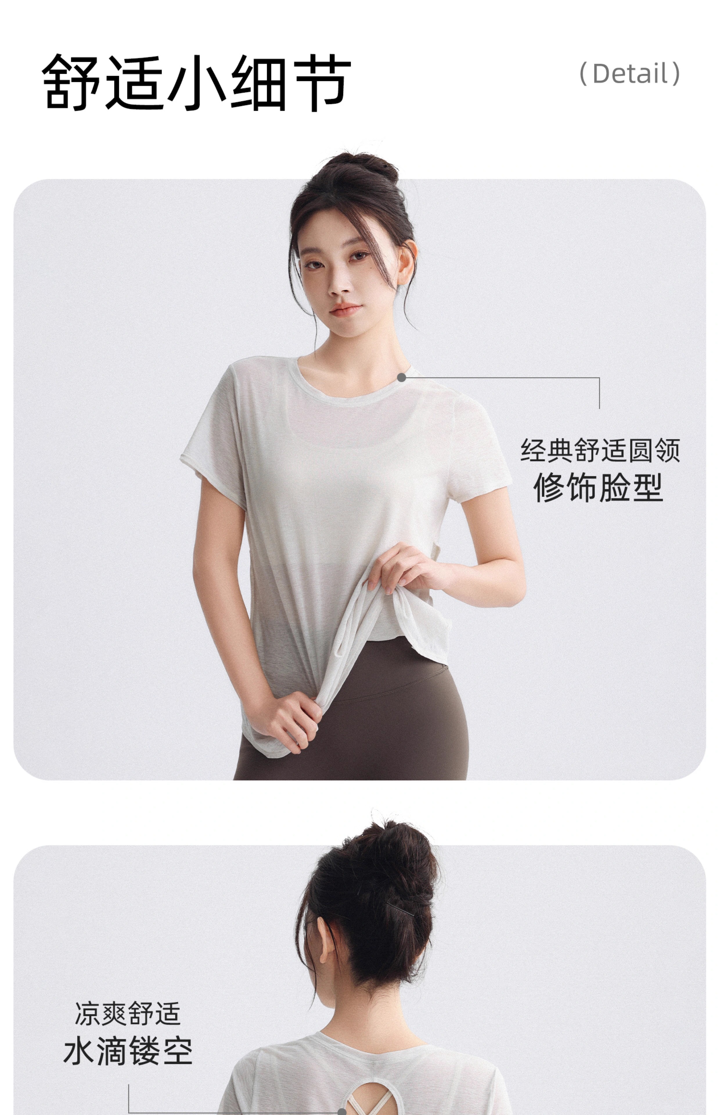 跃牌【安琪拉系列】夏季竹节纱透气瑜伽T裇镂空美背运动上衣女TX41025