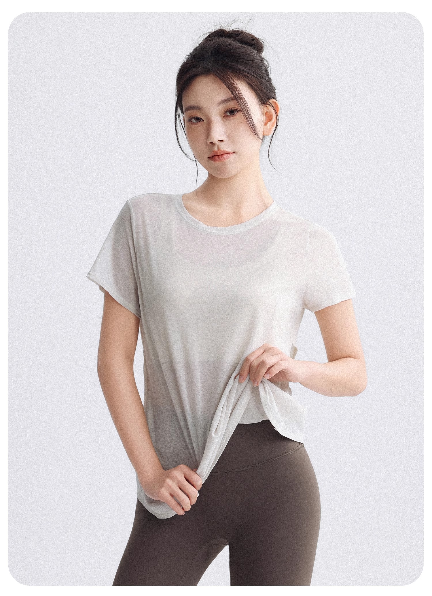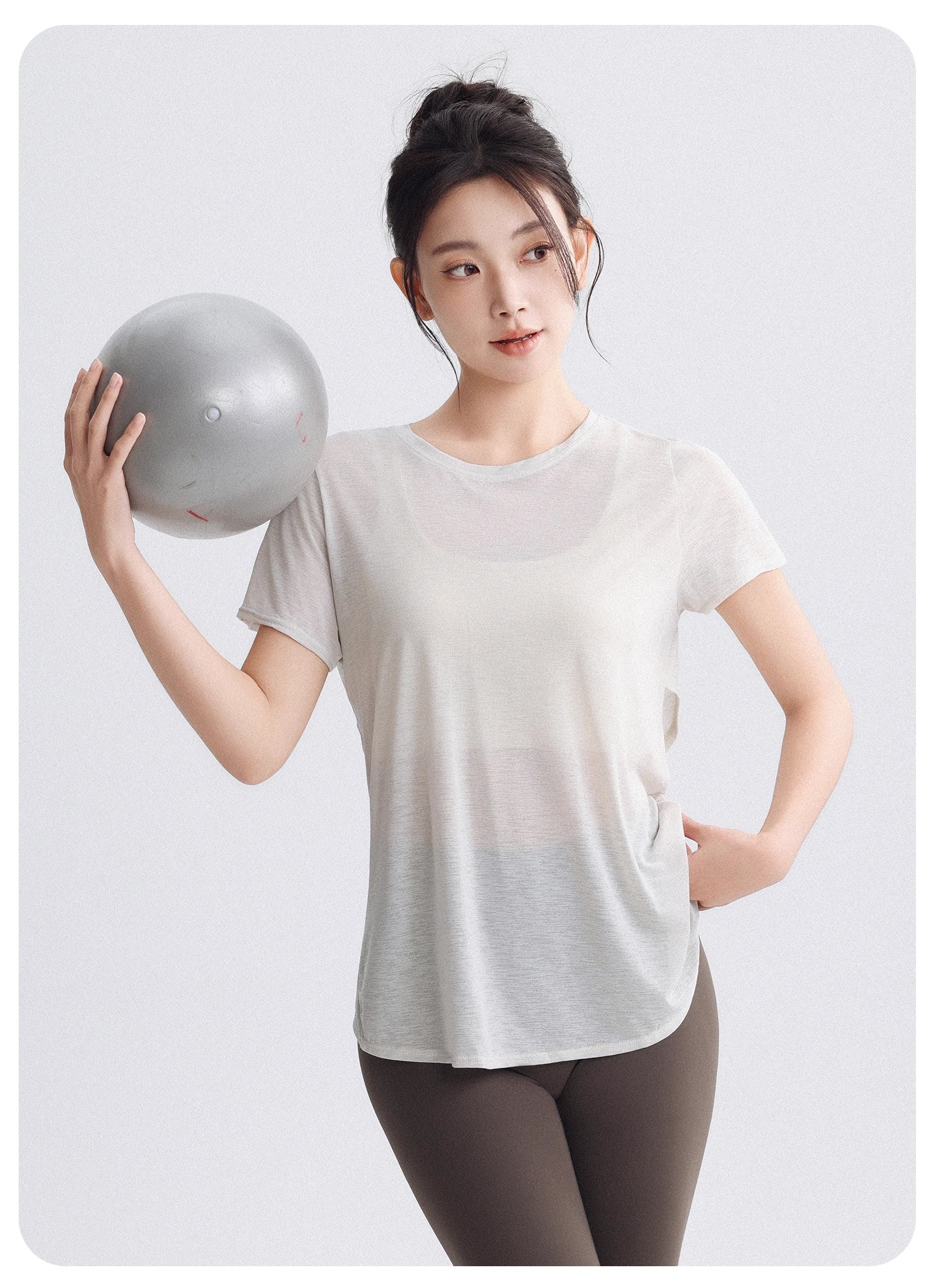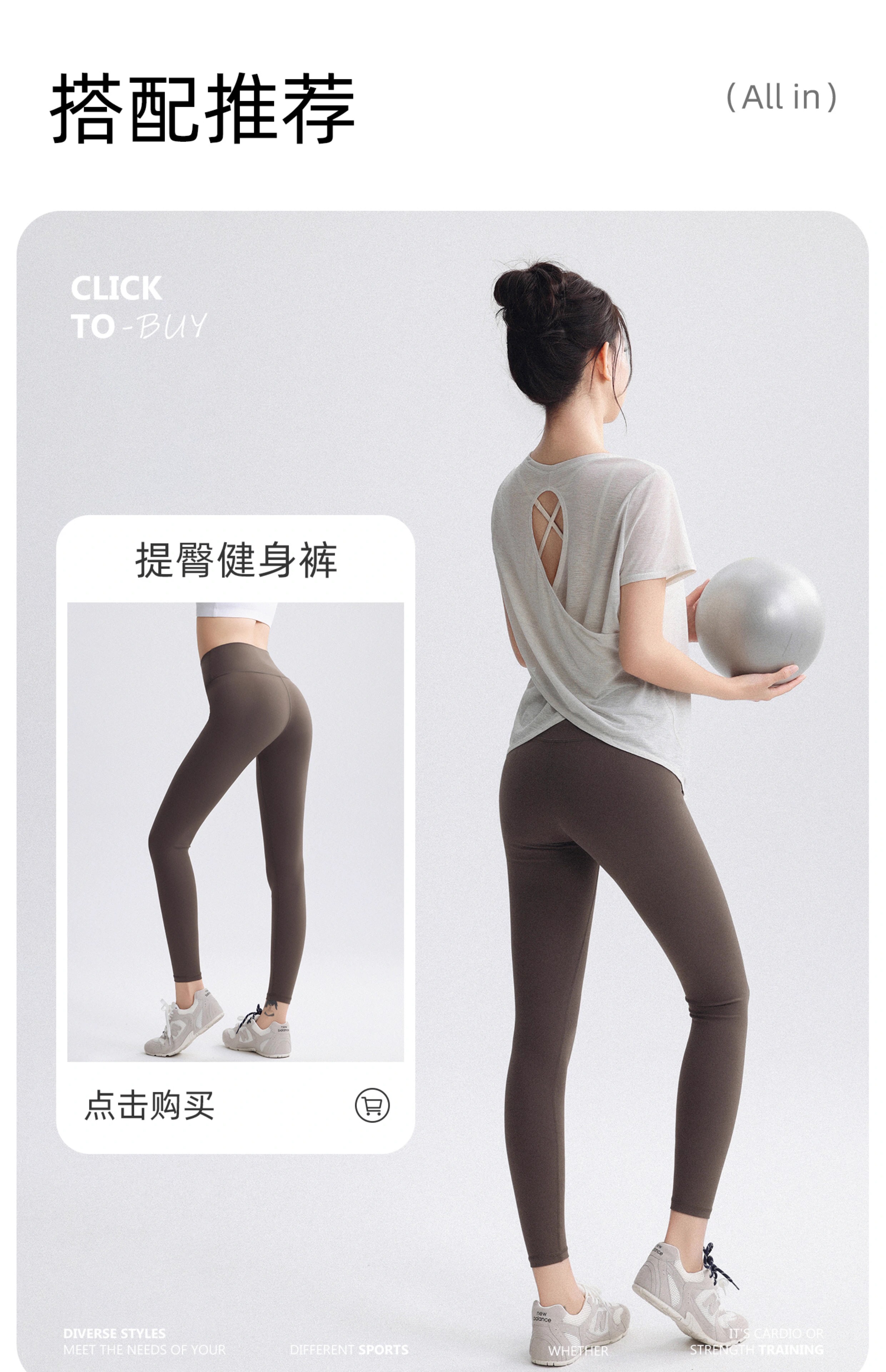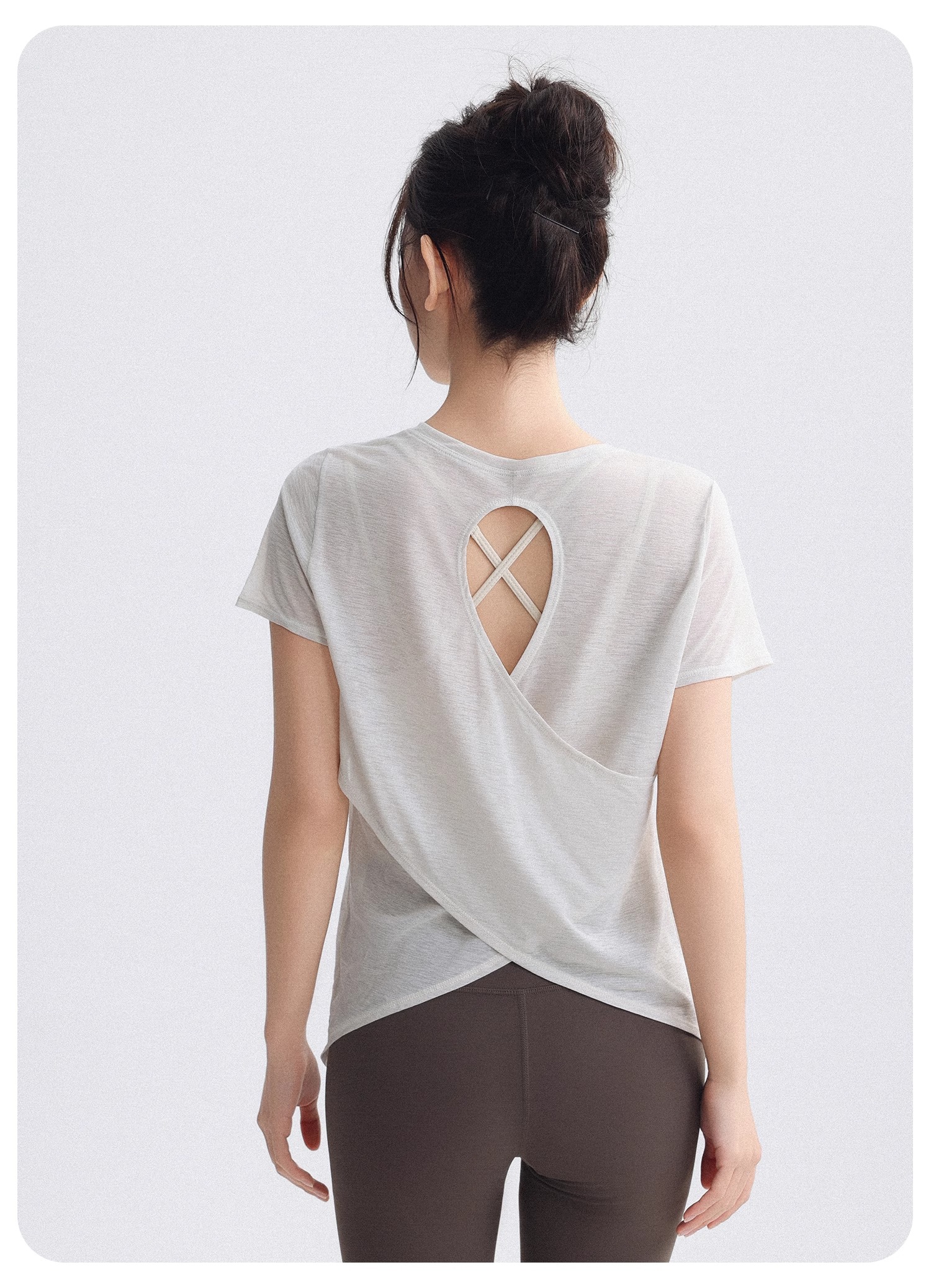 跃牌【安琪拉系列】夏季竹节纱透气瑜伽T裇镂空美背运动上衣女TX41025