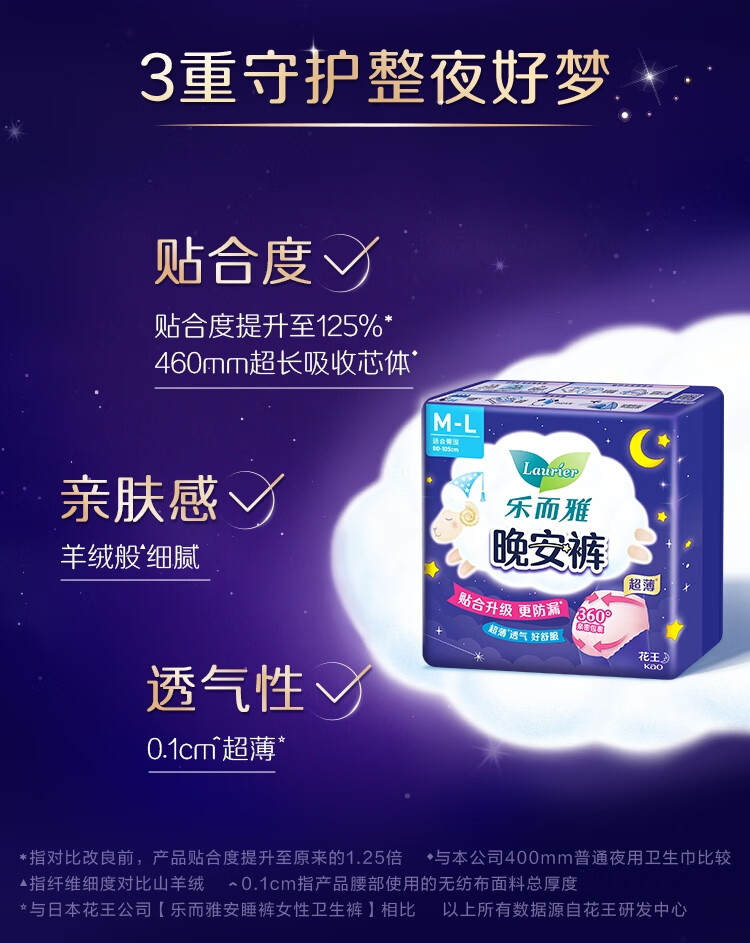 花王乐而雅晚安裤2片装 M-L 50-70kg