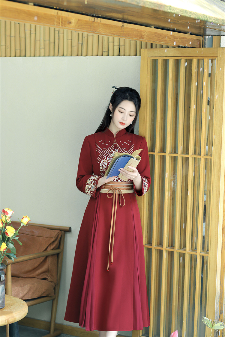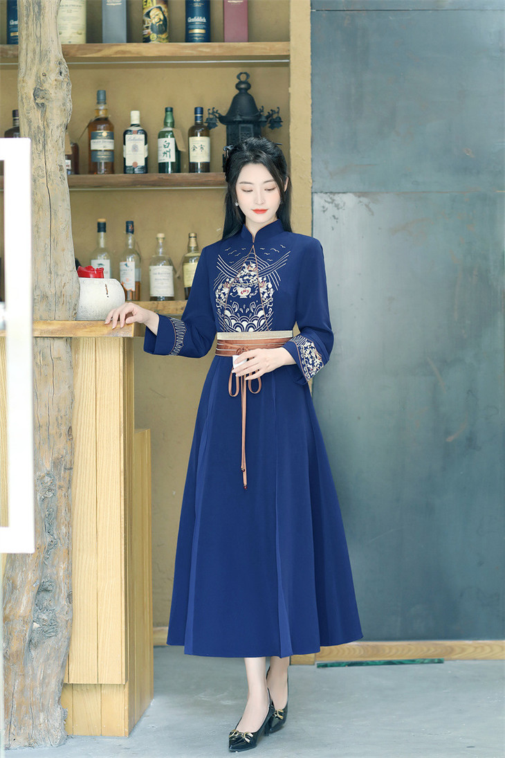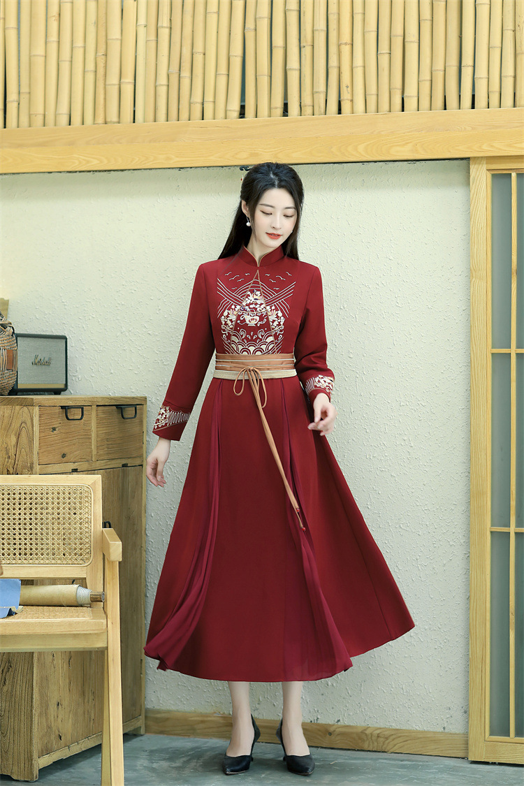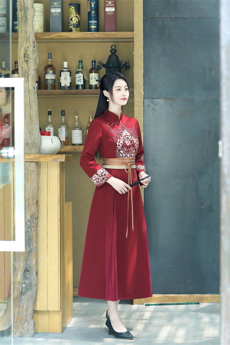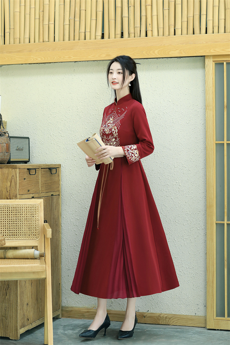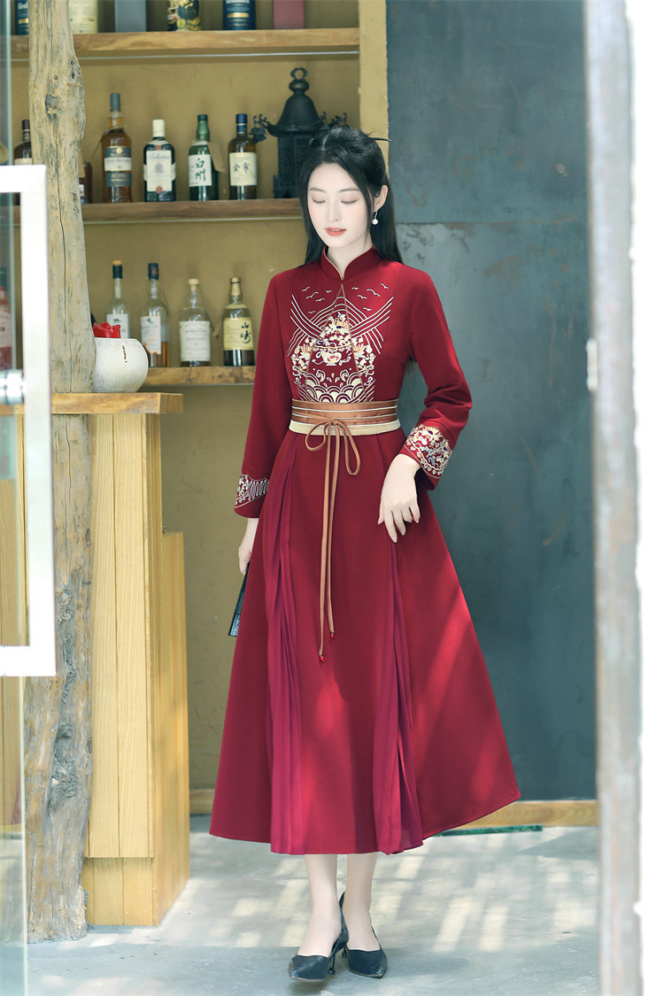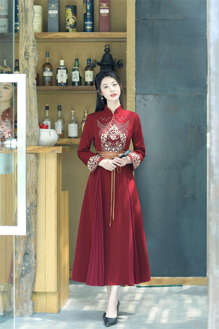 秋冬新款国风复古中式旗袍礼服茶服修身连衣裙FL-2299