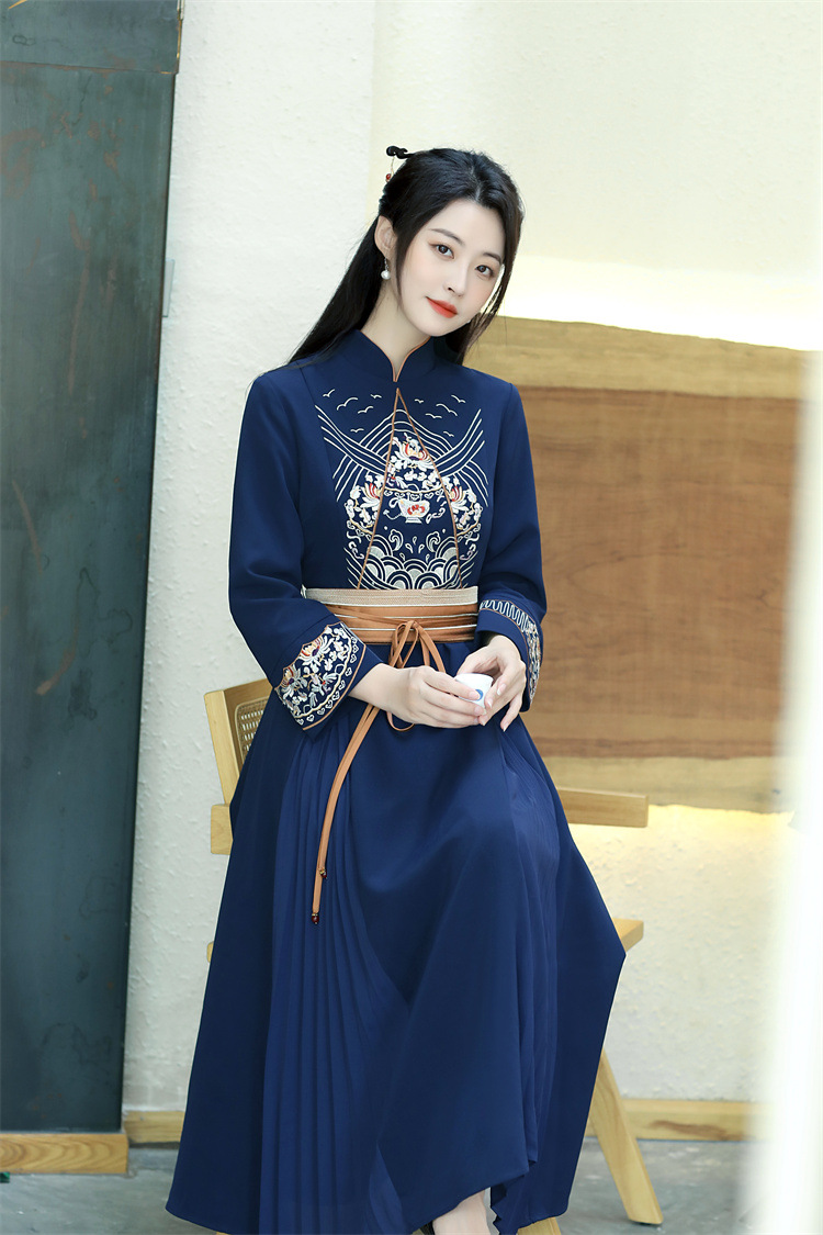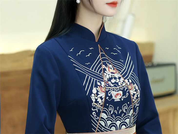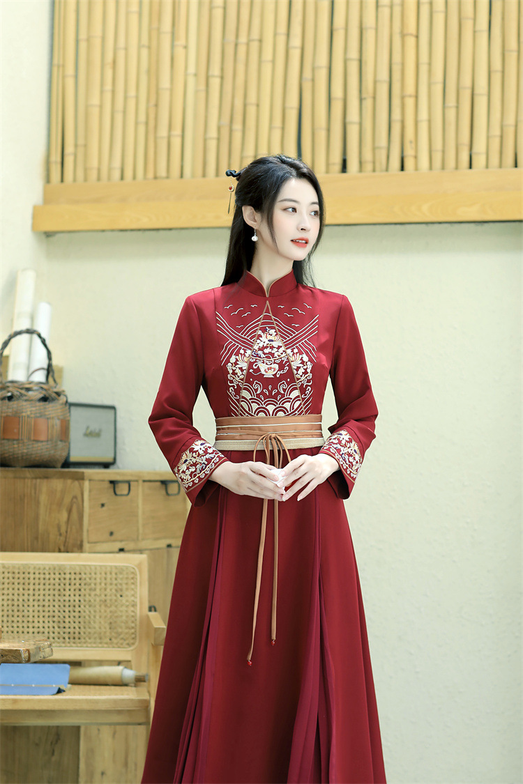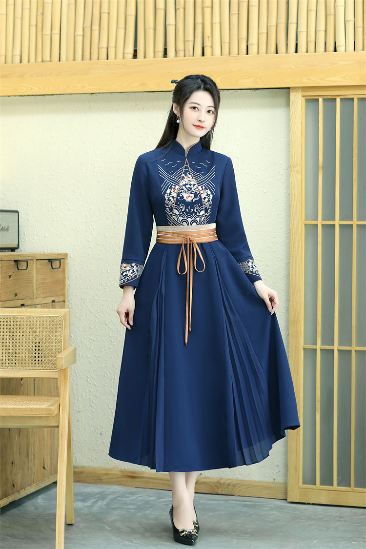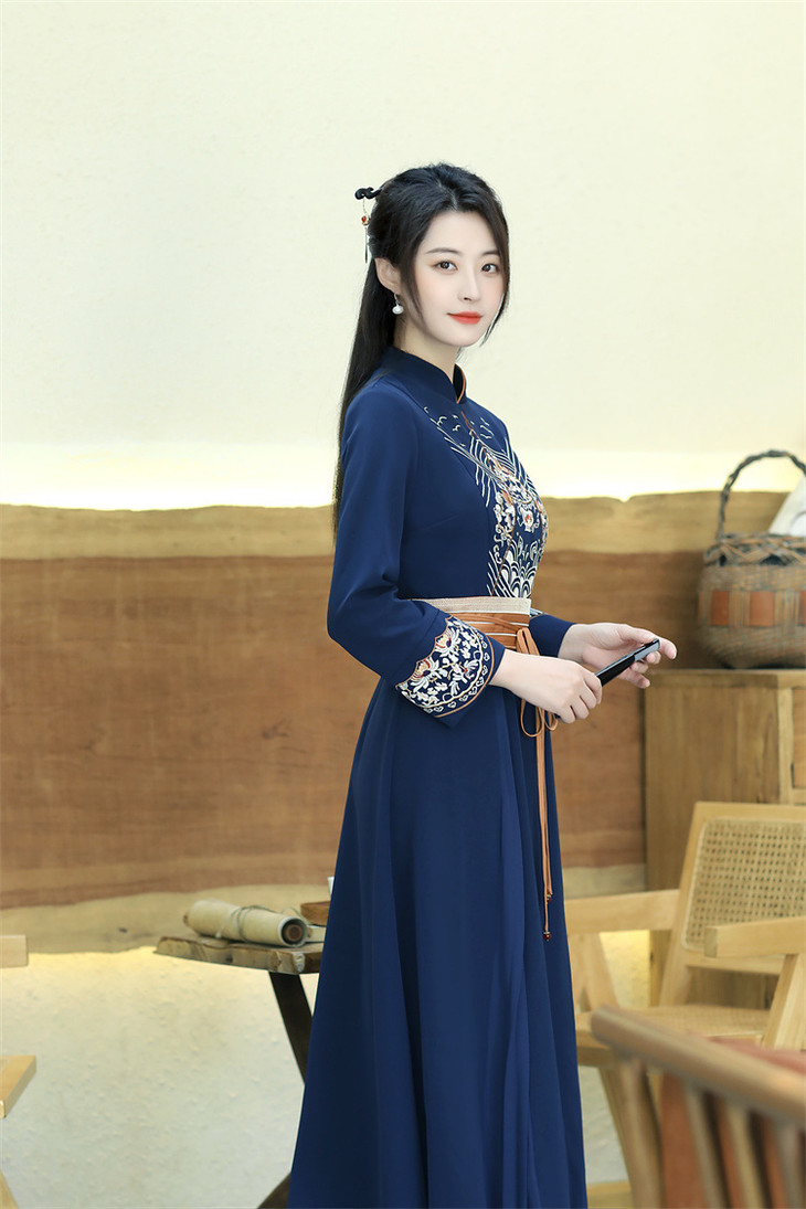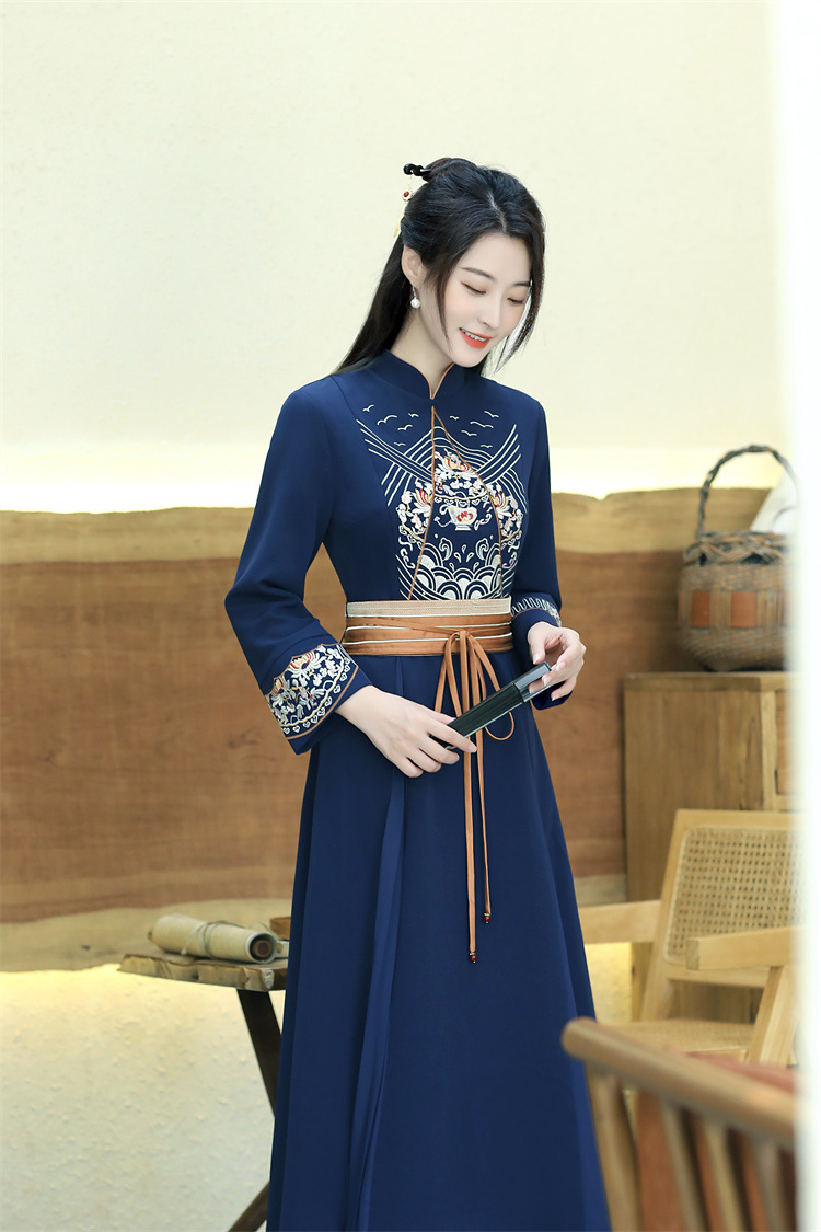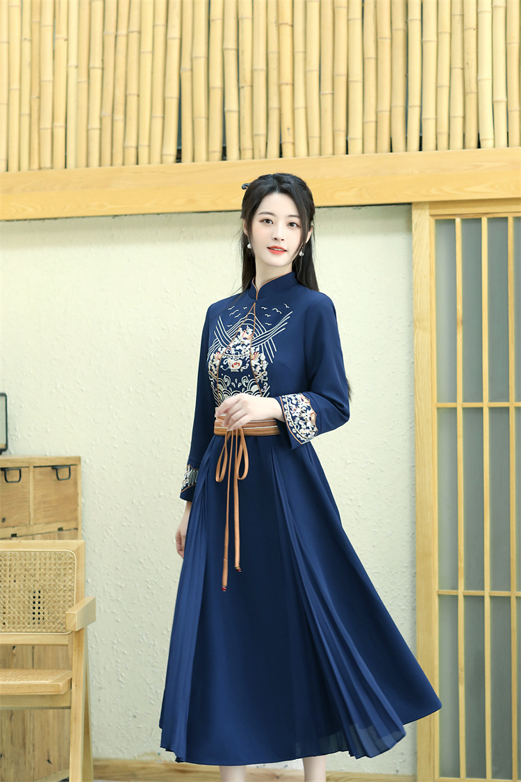 秋冬新款国风复古中式旗袍礼服茶服修身连衣裙FL-2299