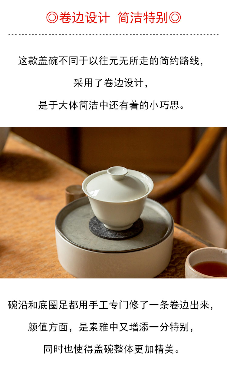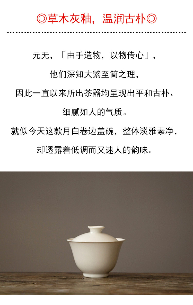 茶香记 元无 月白卷边盖碗 简约 素雅 精致 细腻 元无 草木灰釉