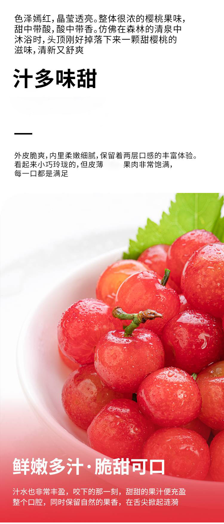 2:小樱桃皮很薄,本身比较娇嫩,运输中挤压导致局部变色不影响食用,不在售后范围内