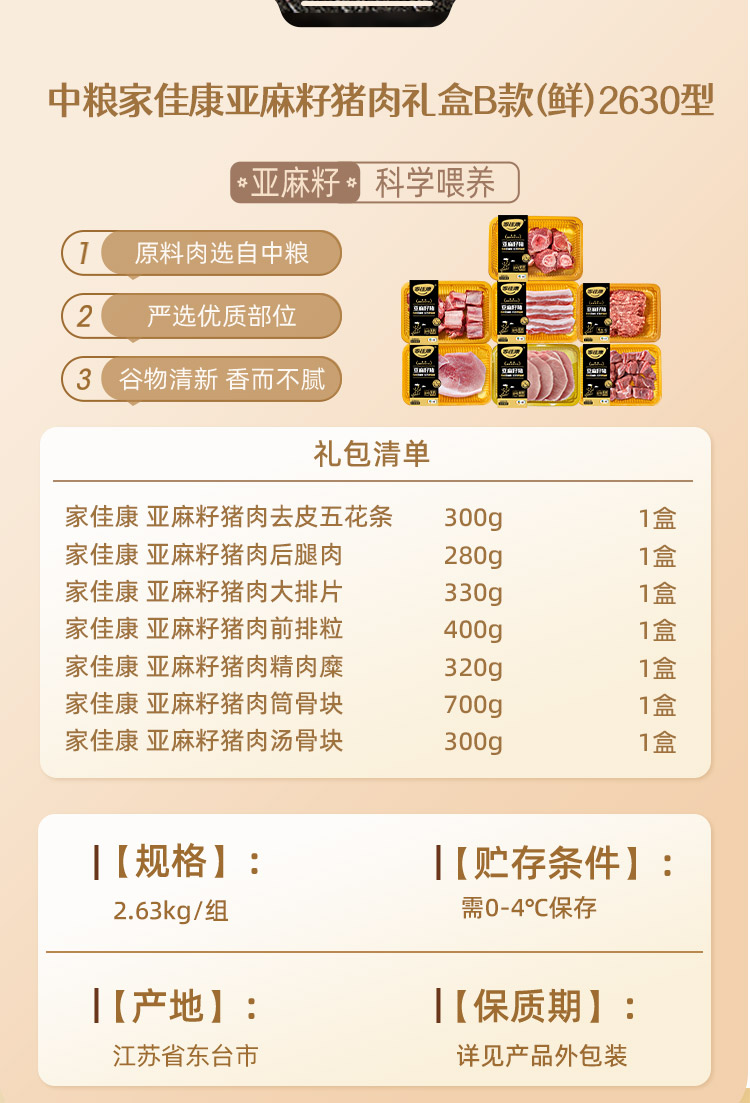 【直送到家】2630g中粮家佳康亚麻籽猪肉礼盒B款(鲜)