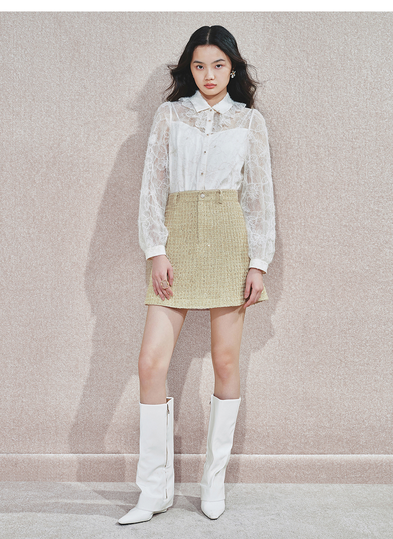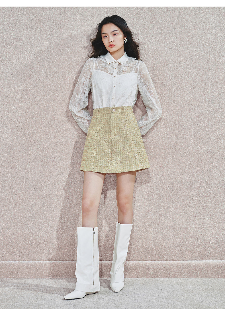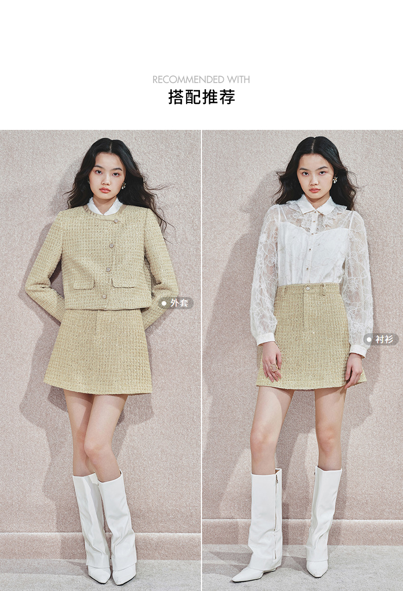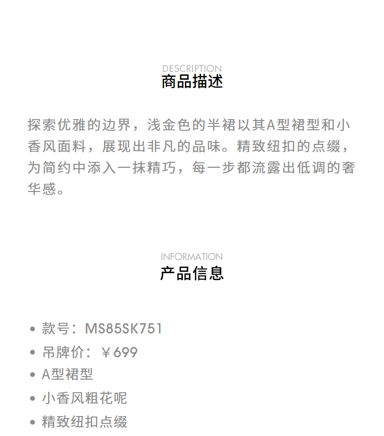 MAXRIENY【商场同款】千金小香风A字半裙高腰修身短裙高级气质感(货号:MS85SK751)