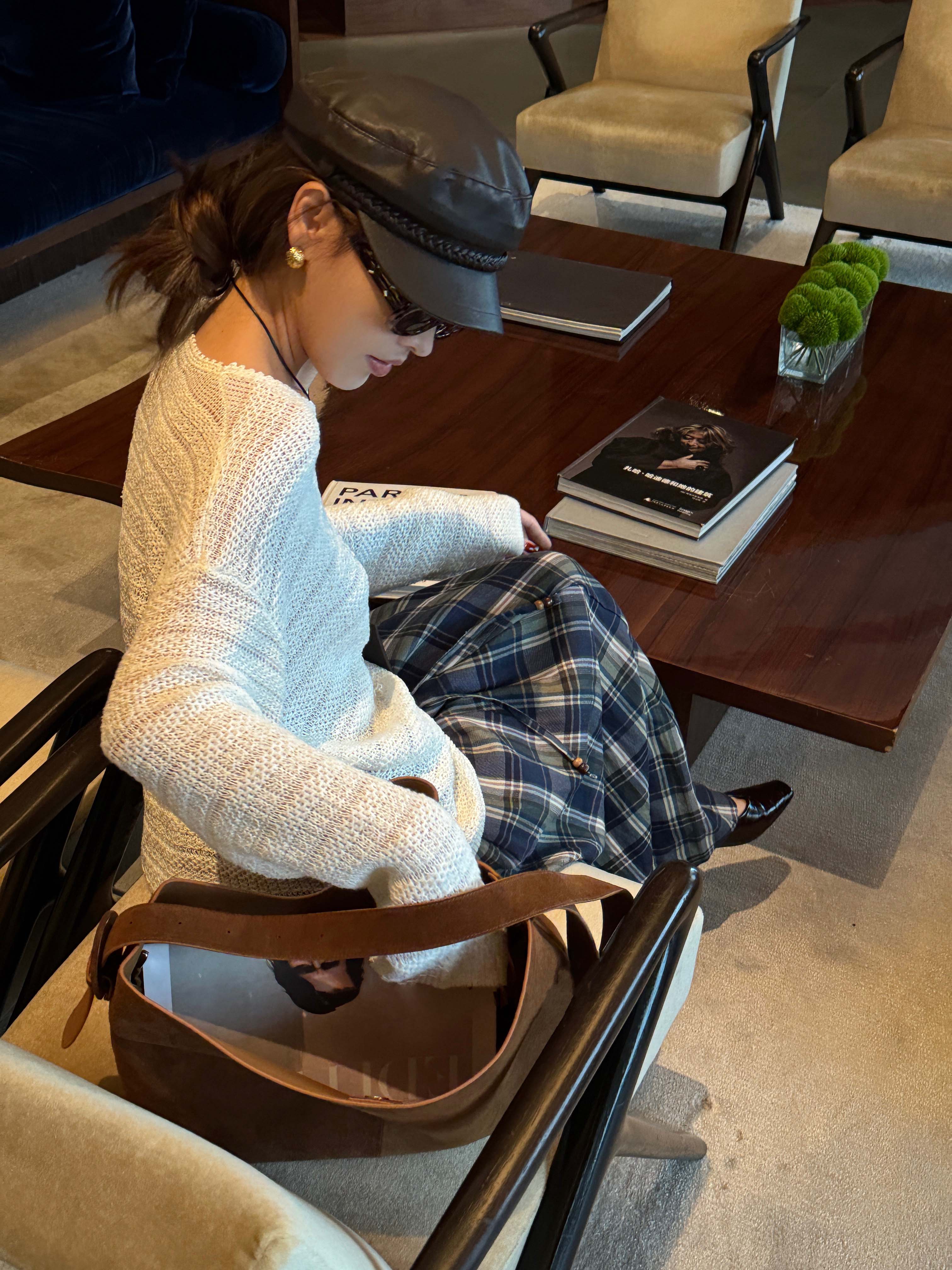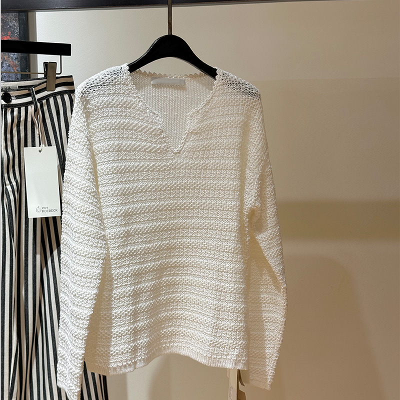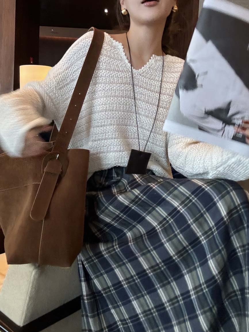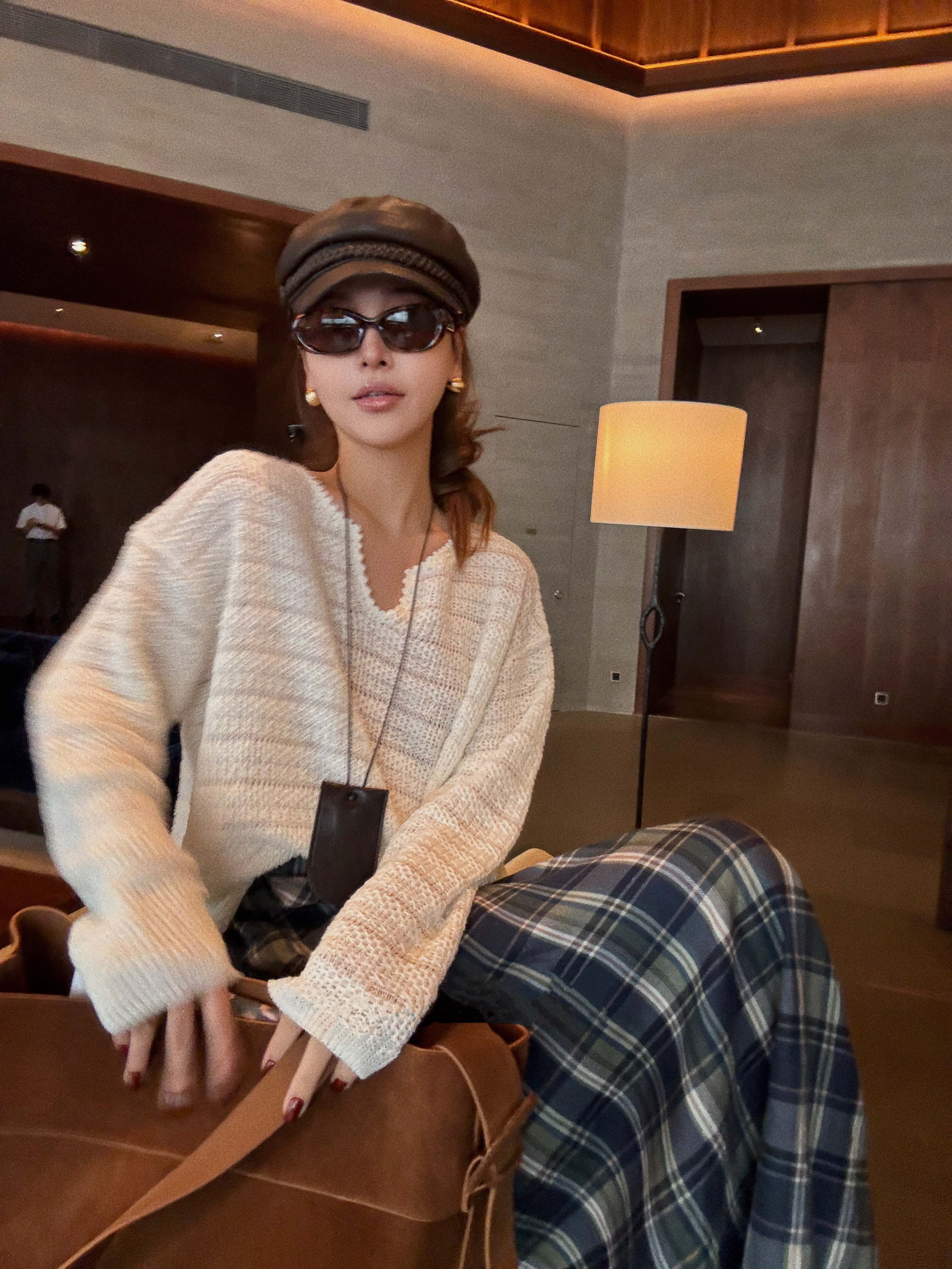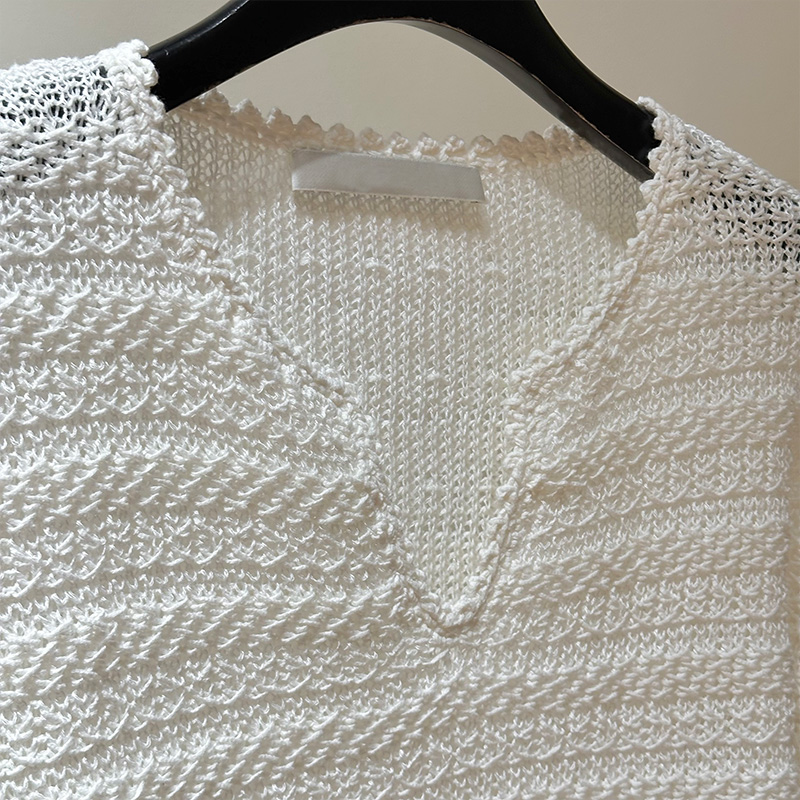 「花边小v领肌理感镂空针织衫 」秋冬日慵懒必备!
