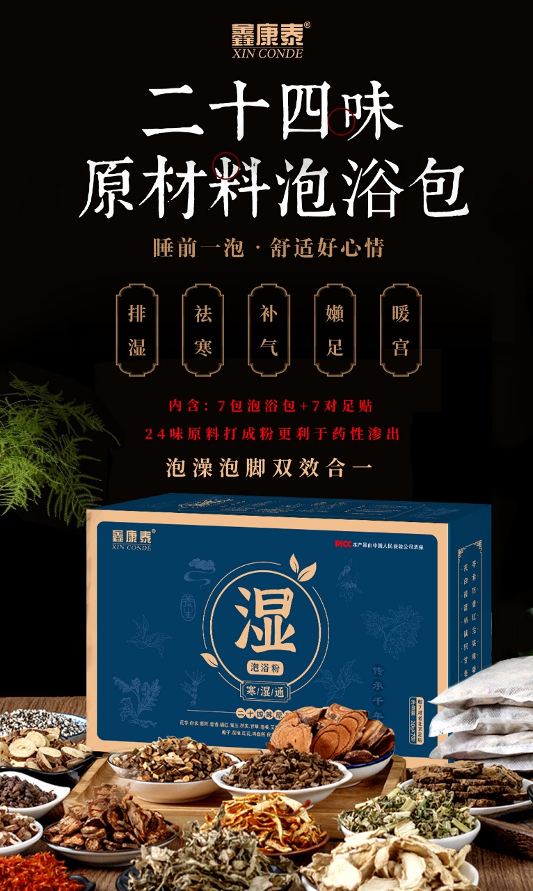鑫康泰二十四味原料泡浴粉/1盒(20g*7包+7对足贴)限用日期:27年11月