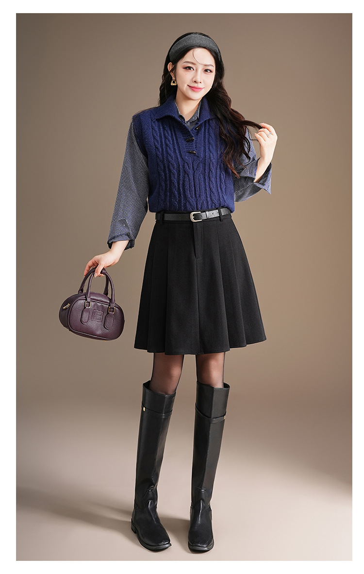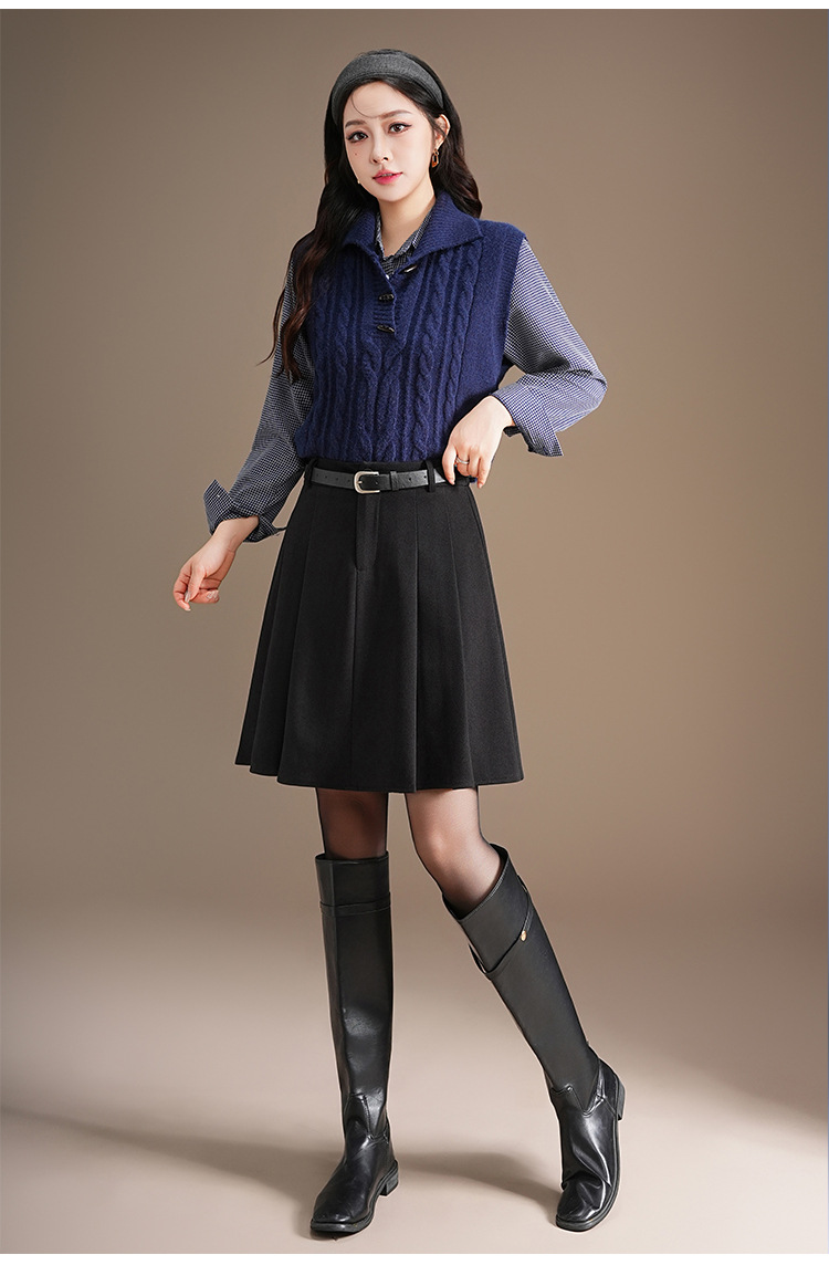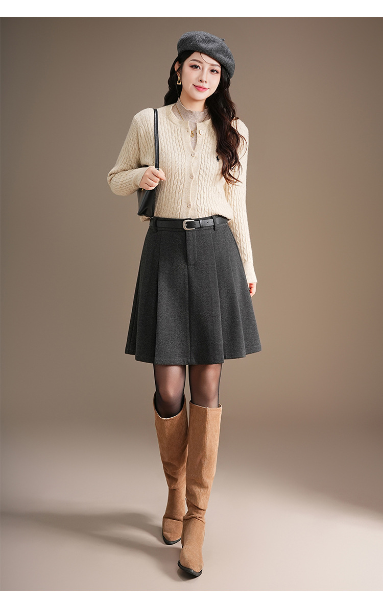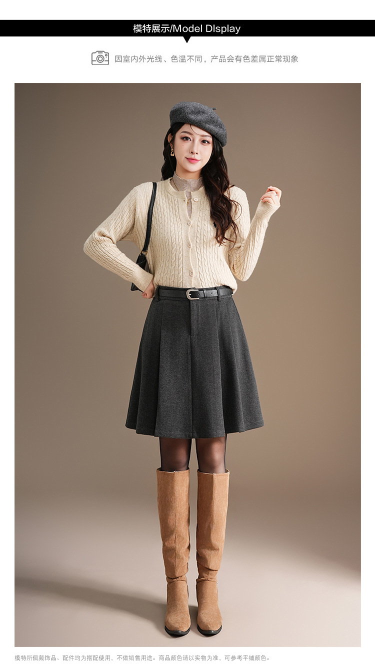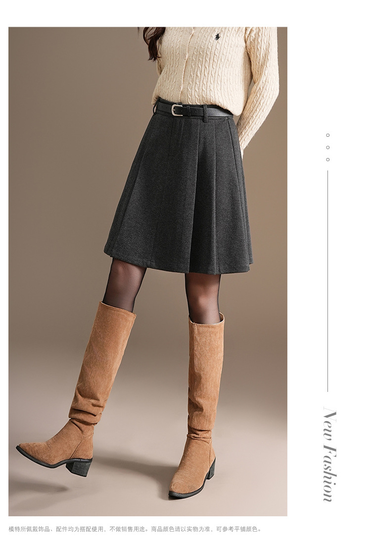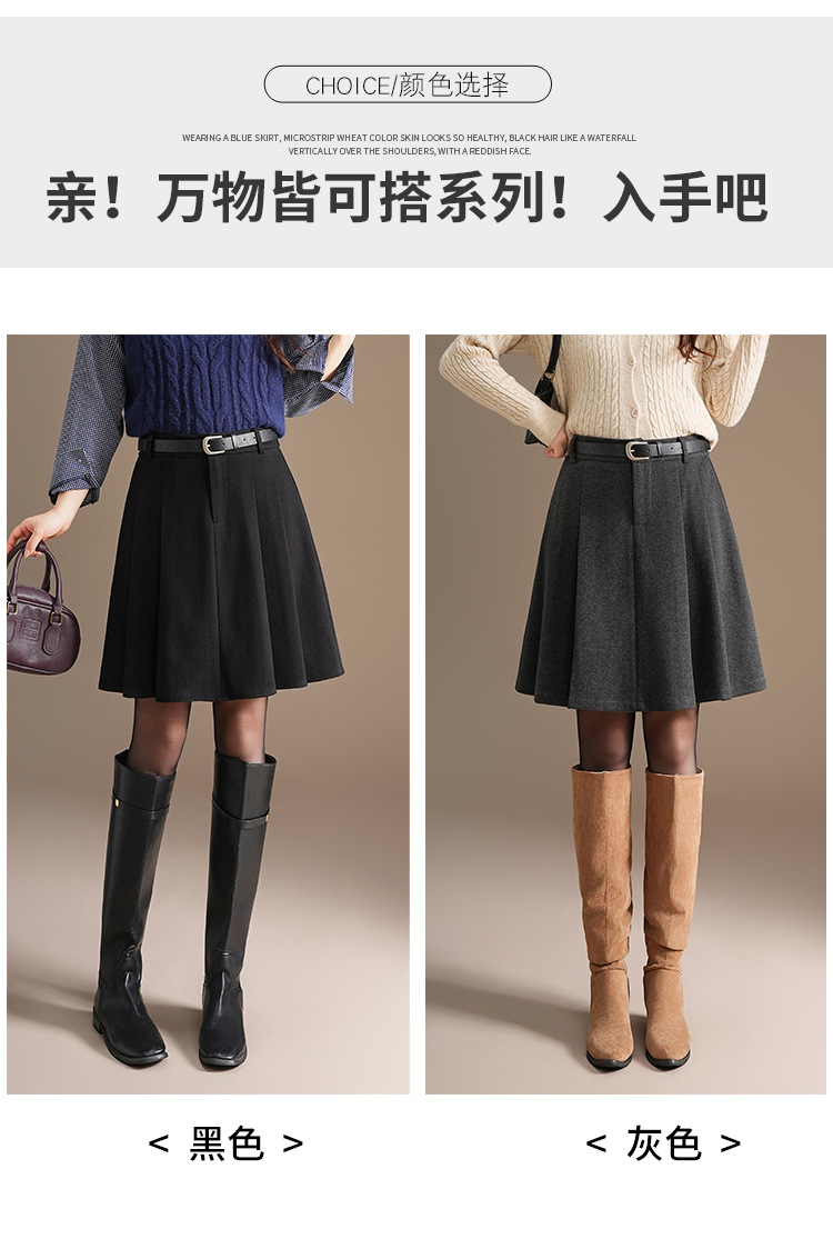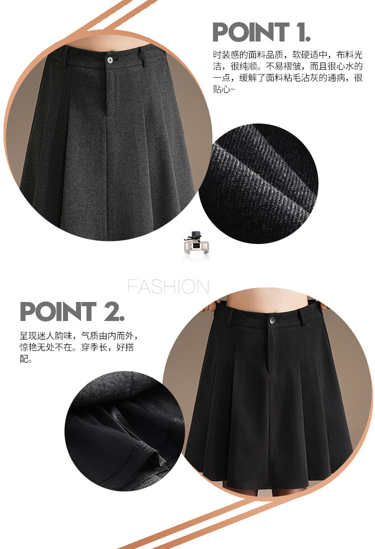 「自」全新升级【铂金会员146/天猫189/差价43】(15453)洛诗琳纯色百褶裙高腰显瘦2025秋冬季毛呢半身裙A字裙