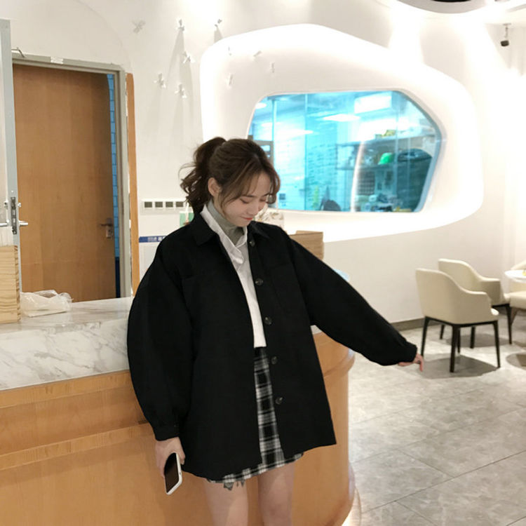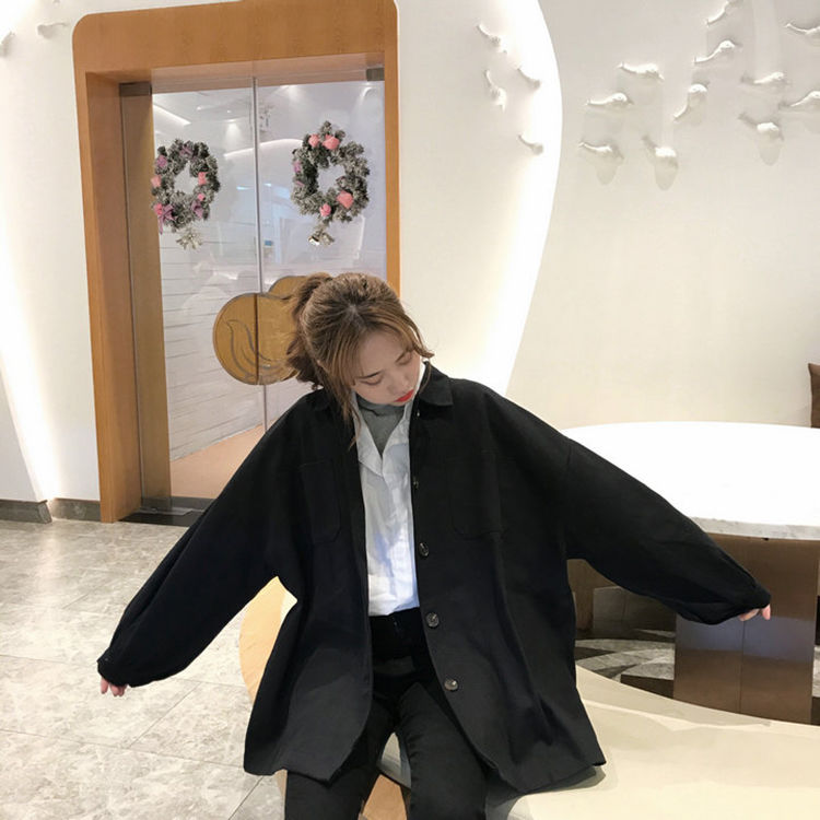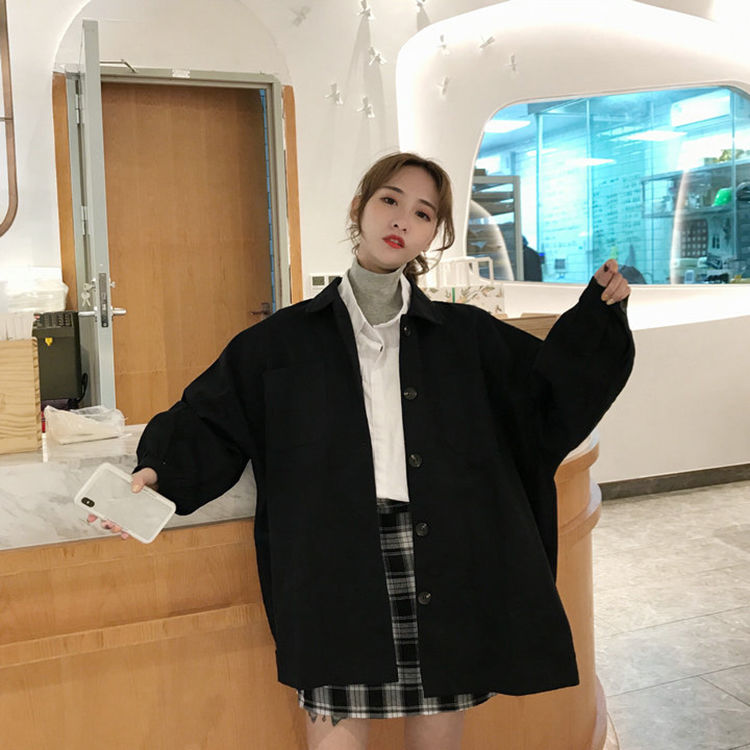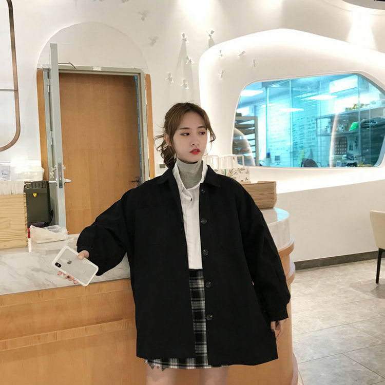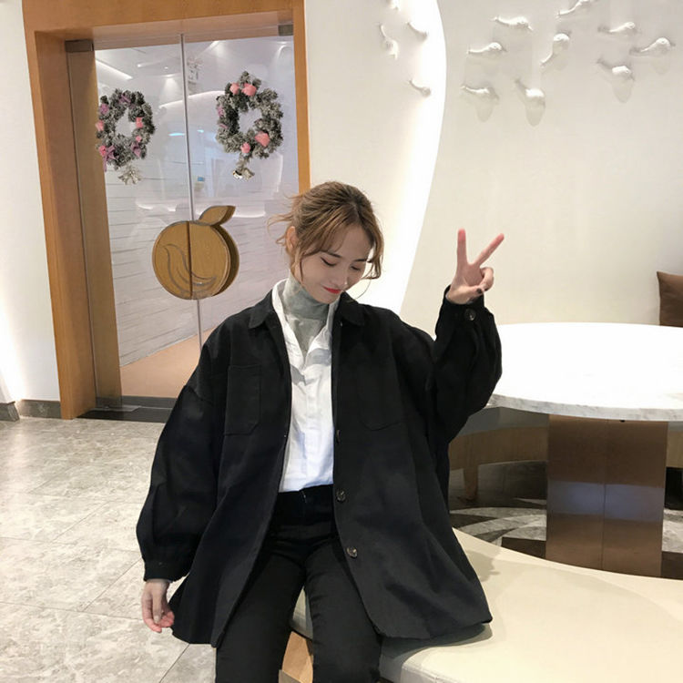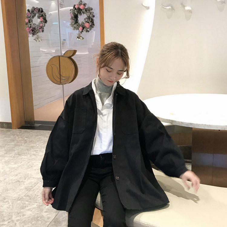 衬衫外套女学生韩版宽松春秋季新款原宿港风bf风衣oversize工装潮 (S码建议80-95斤 M码建议95-120斤 L码建议120-145斤 XL码建议145-180斤 )