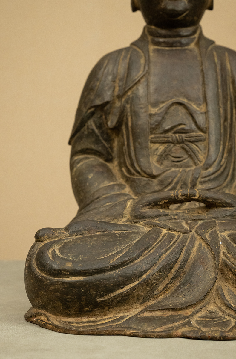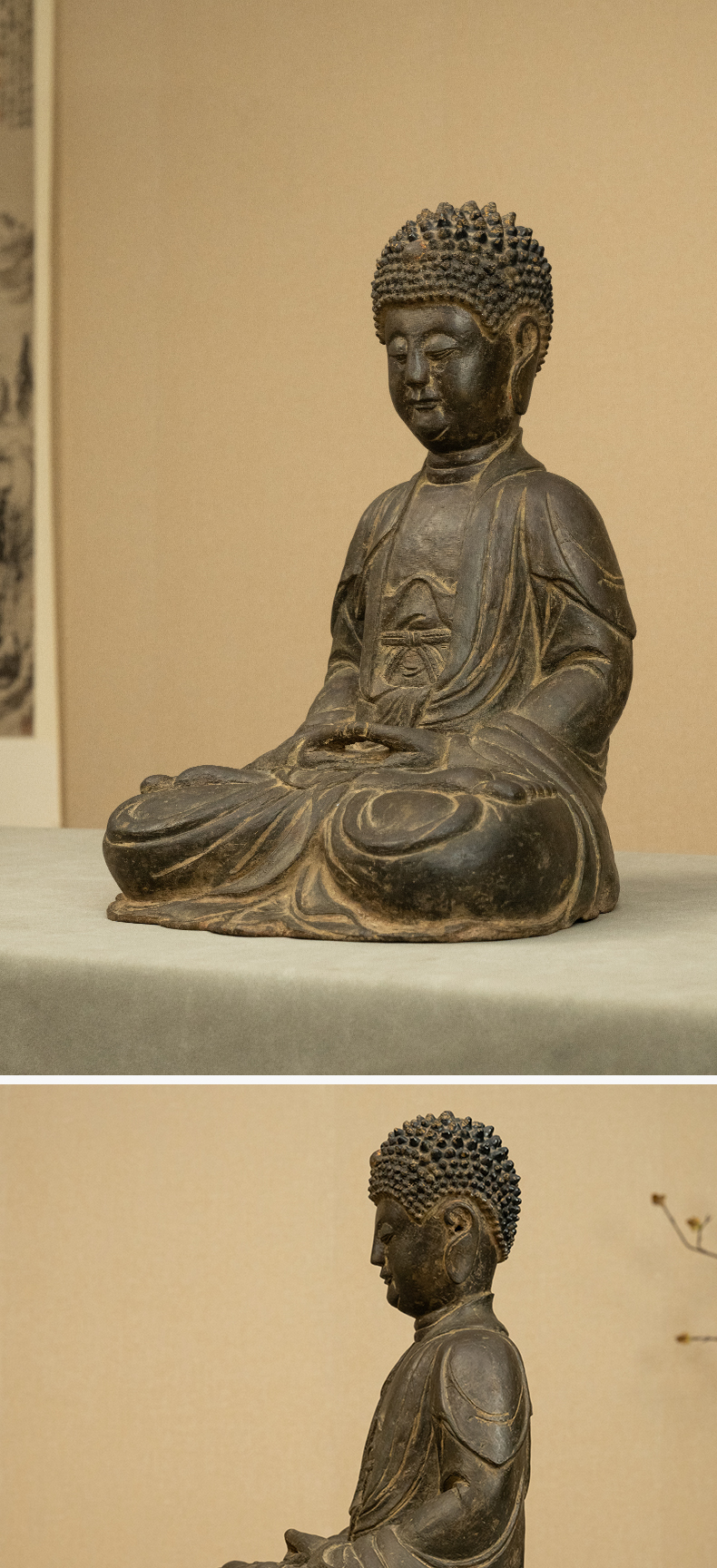 清 青金石嵌绿松石莲花盖盒(红木座)