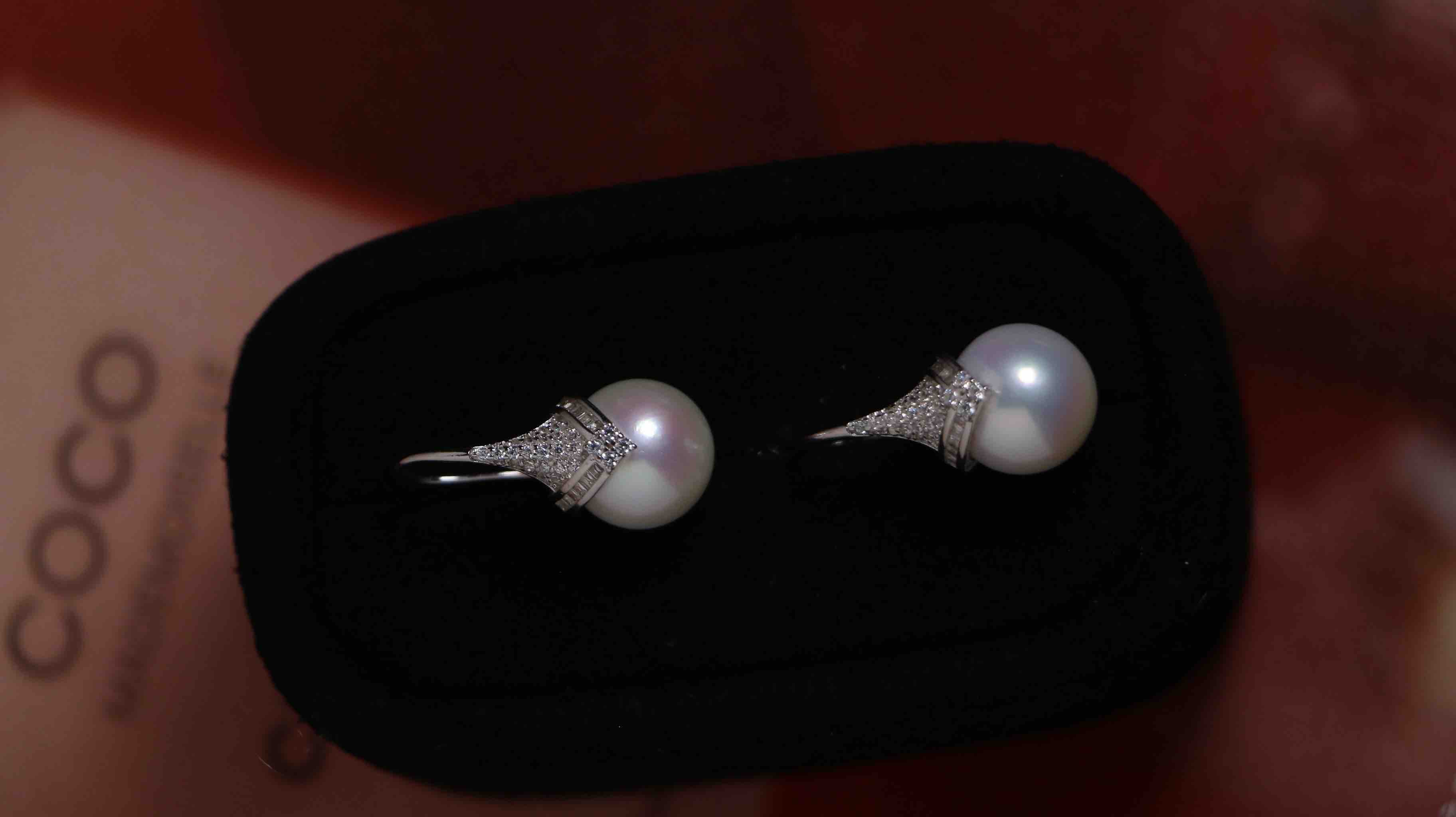耳钩款淡水珍珠耳坠 11-12mm 正圆强光 面无暇 侧边微微瑕 纯银配件