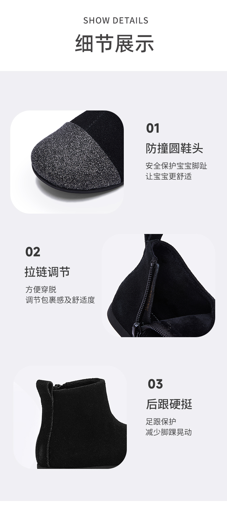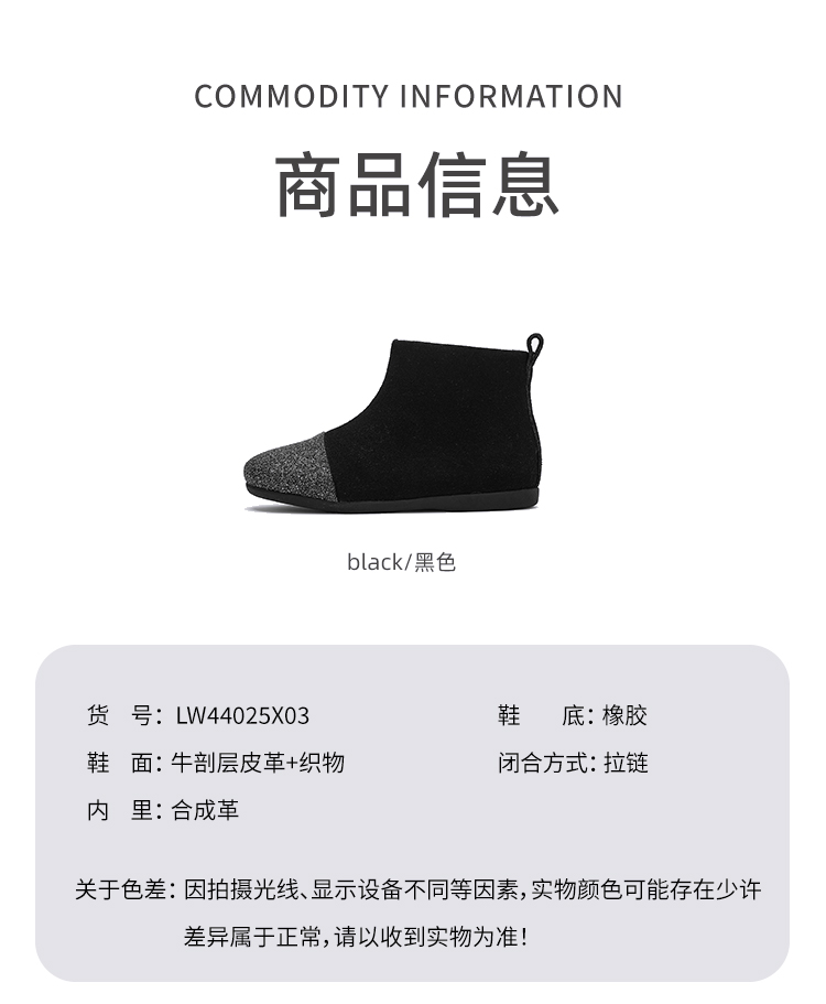 春节不打烊-西班牙LITTLE WINKAA优雅简约绒皮黑色绒面闪粉鞋头侧拉链冬款公主短靴