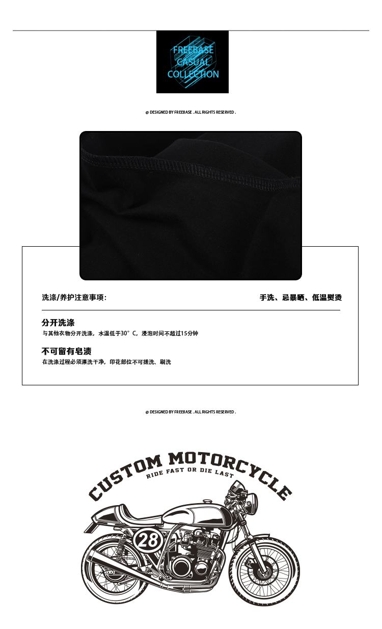 自由基地男装motorcycles复古图案印花夏季潮流短袖T恤衫半袖汗衫 NMT-1869