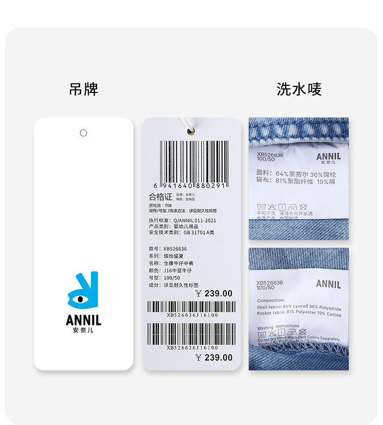 【实体店同款】男童全腰牛仔中裤夏季新款安奈儿童装XB526636