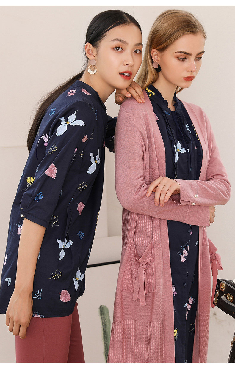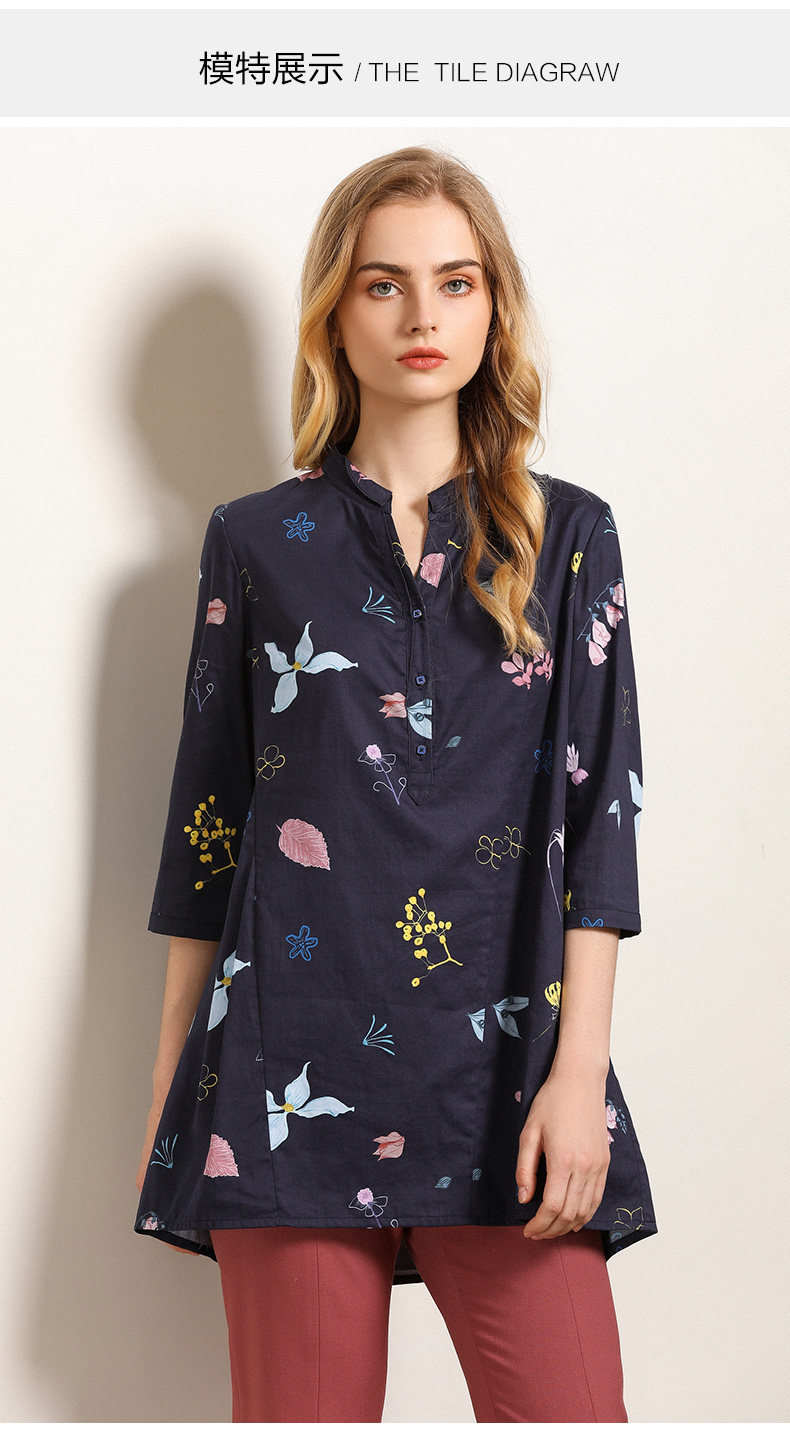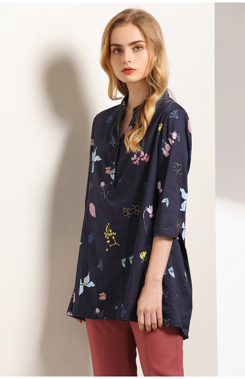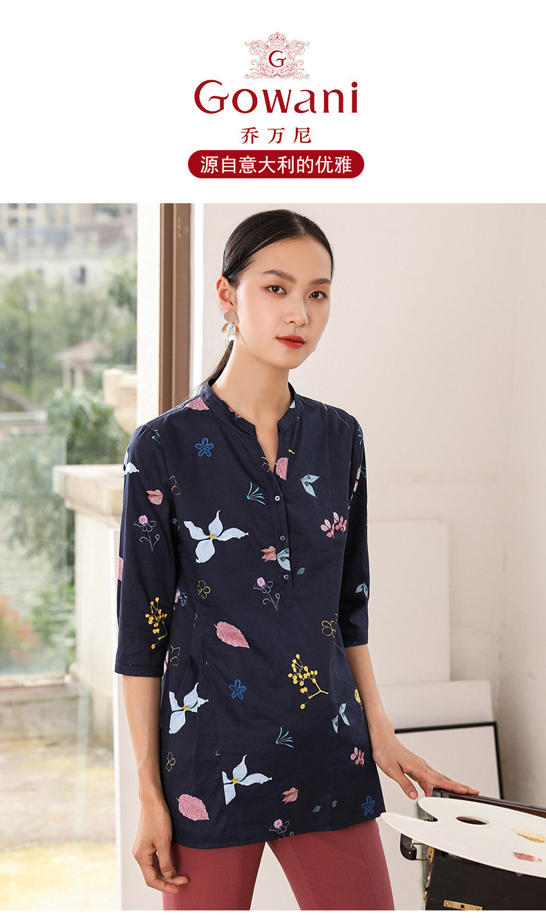 乔万尼秋装衬衫宽松套头气质印花七分袖上衣女中长款春EN3C383