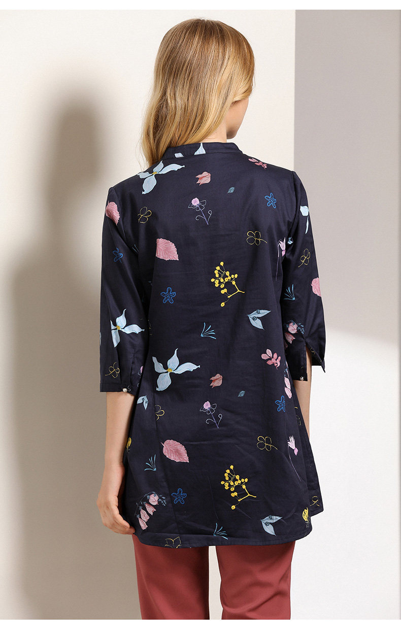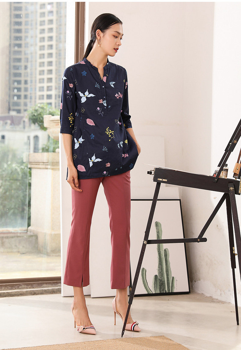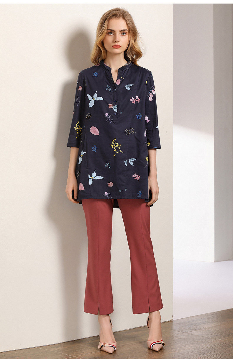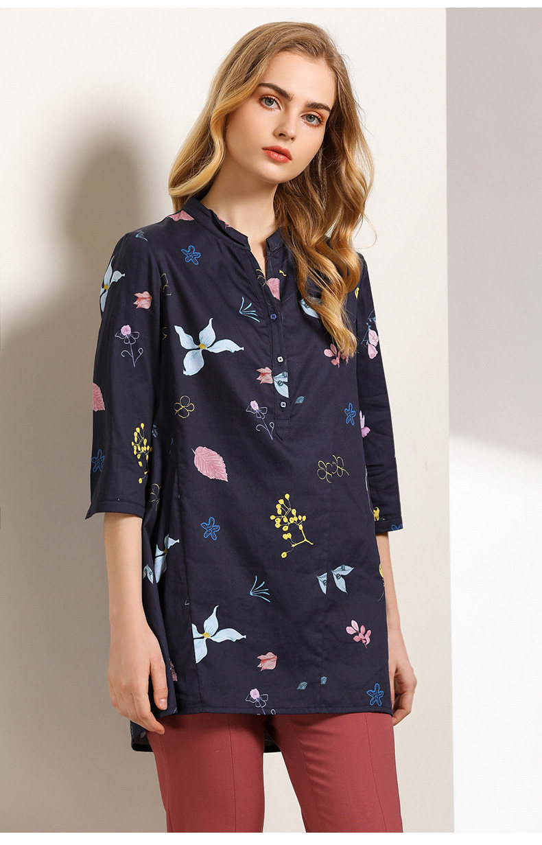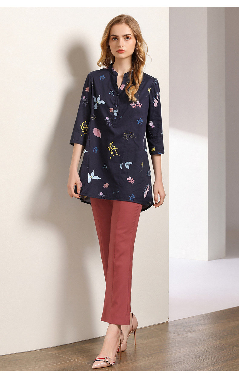 乔万尼秋装衬衫宽松套头气质印花七分袖上衣女中长款春EN3C383