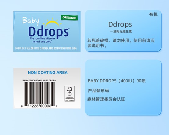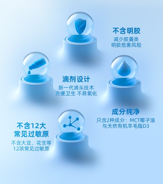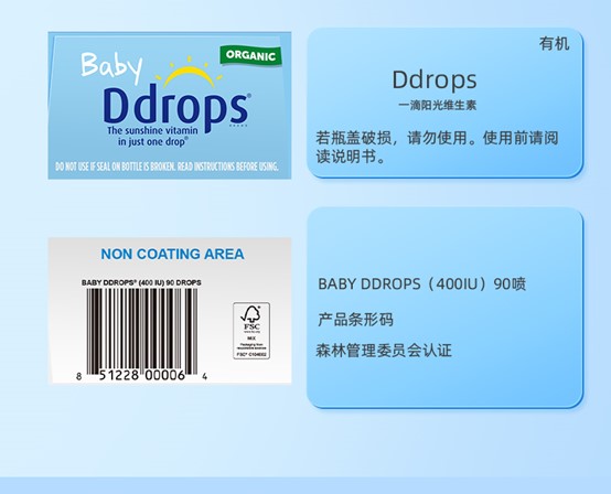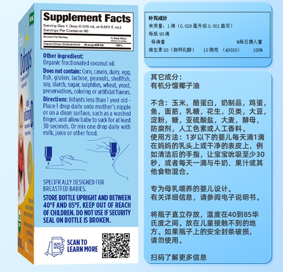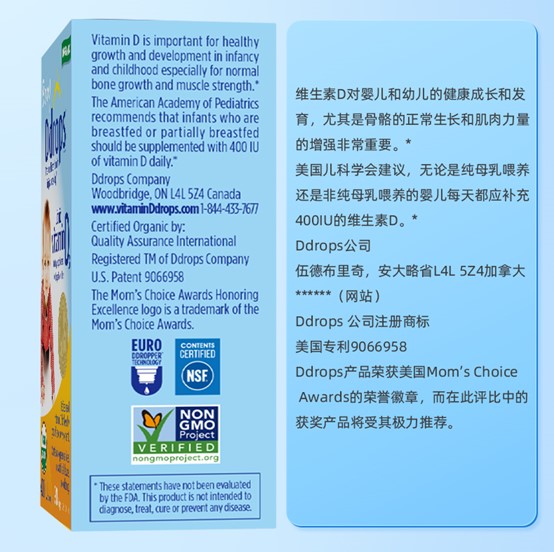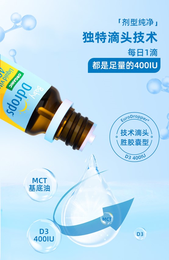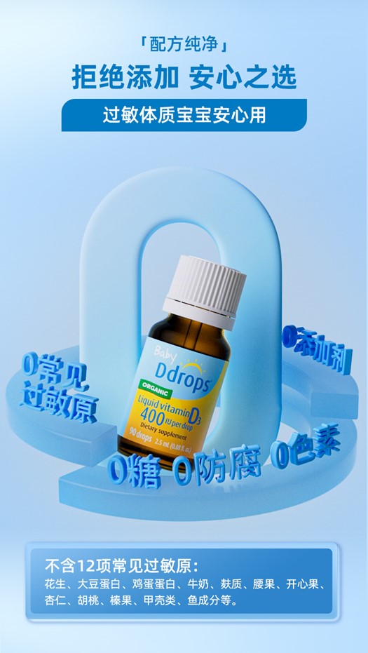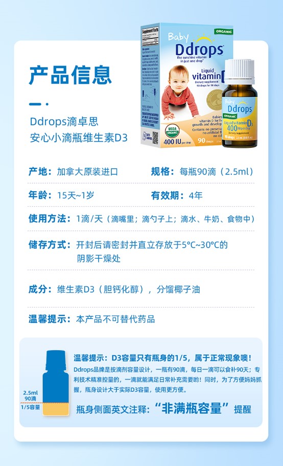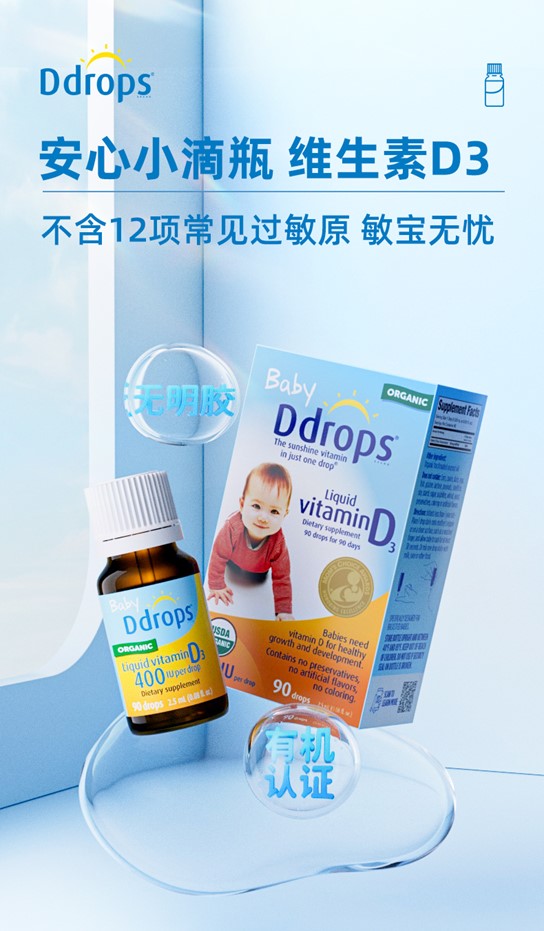 Ddrops滴卓思 宝宝维生素D3滴剂400IU营养 0岁以上 2.5ml/瓶 DD小滴瓶SC