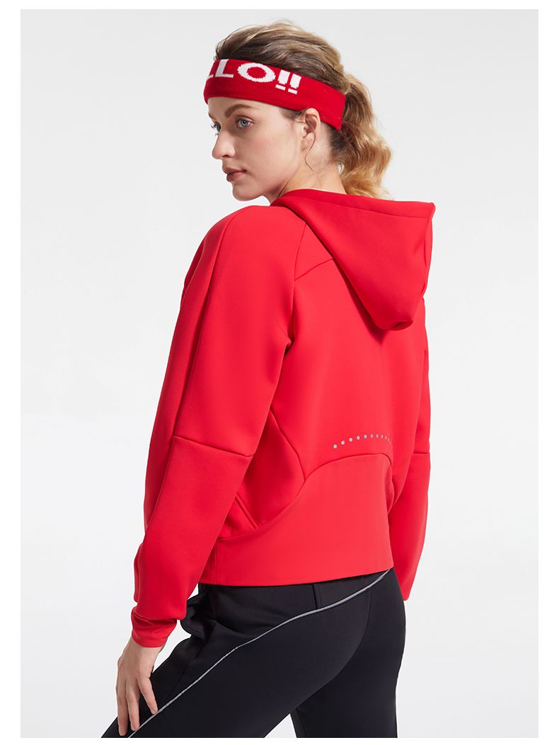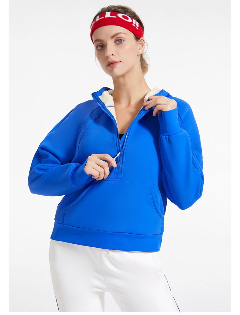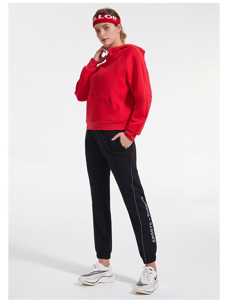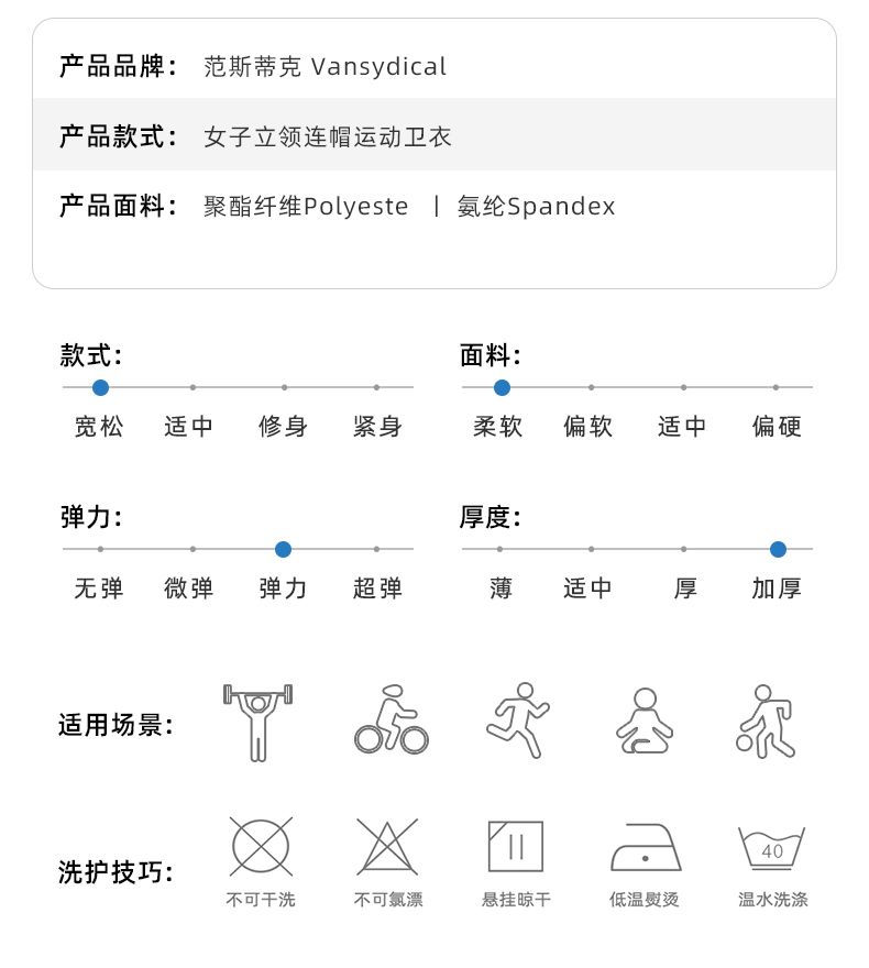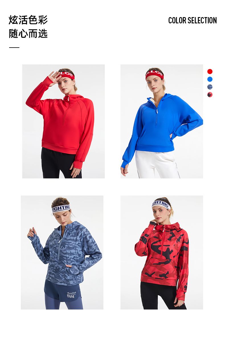 范斯蒂克加绒运动卫衣女专业跑步训练保暖半拉链连帽瑜伽健身卫衣
