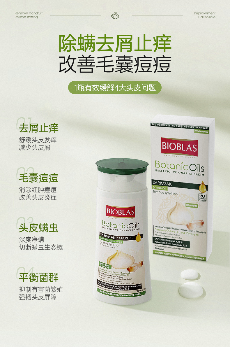【可儿姐专属】Bioblas大蒜毛囊洗发水除螨炎去屑止痒头皮清洁控油蓬松洗头膏露