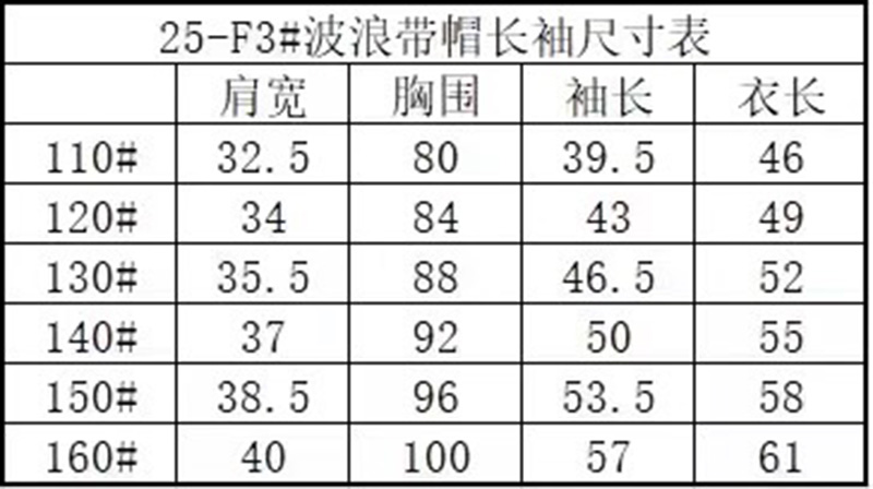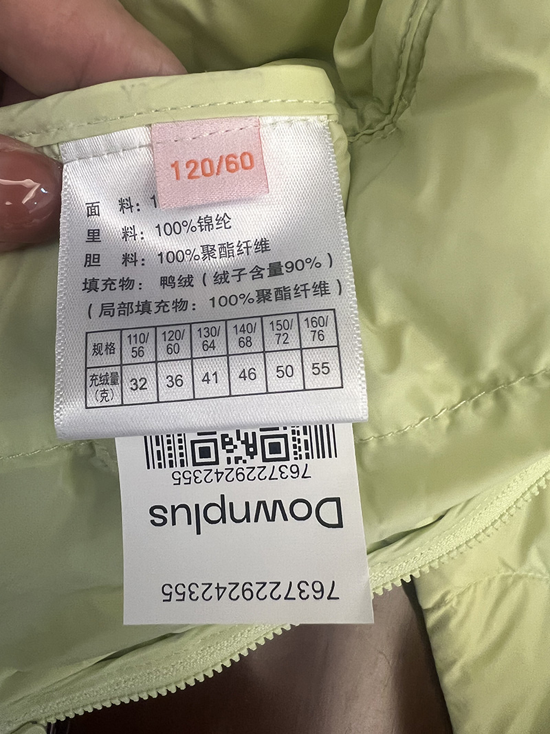 羽绒服充绒量:110/32g 120/36g 130/41g 140/46g 150/50g 160/55g