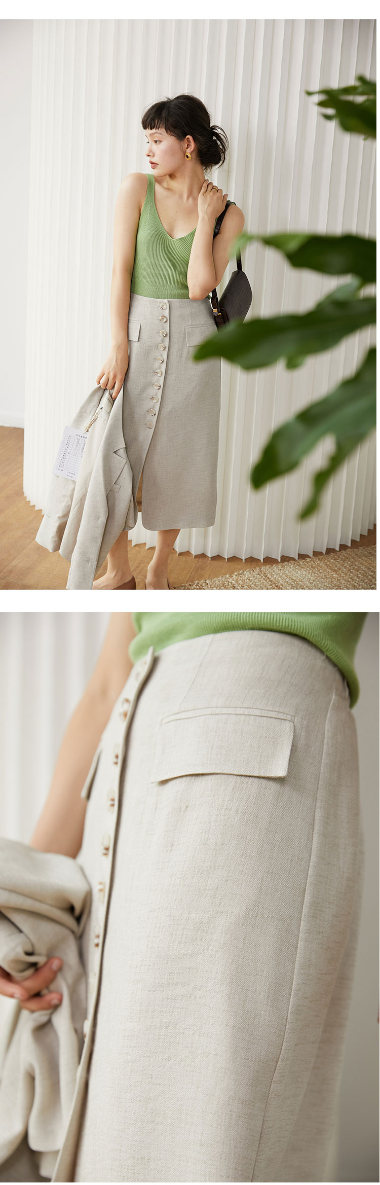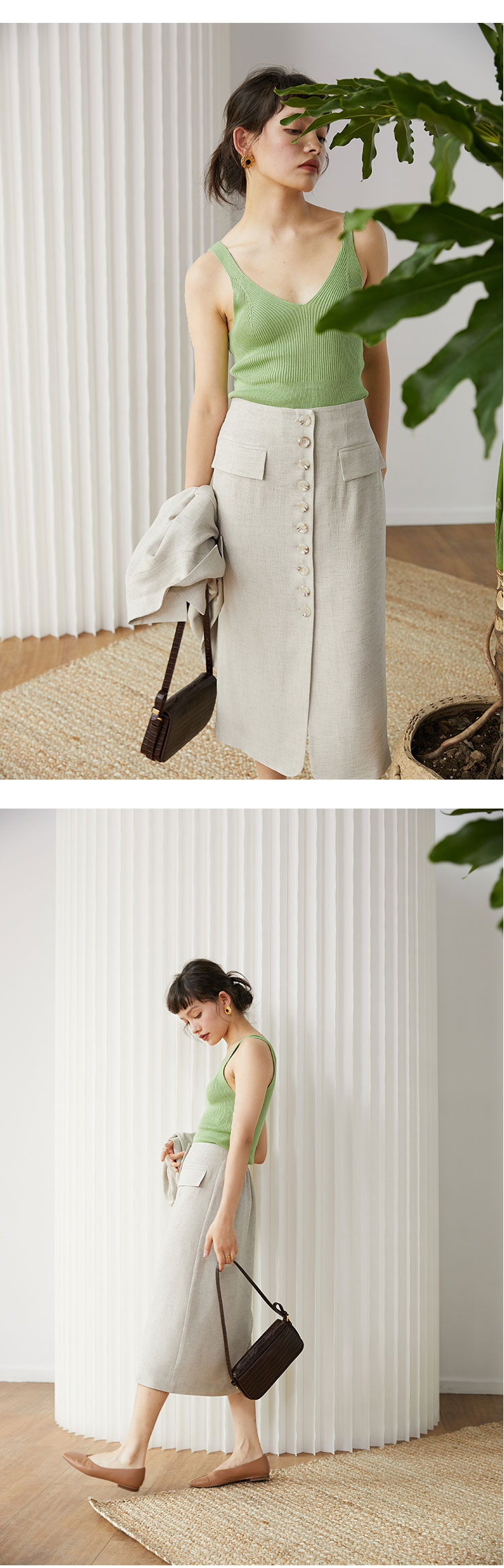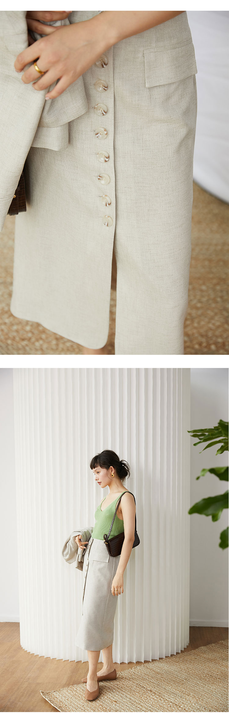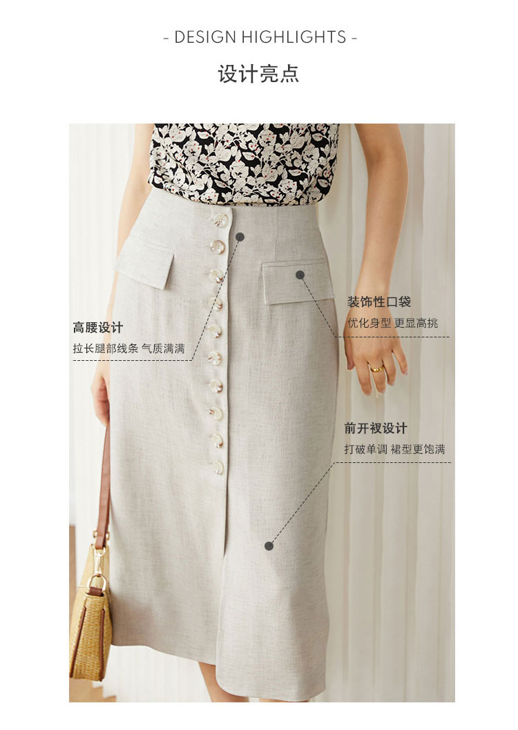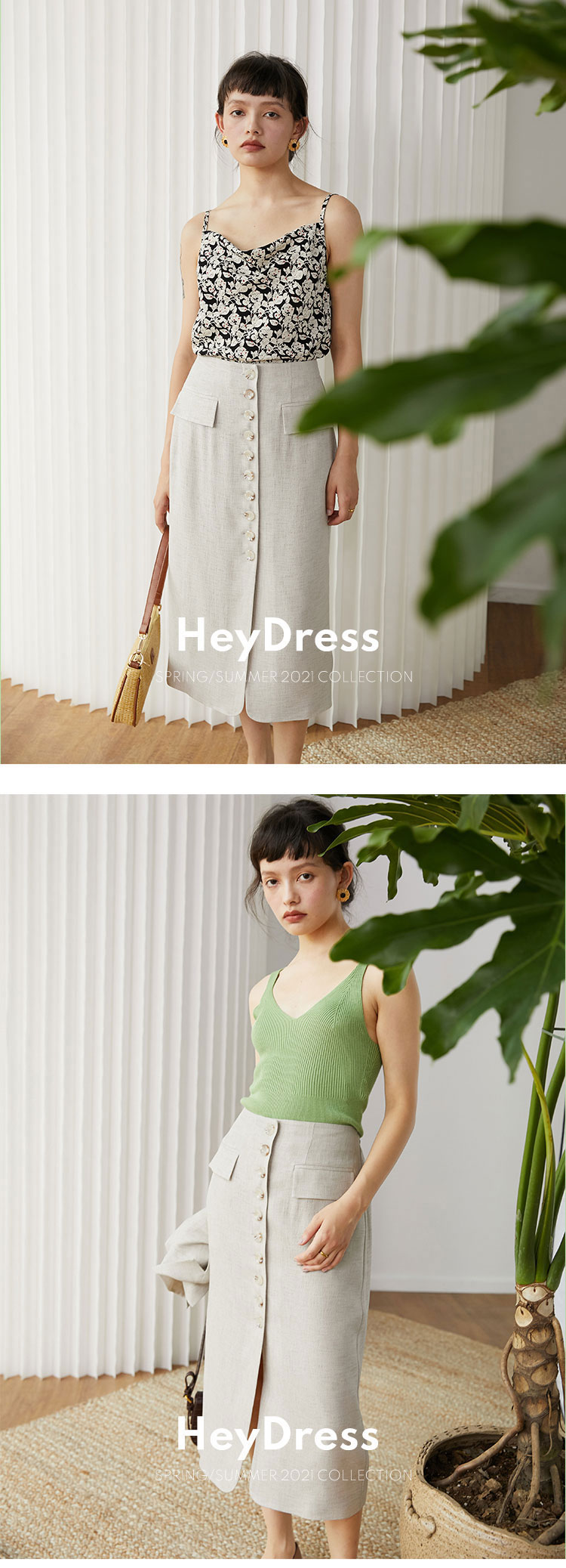 HeyDress醋酸法式半身裙女春薄款直筒开叉中长半裙高腰显瘦小众气质裙子