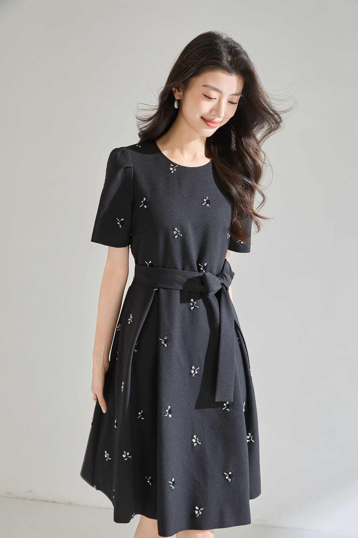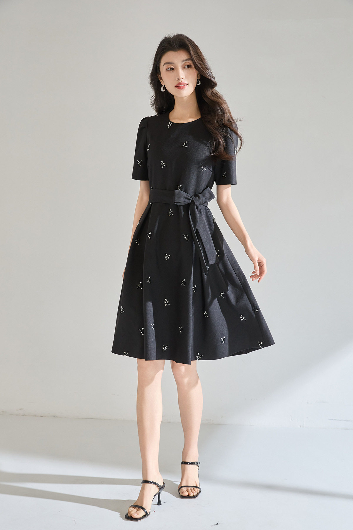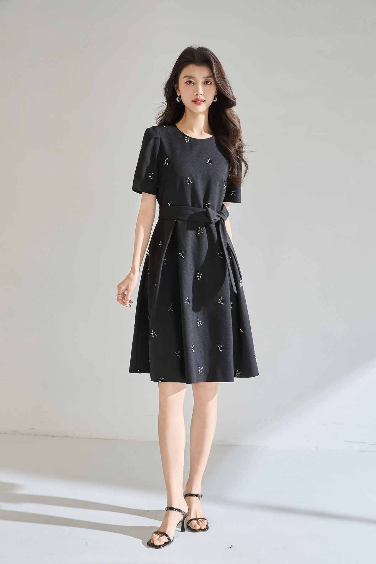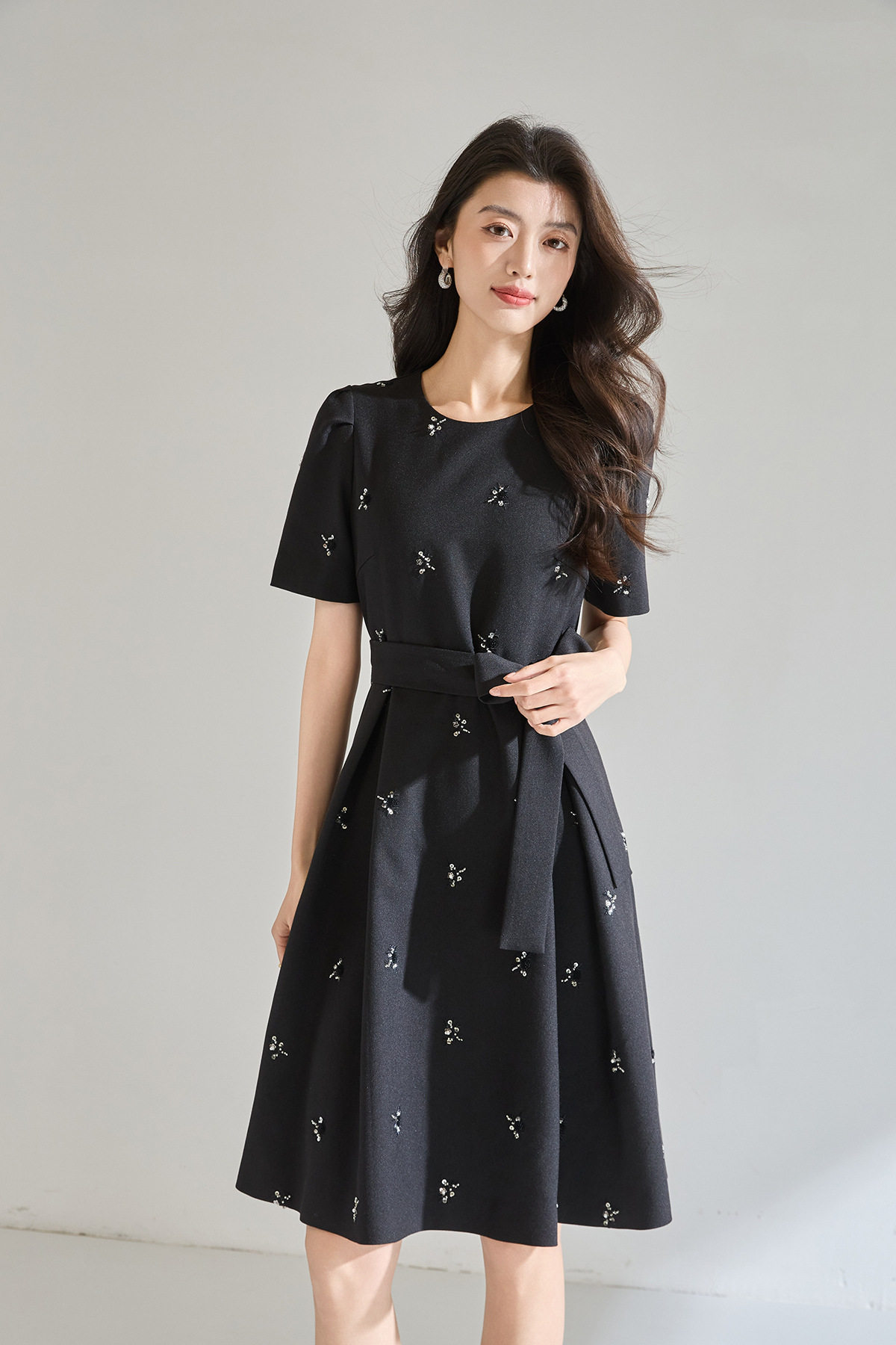 「高货sh」全新升级【铂金会员284/天猫379/差价95】(22600)洛诗琳气质重工钉珠连衣裙2026春夏新款精致显瘦系带大摆伞裙