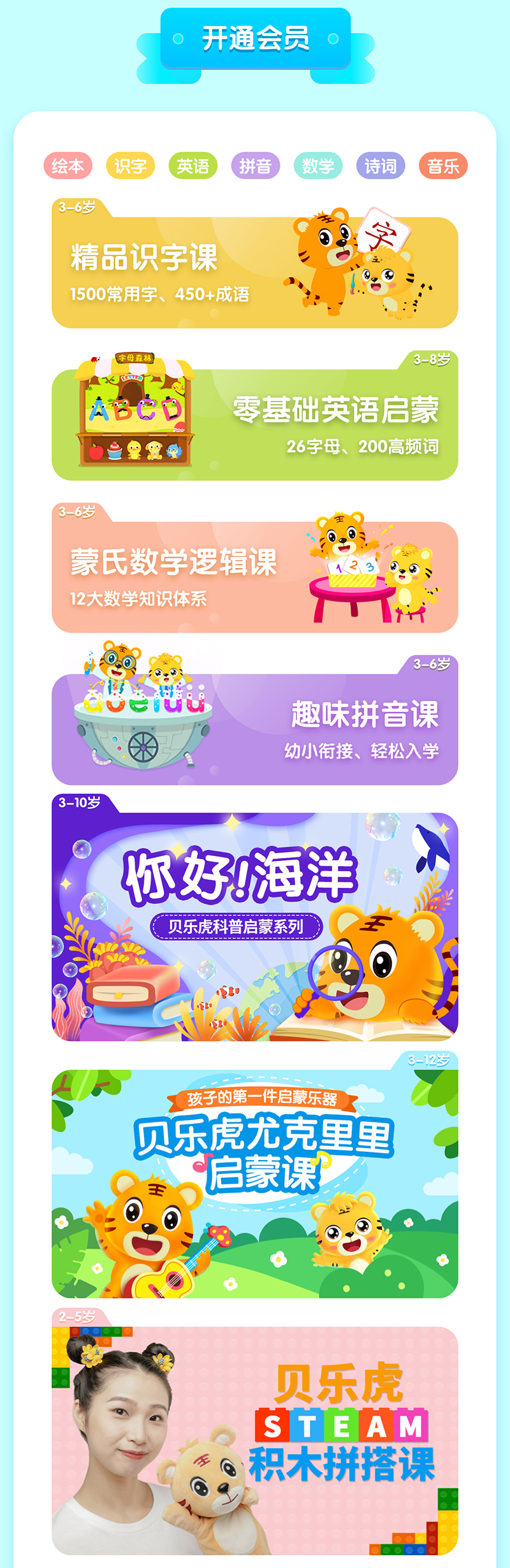 2、月卡权益自动开通,购买成功后,使用留言的贝乐虎账号-手机号登录【贝乐虎启蒙】APP即可享受会员权益