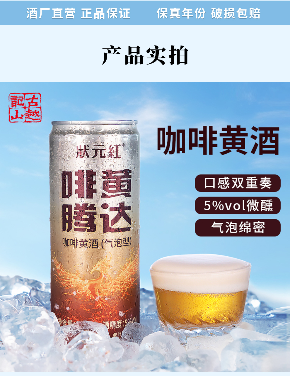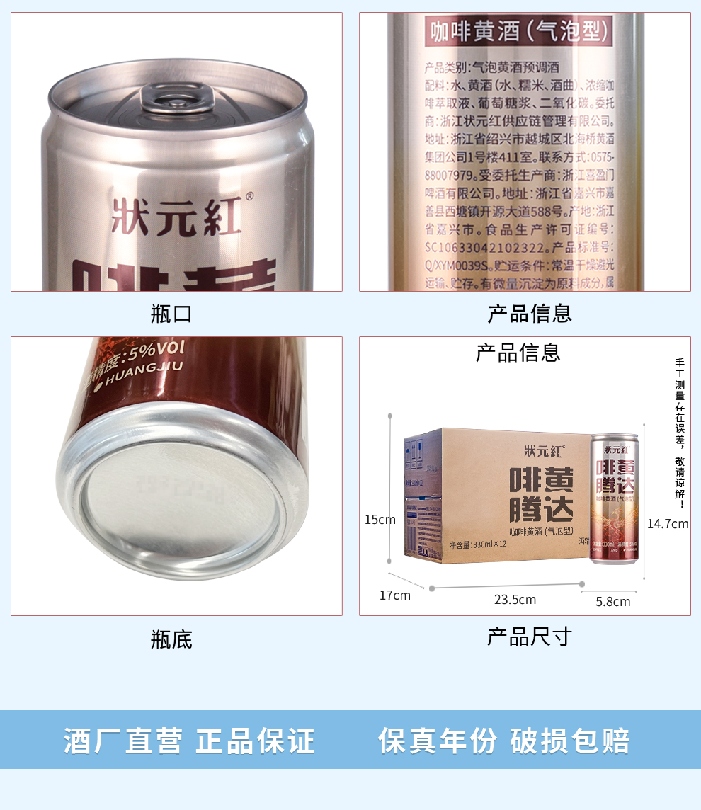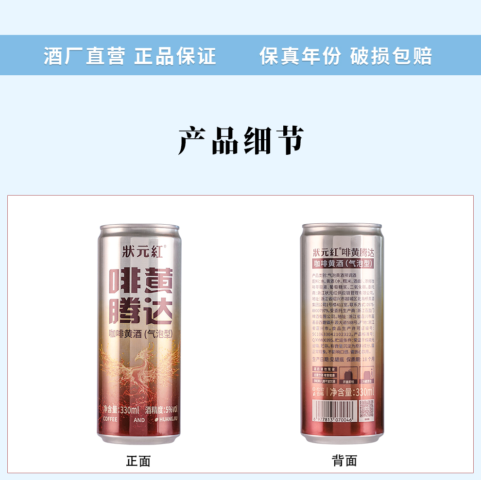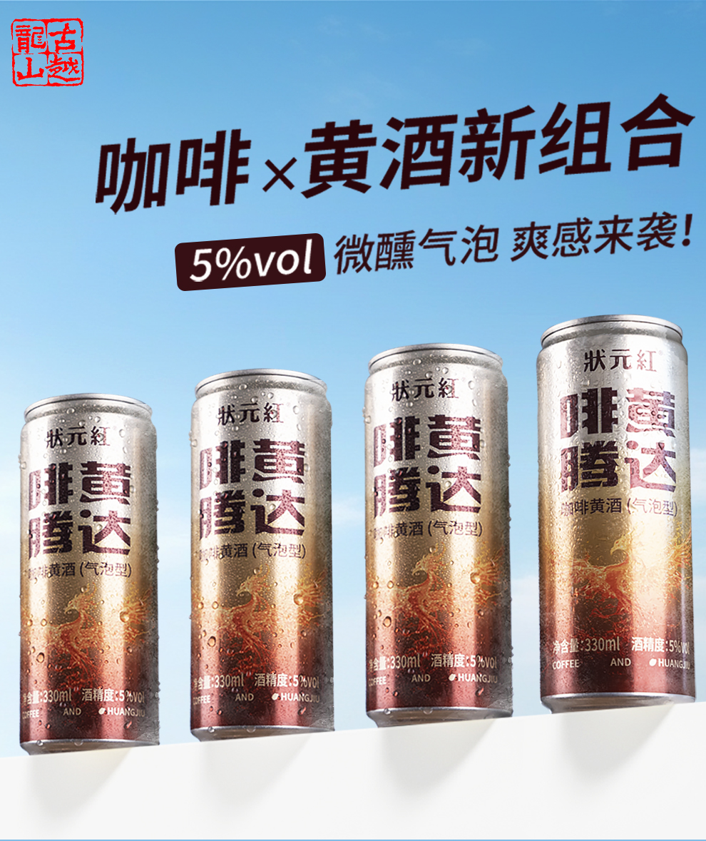 热卖中!!【古越龙山 状元红】啡黄腾达咖啡黄酒(气泡型) 5度绍兴黄酒微醺风味 330ml/瓶