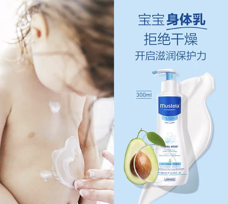 妙思乐牛油果润肤乳300ml👍这款保湿面霜新生儿即可用~安全无刺激✅,质地细致轻薄,很容易推开,含甜杏仁油、霍霍巴油等天然植物🌿提取精华,又融入了牛油果🥑天然植物油精华保湿成分💦,有效保护宝宝皮肤水脂膜,提供皮肤表层的长效保湿效果,保护我们宝宝娇嫩小脸蛋👶