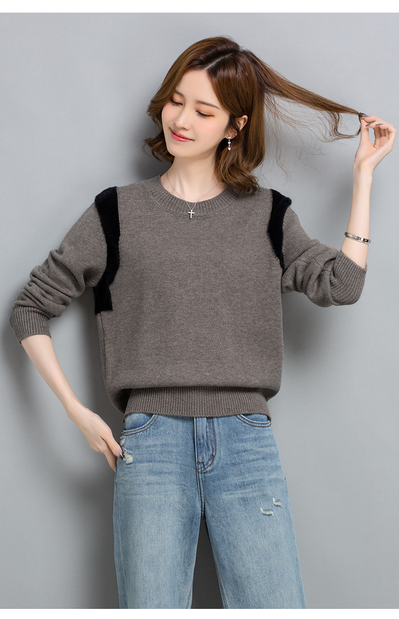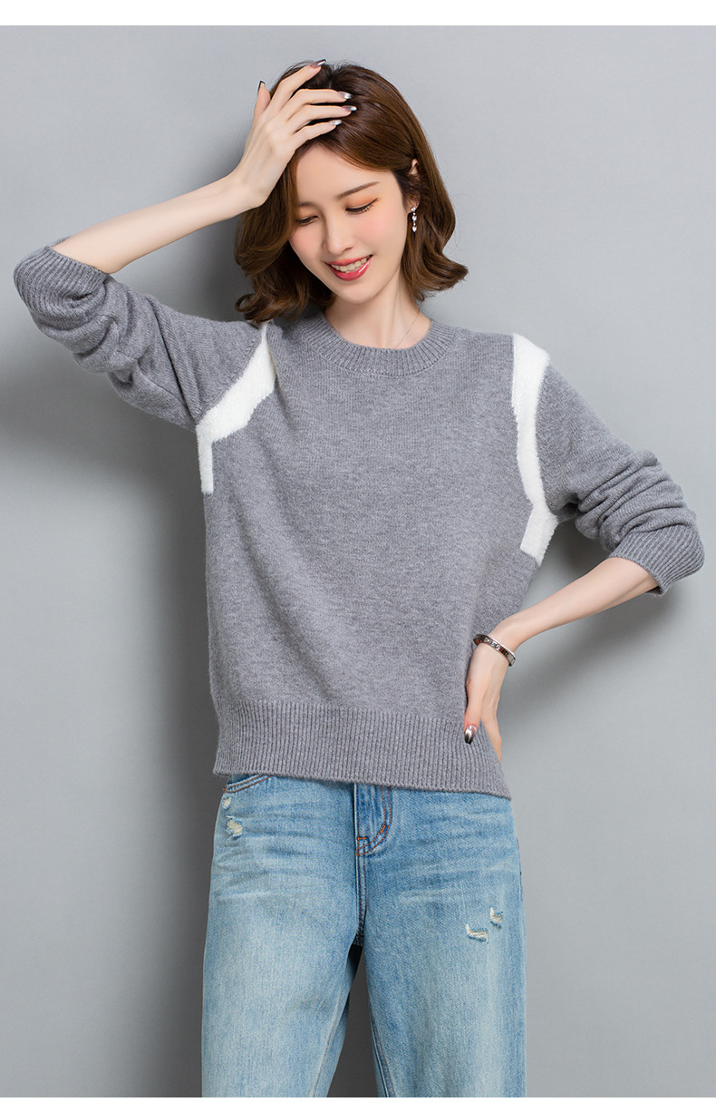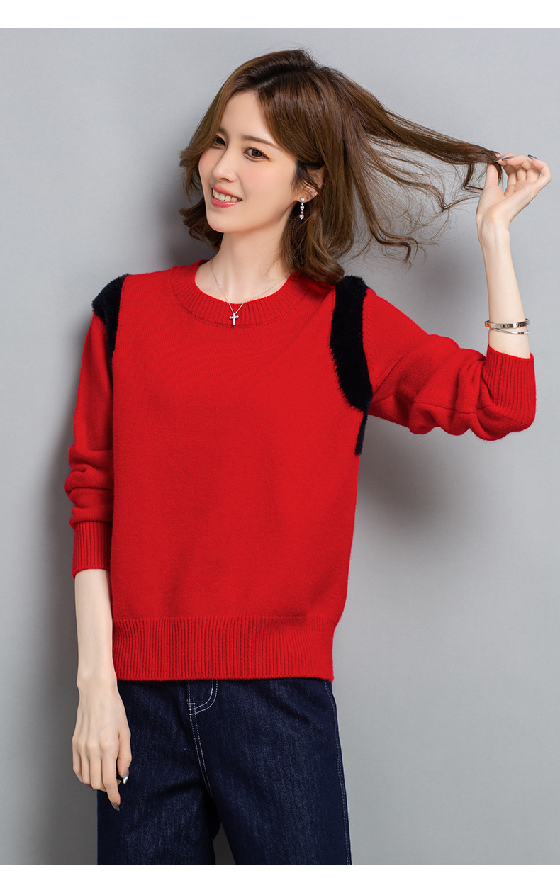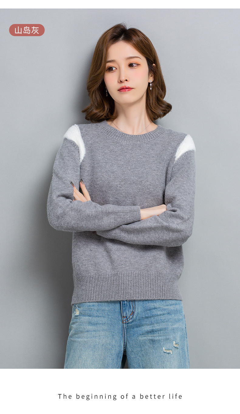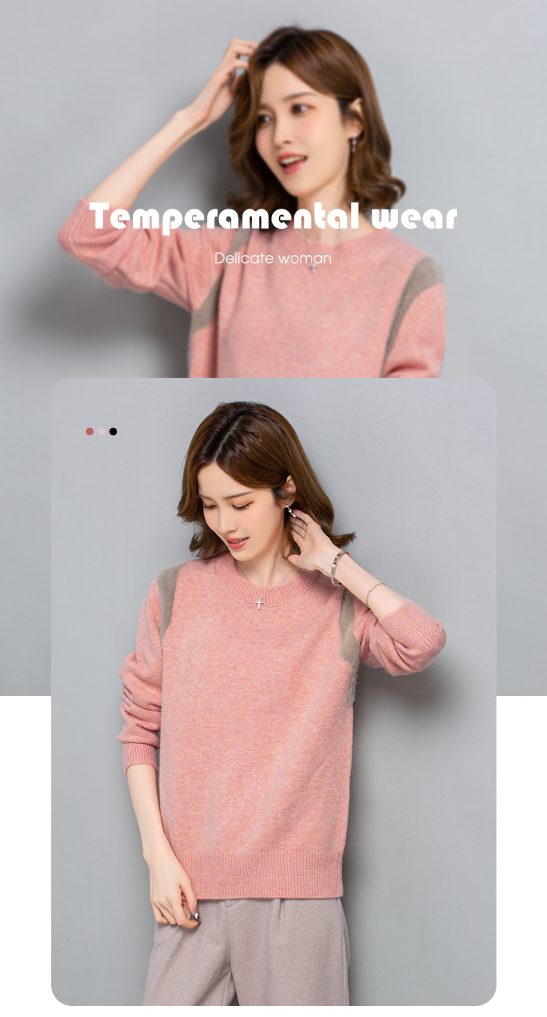 秋冬加厚时尚外穿,微胖正肩毛衣女宽松慵懒风大码圆领打底衫女短款CC-23182