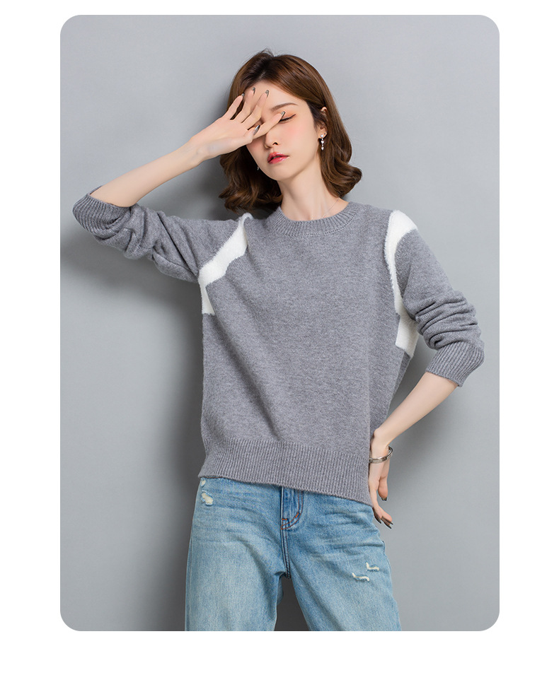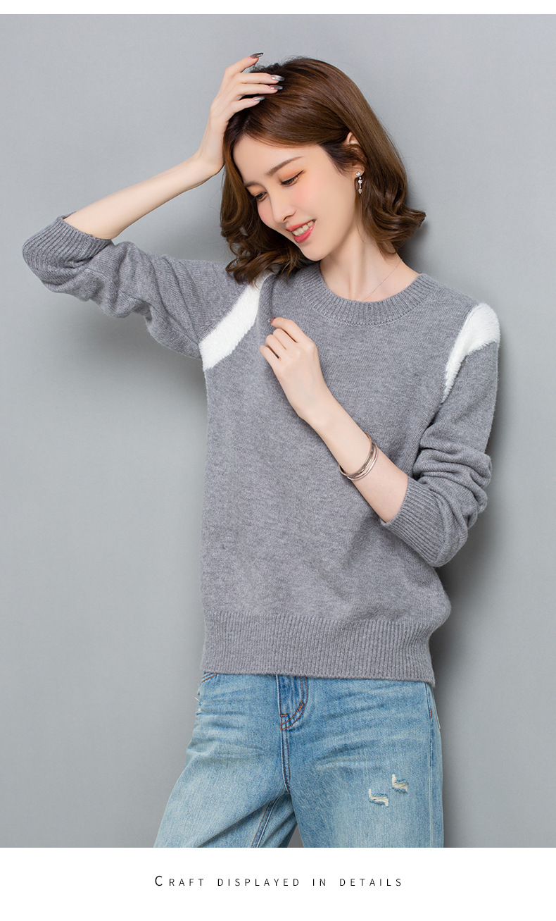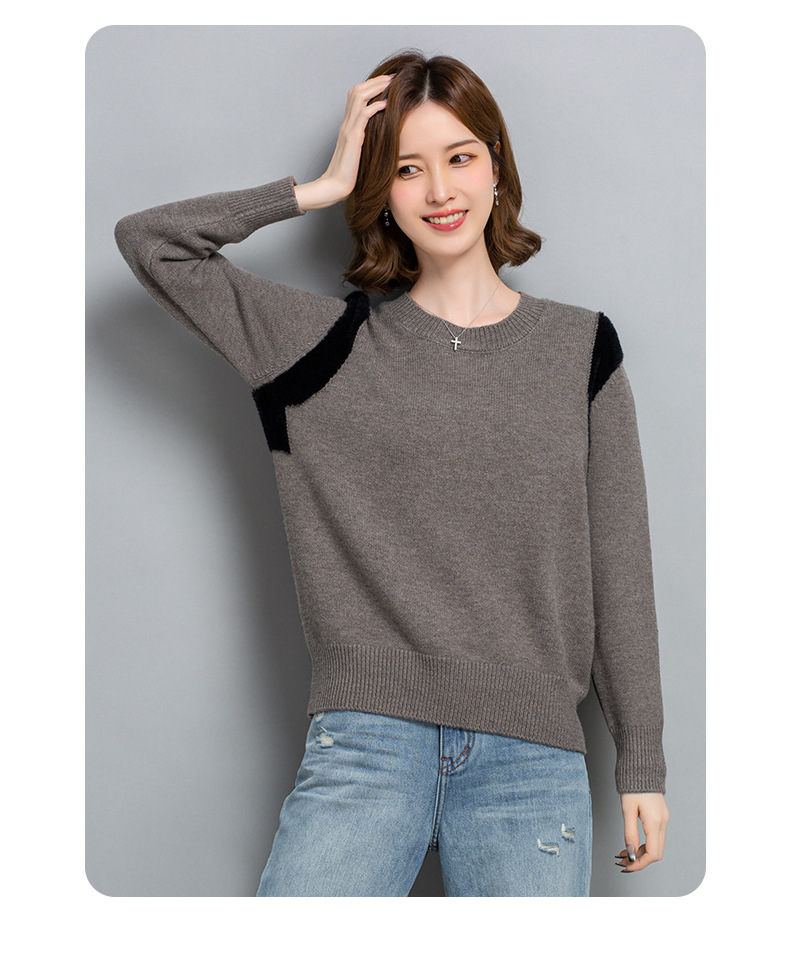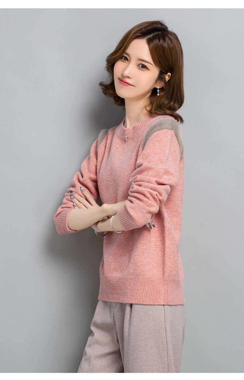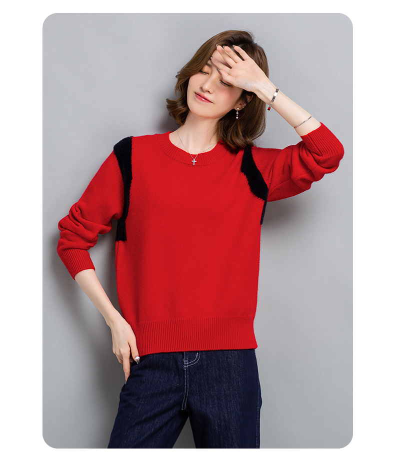 秋冬加厚时尚外穿,微胖正肩毛衣女宽松慵懒风大码圆领打底衫女短款CC-23182