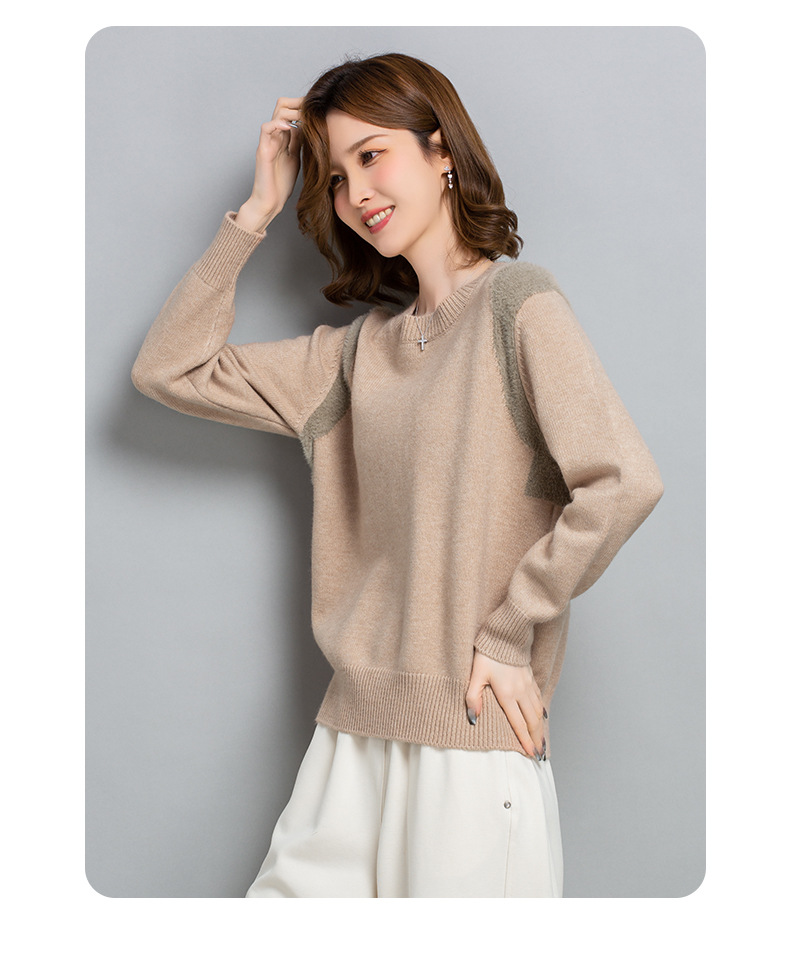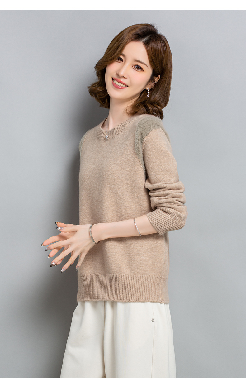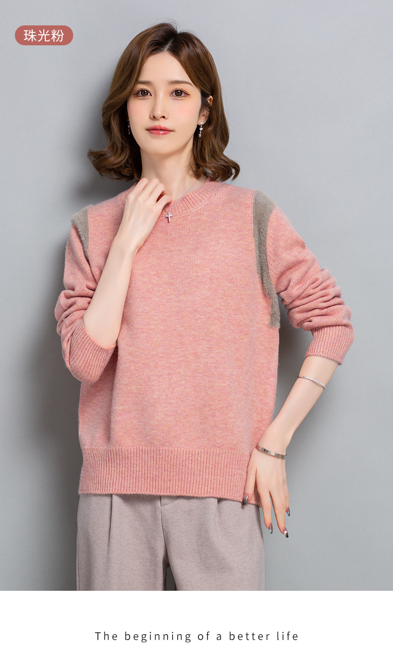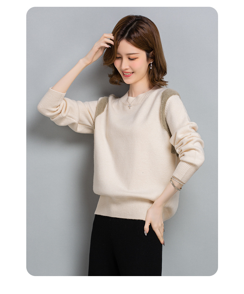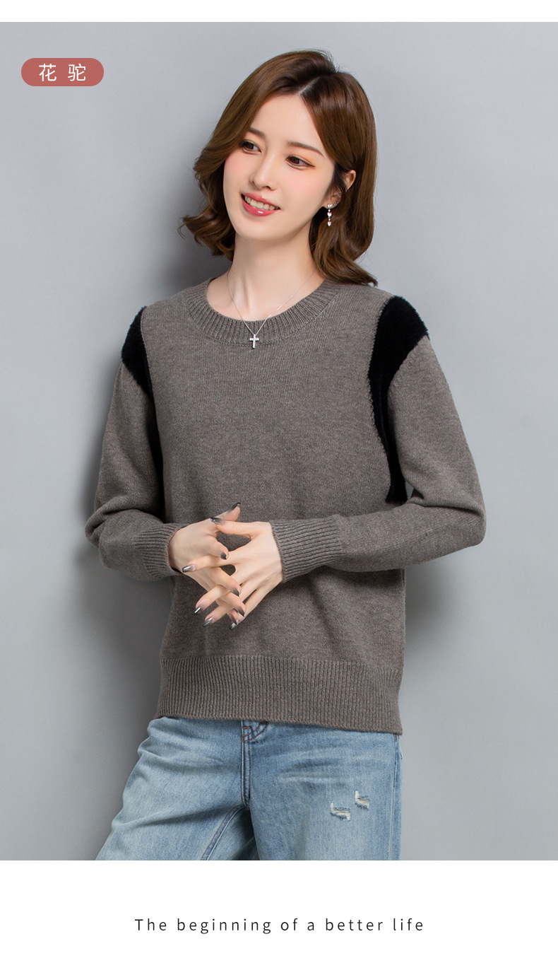 秋冬加厚时尚外穿,微胖正肩毛衣女宽松慵懒风大码圆领打底衫女短款CC-23182