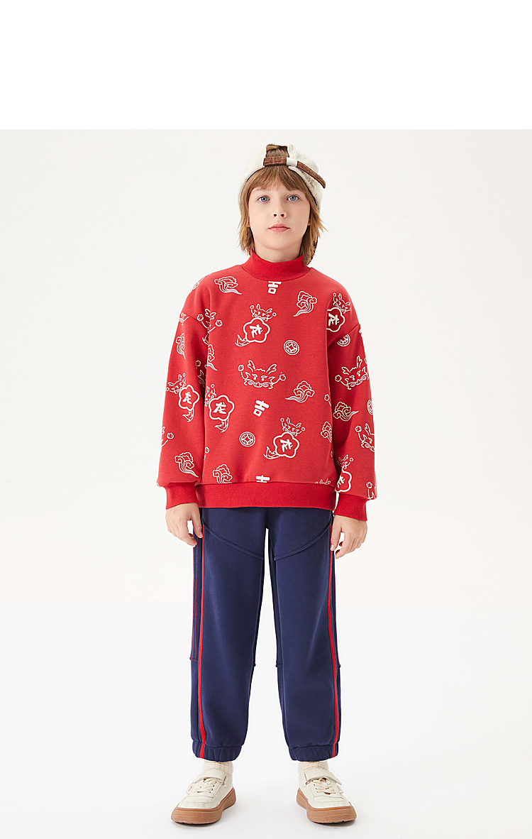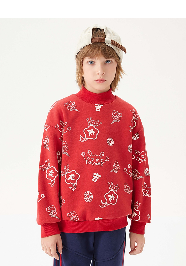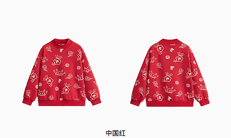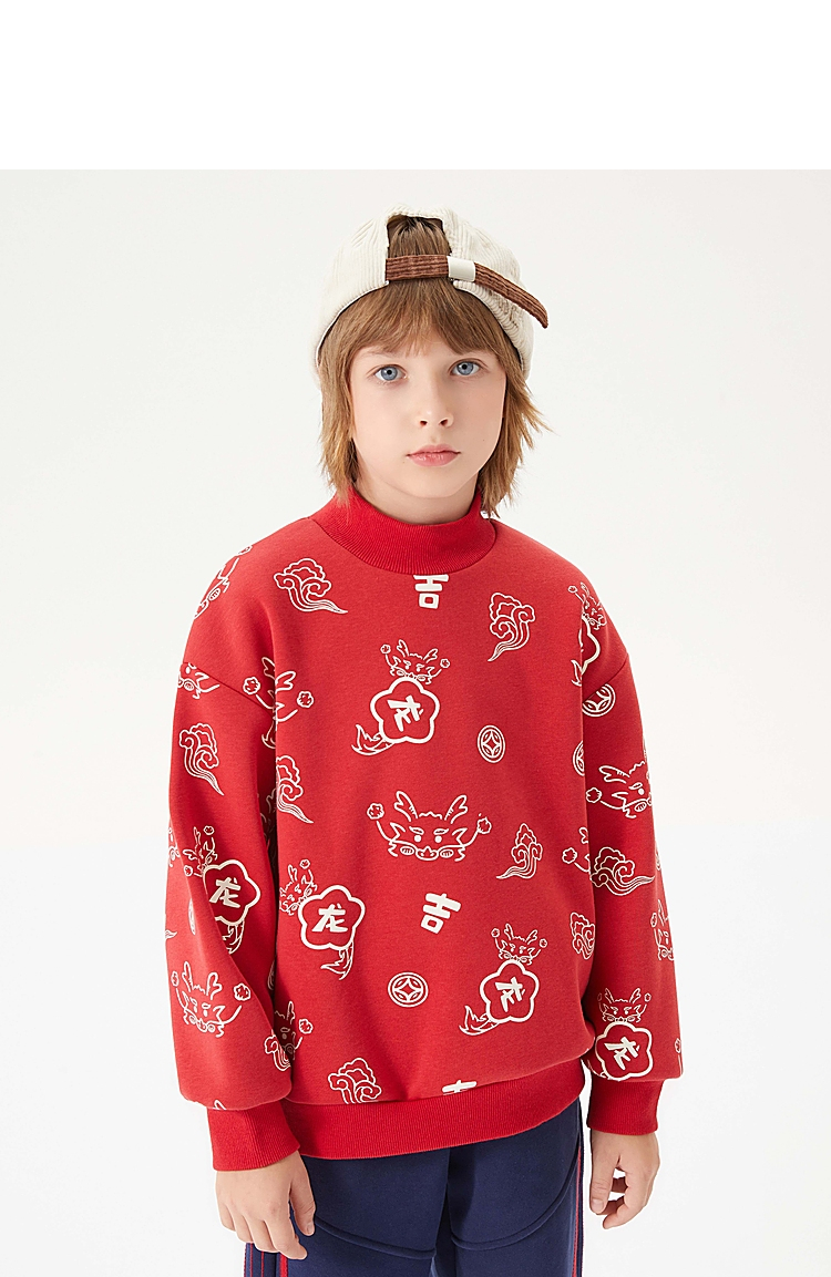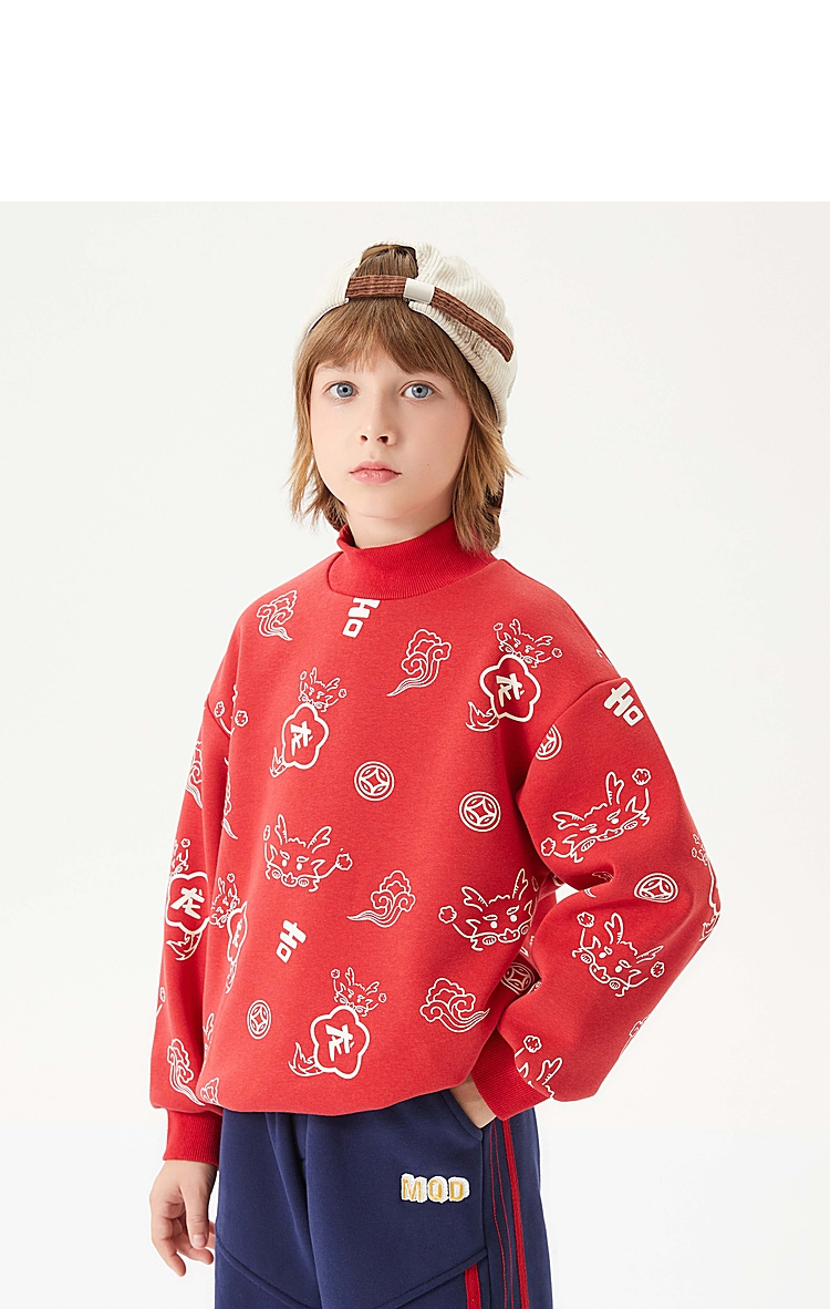 【MQD】童装男大童冬中式国风加绒龙年喜庆圆领卫衣