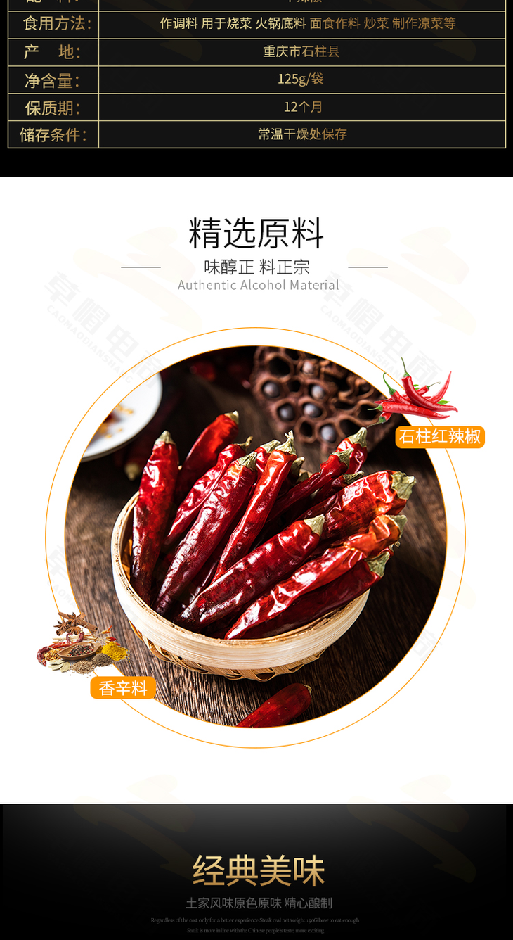 石柱谭妹子 干红辣椒袋装微辣特香农家重庆特产200*2/袋 包邮